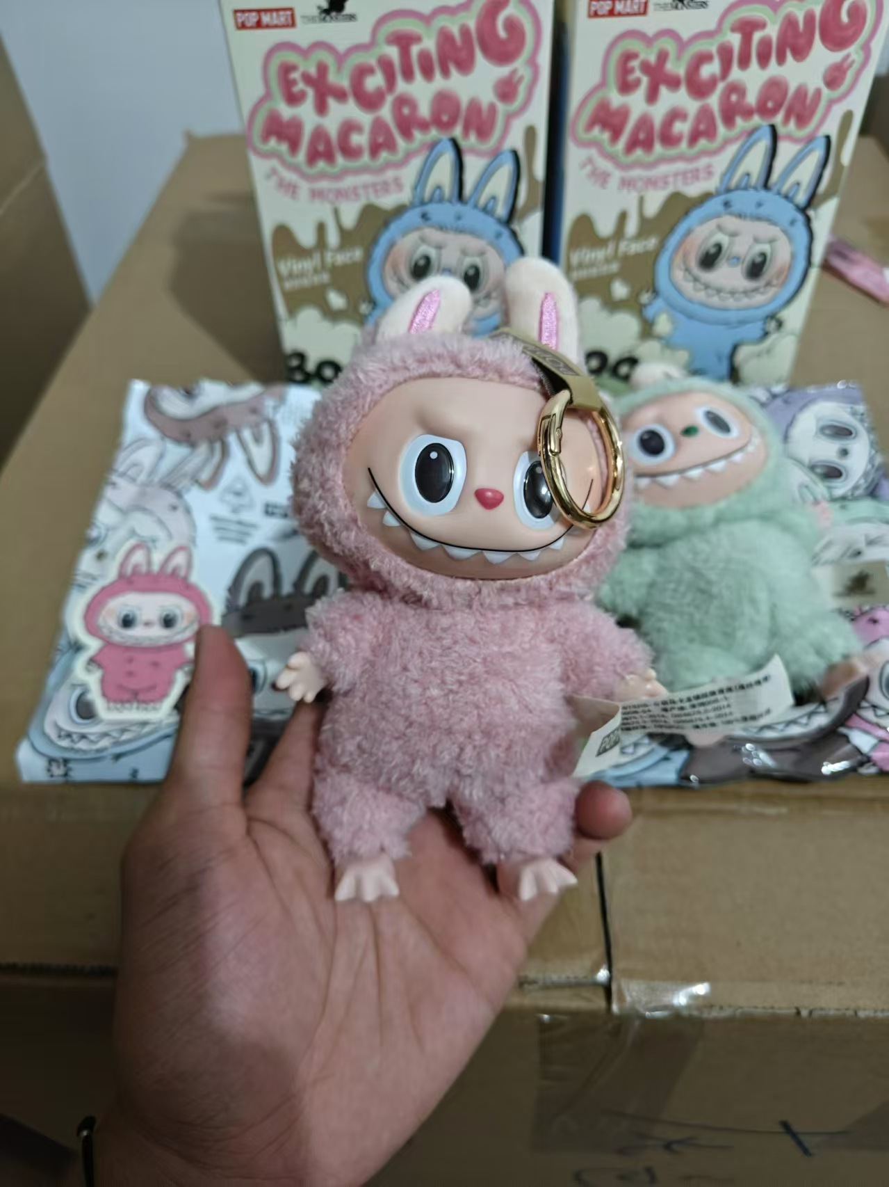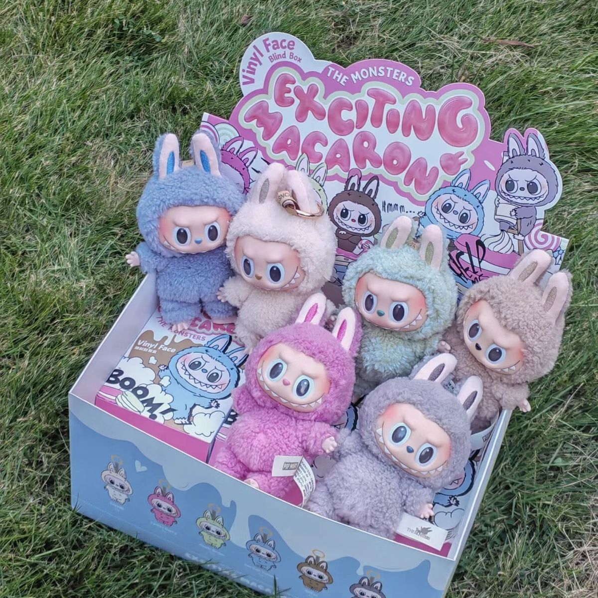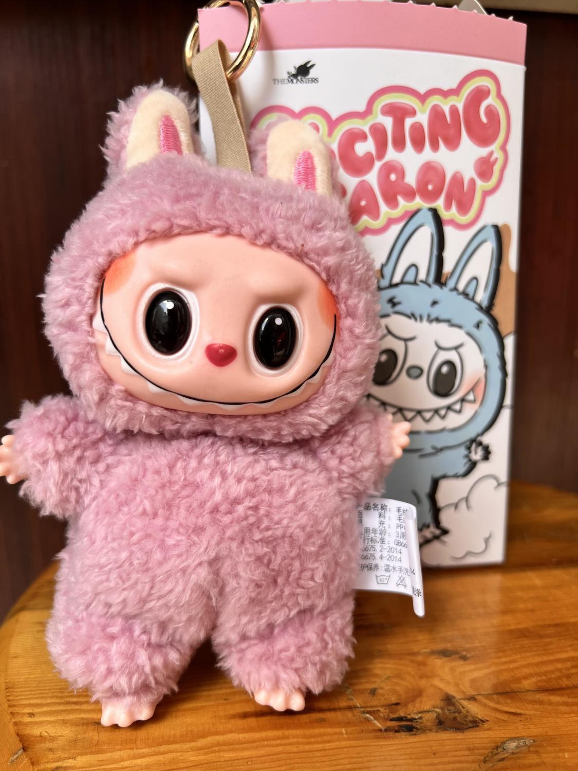 拉布布玛特心动马卡龙搪胶脸盲盒毛绒公仔玩具潮玩毛绒钥匙扣批发