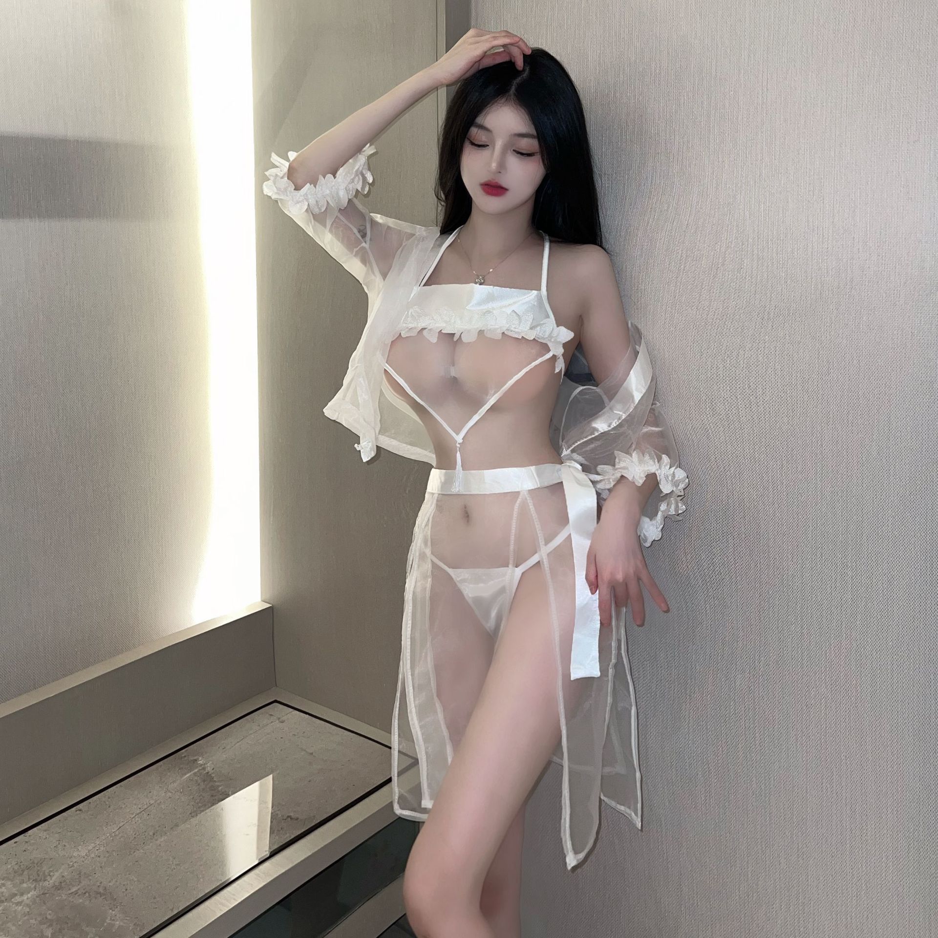 情趣内衣性感柔纱汉风浴袍外罩衫肚兜小倩三件套制服套装一件大发