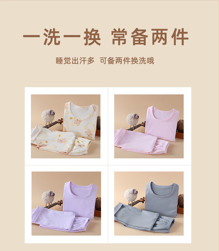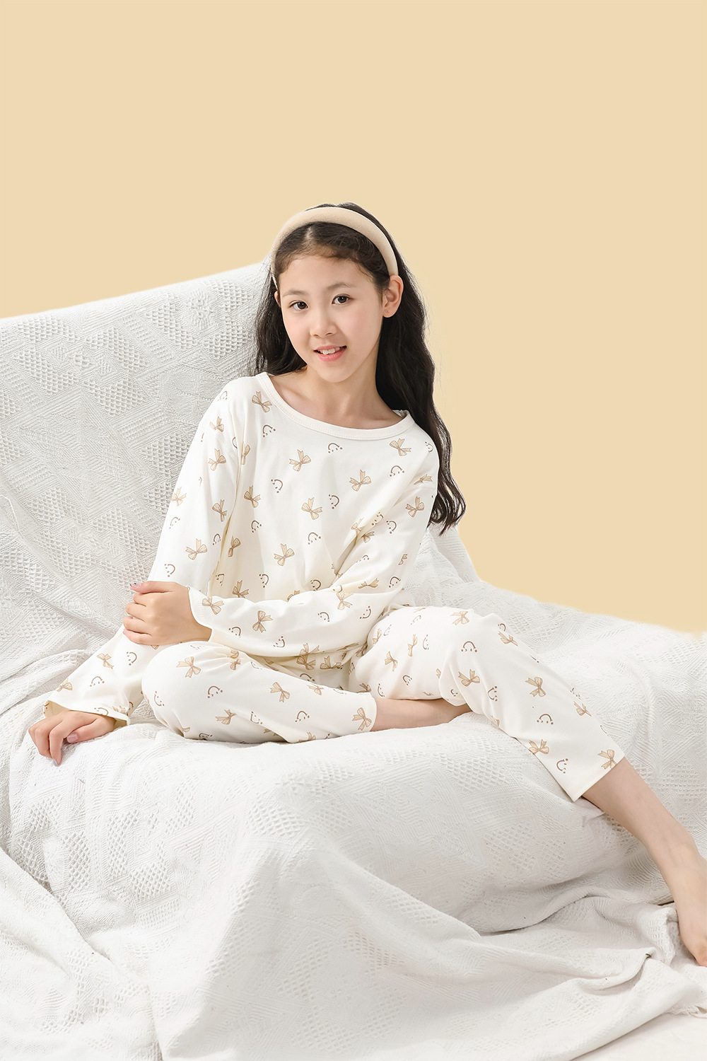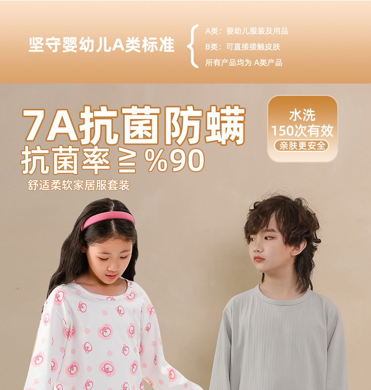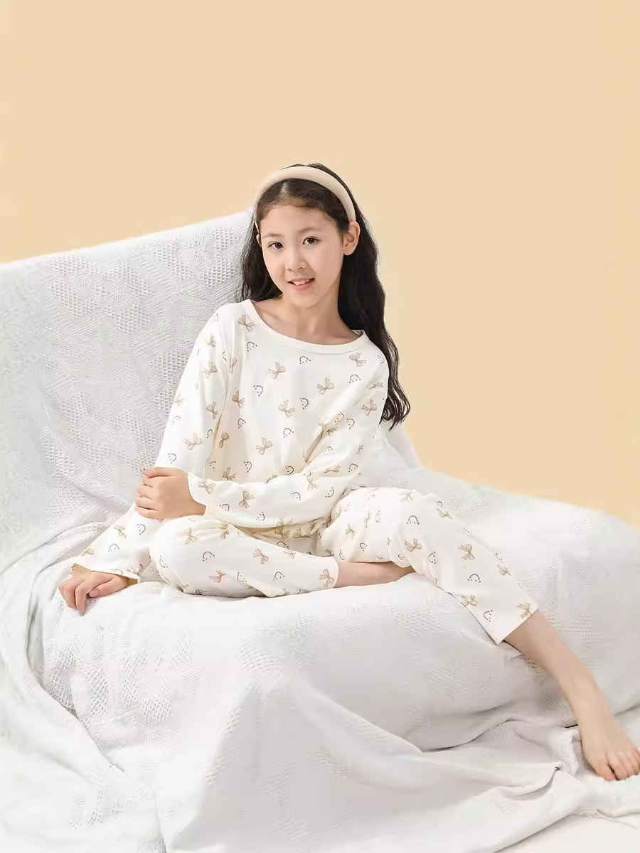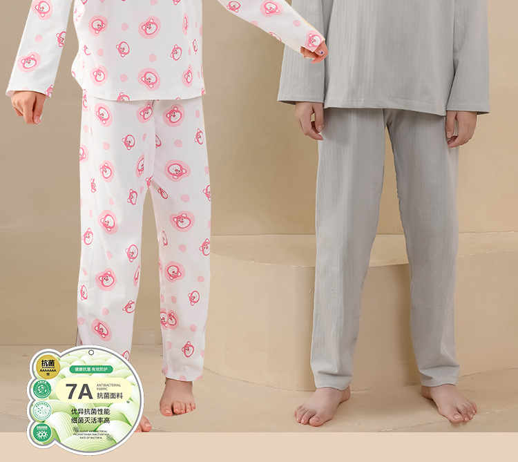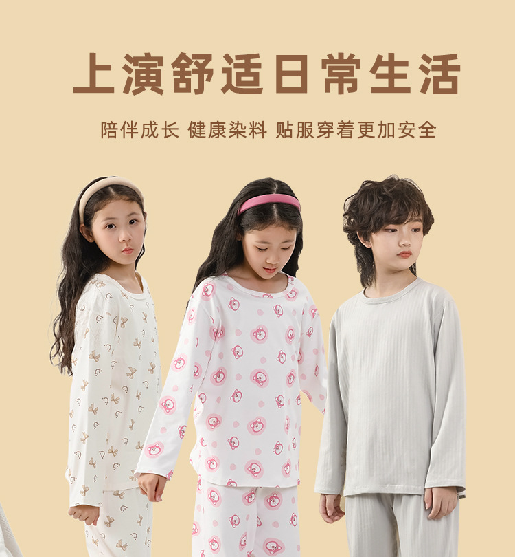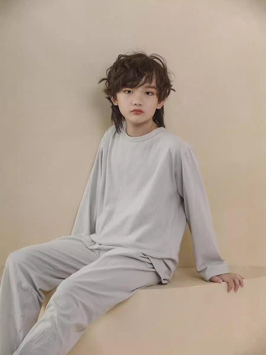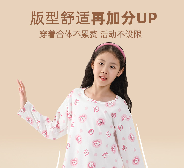新款休闲宽松圆领长袖睡衣套装春秋中大童睡衣家居服男童女童睡衣