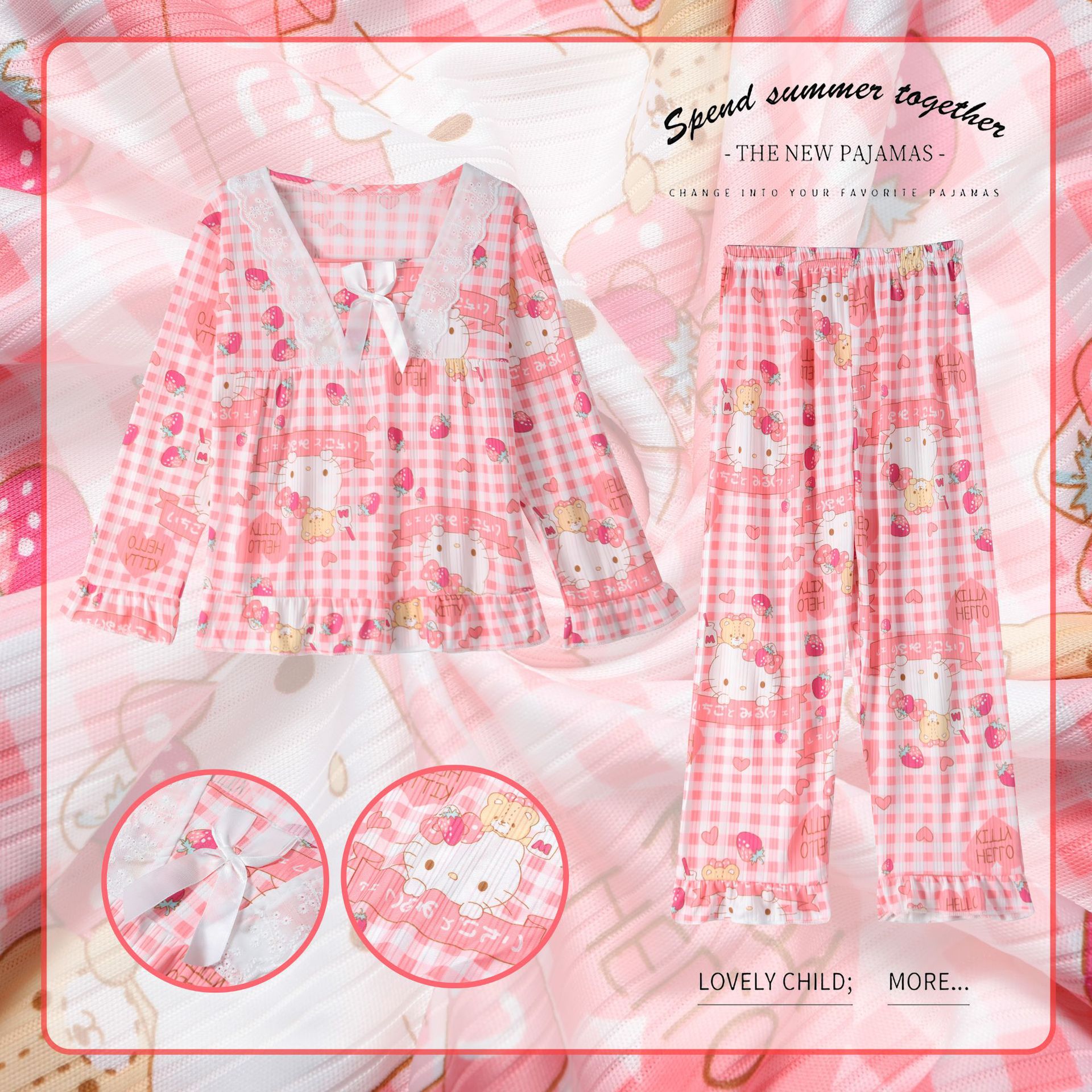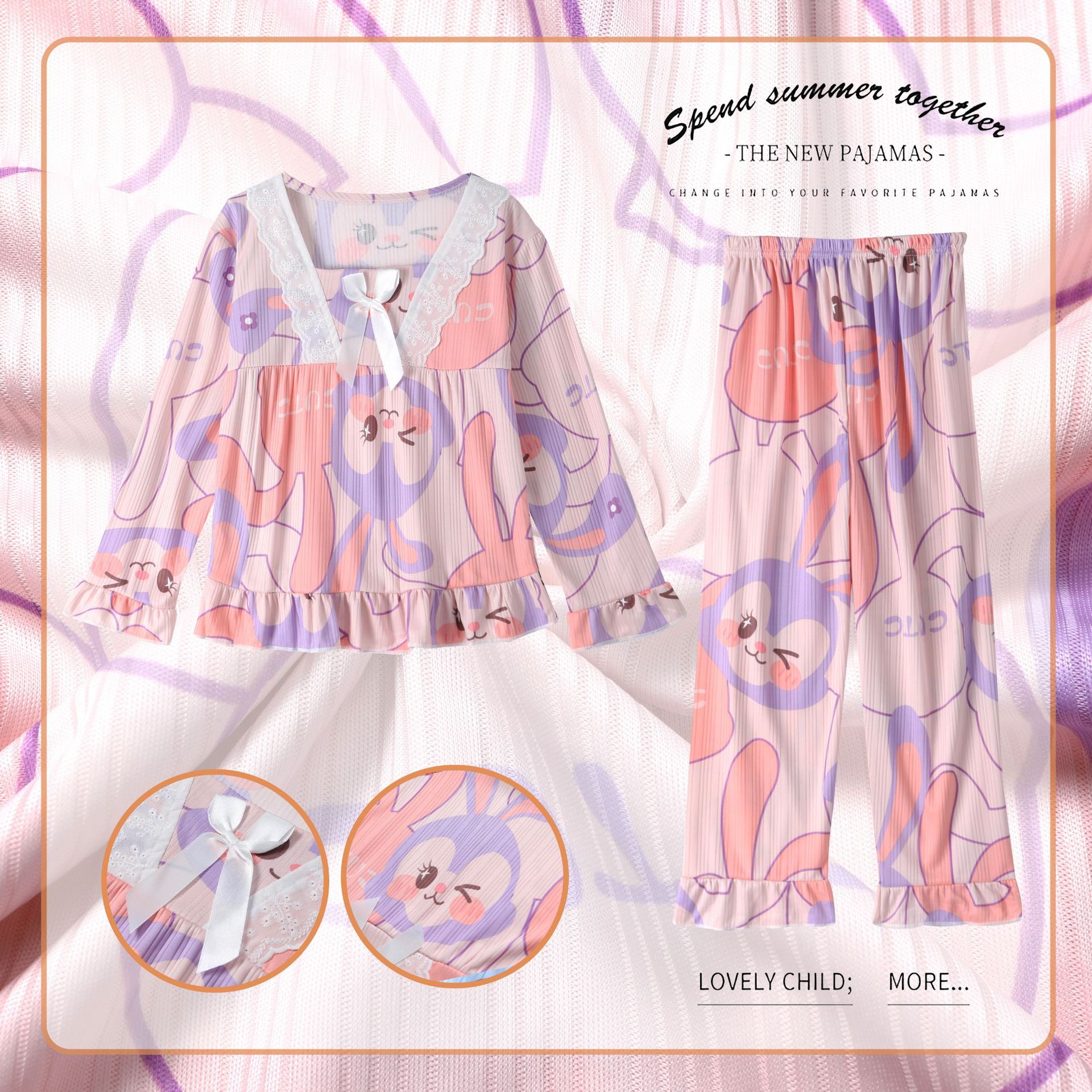 春秋儿童家居服中大童女孩可爱宝宝家居服睡衣套装小孩休闲空调服