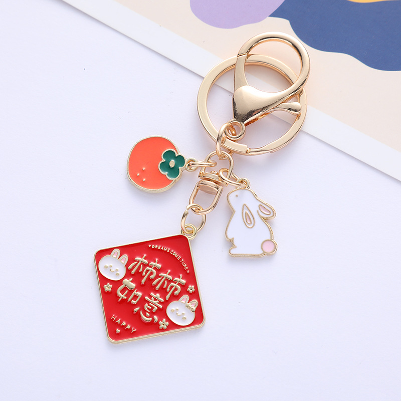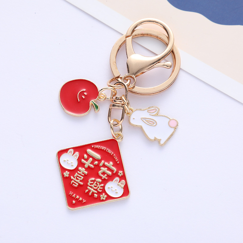金属钥匙扣创意平安喜乐可爱小兔子挂件本命年卡通包包挂饰小礼品