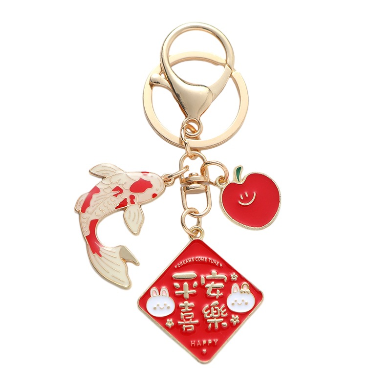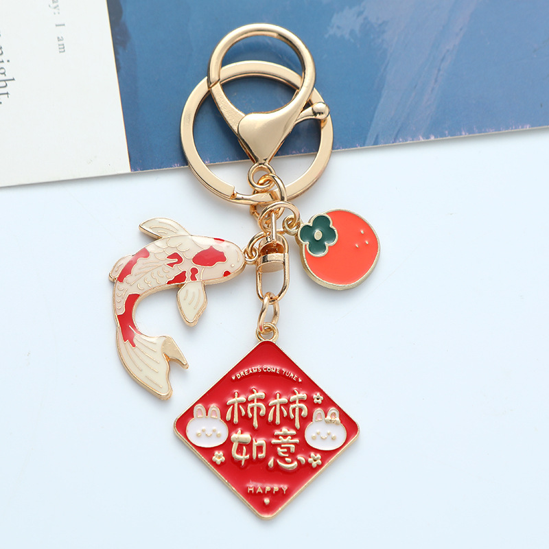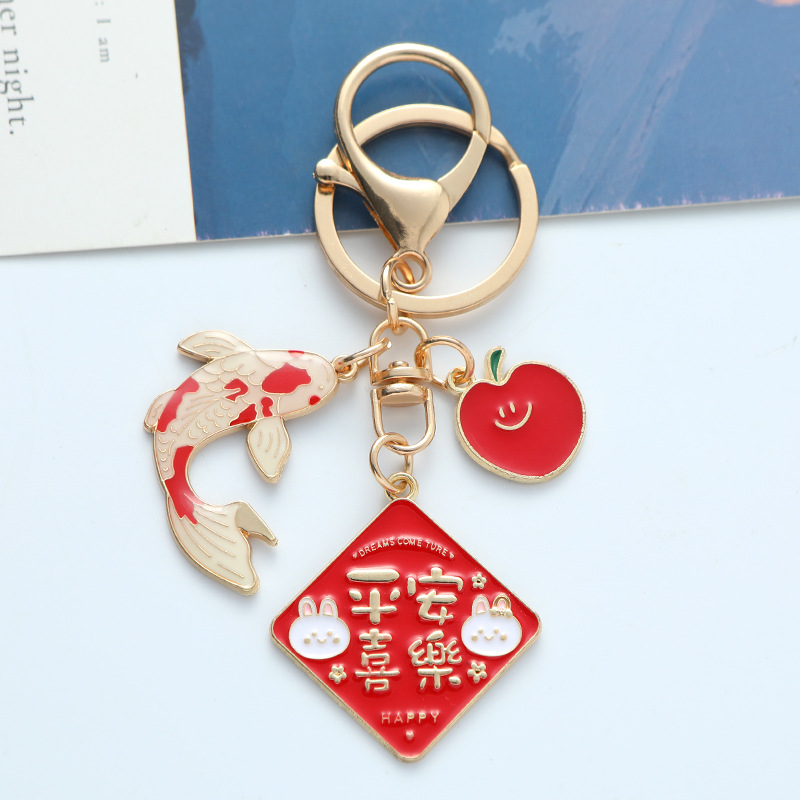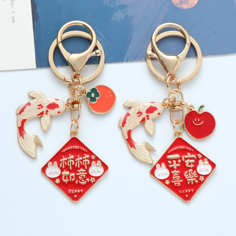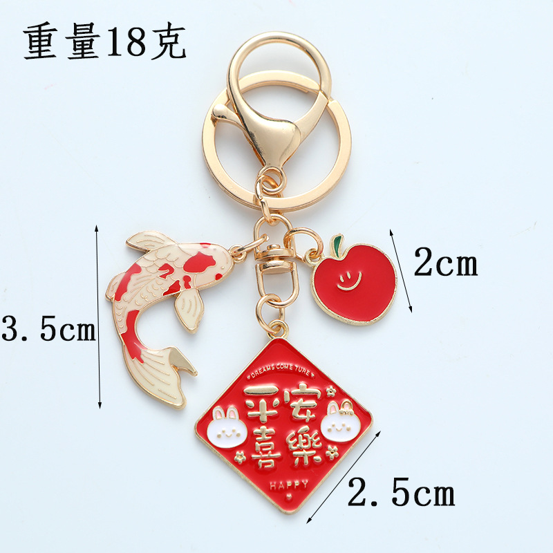 中国风祝福文字汽车钥匙扣挂件平安喜乐锦鲤水果合金挂饰包包装饰