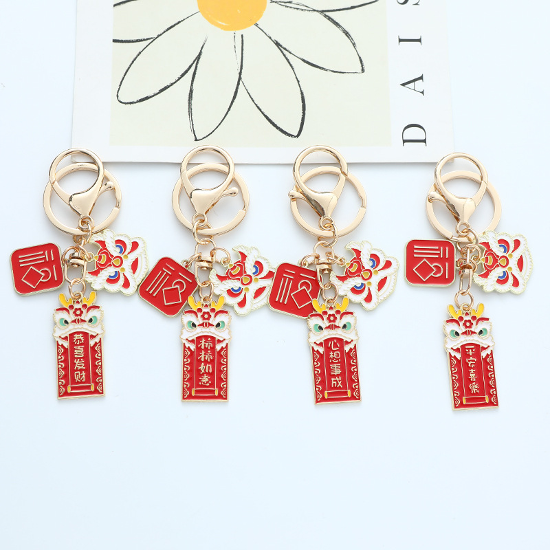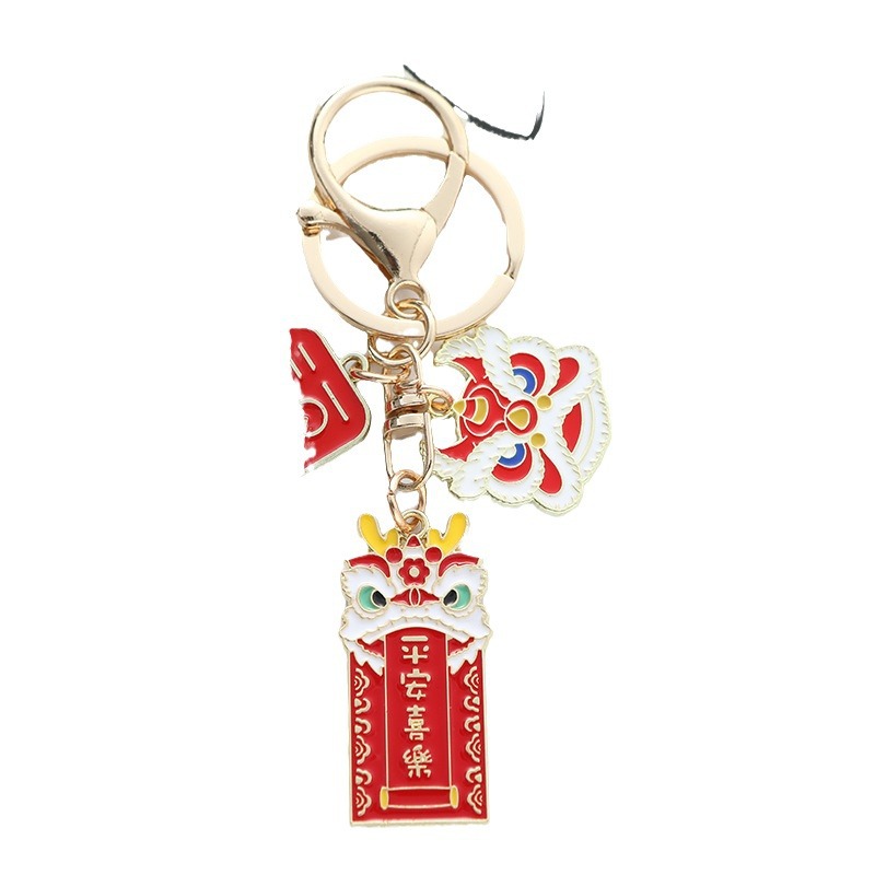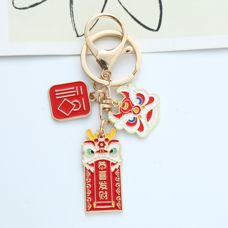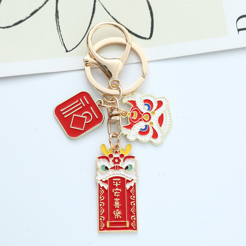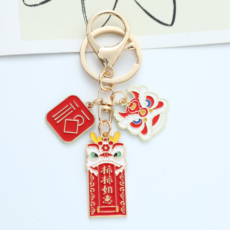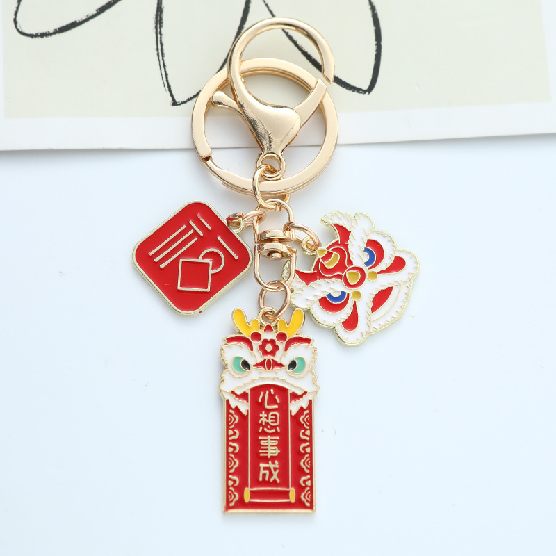 中国风龙年本命年生肖龙醒狮钥匙扣恭喜发财平安喜乐包包挂件礼物
