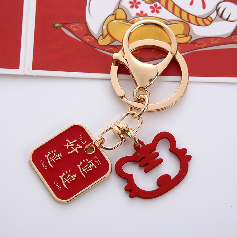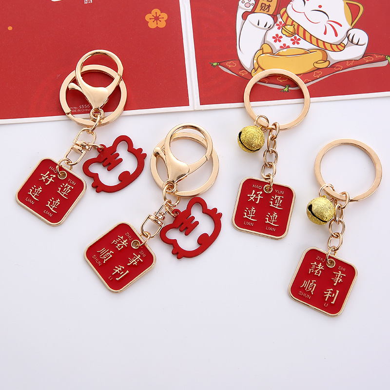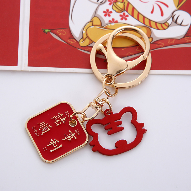 虎年诸事顺利祝福语钥匙扣可爱国风好运连连创意礼物挂件新年礼品