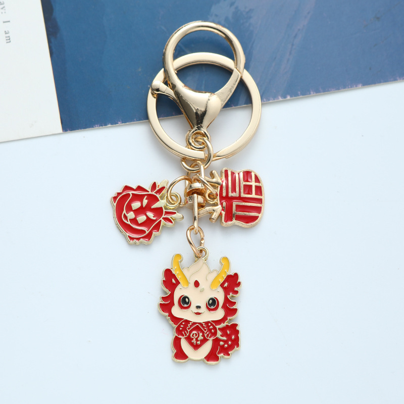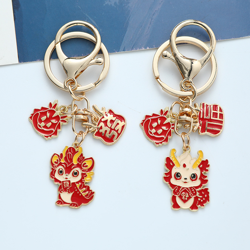 龙年金属钥匙扣挂件创意公仔新年汽车钥匙链可爱情侣包包挂饰批发