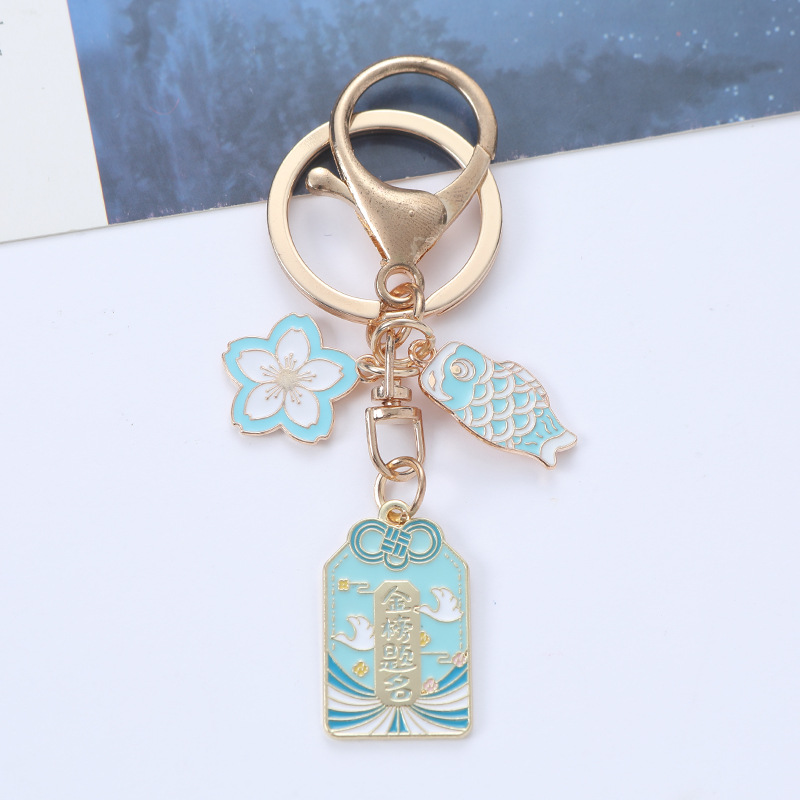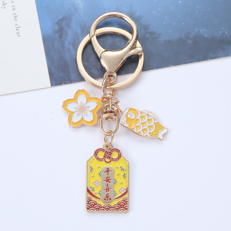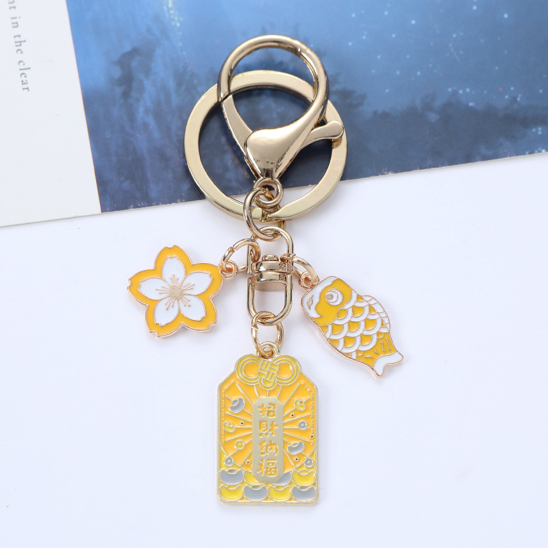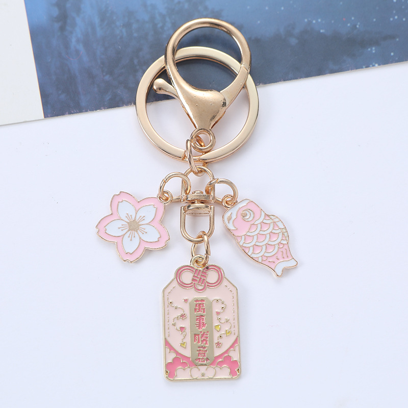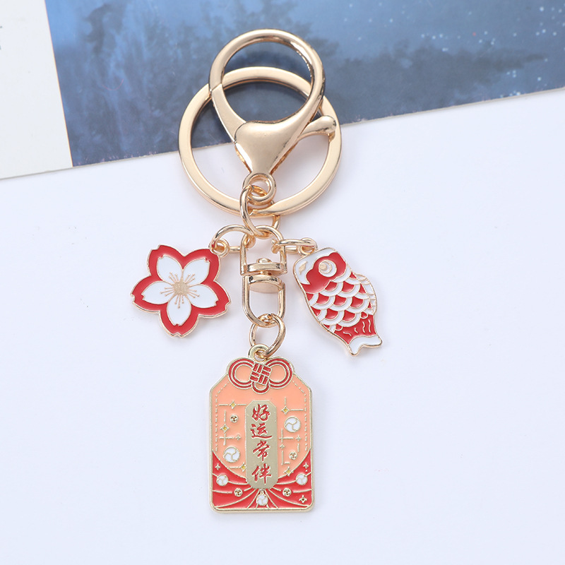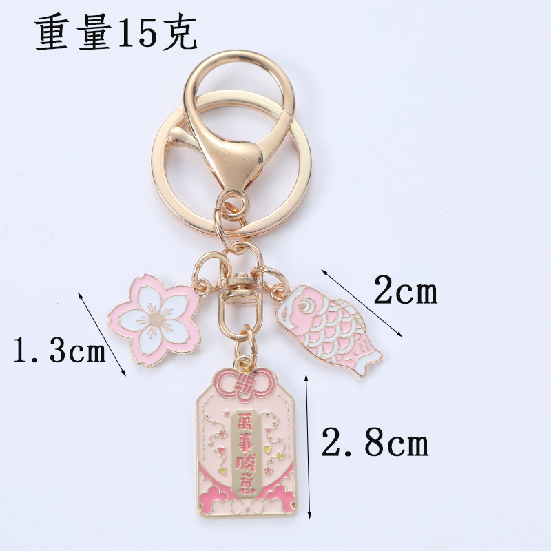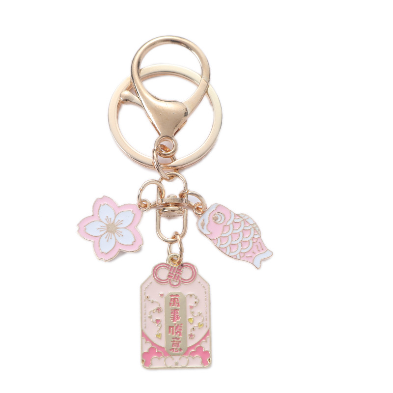 新款文字祝福金属钥匙扣挂件创意樱花锦鲤汽车钥匙链包包挂饰礼品