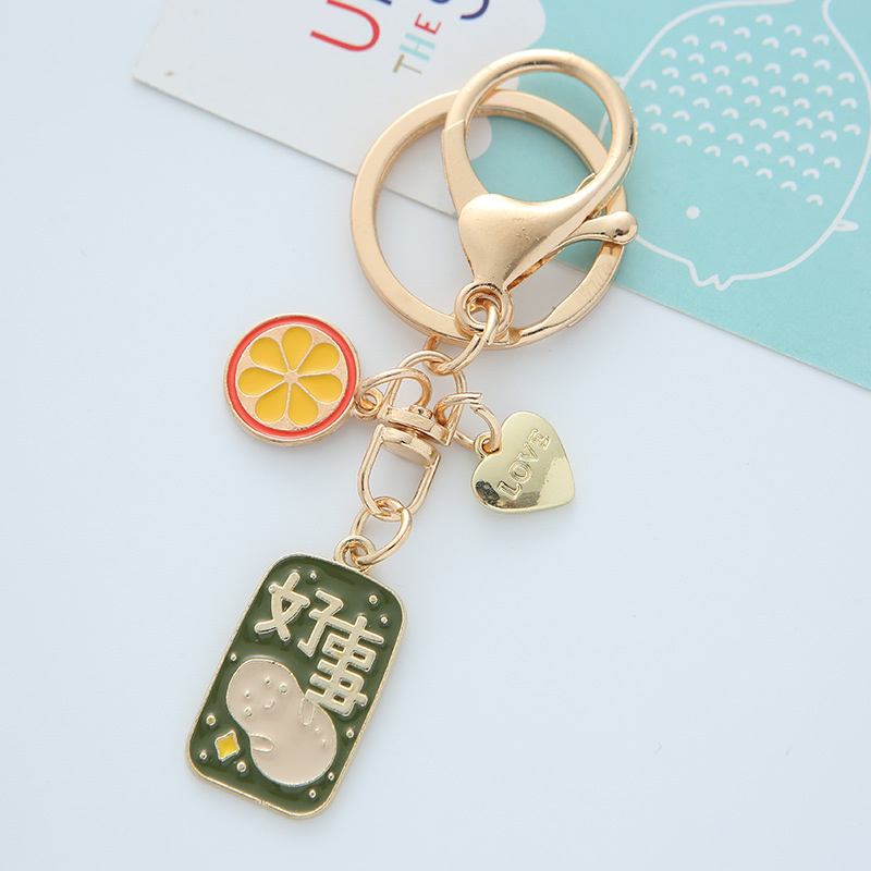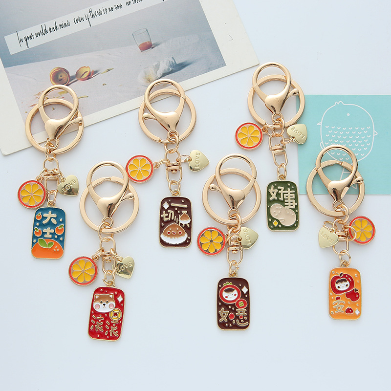 创意文字金属钥匙扣批发合金烤漆好事发生钥匙链吉利喜庆包包挂饰