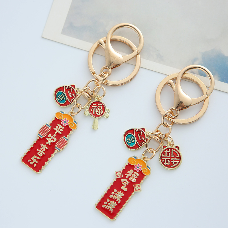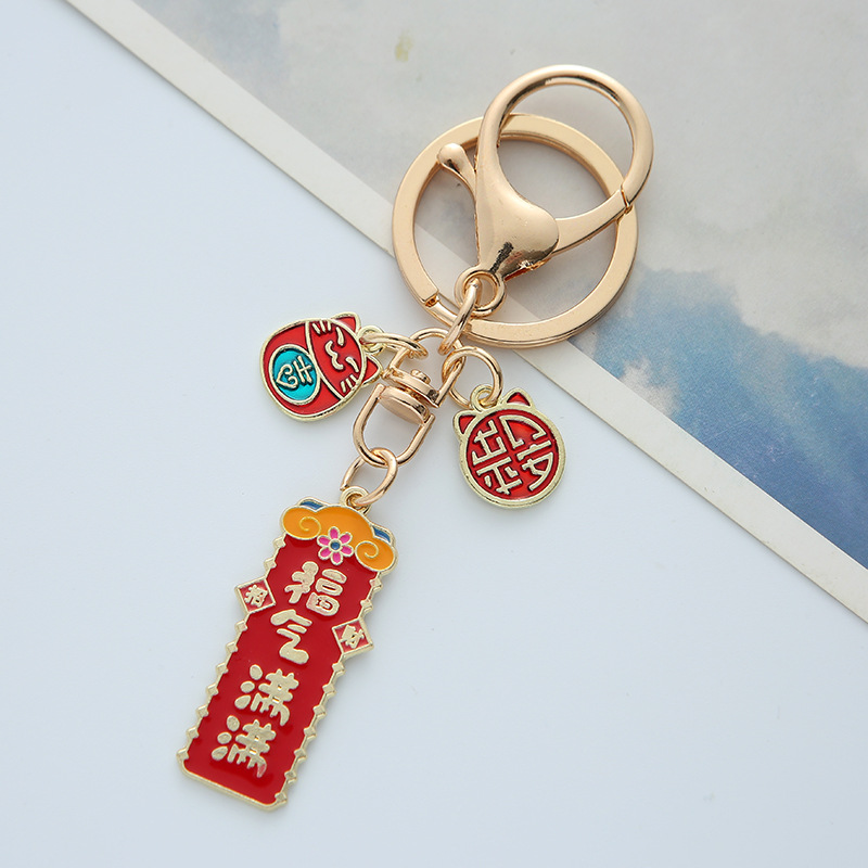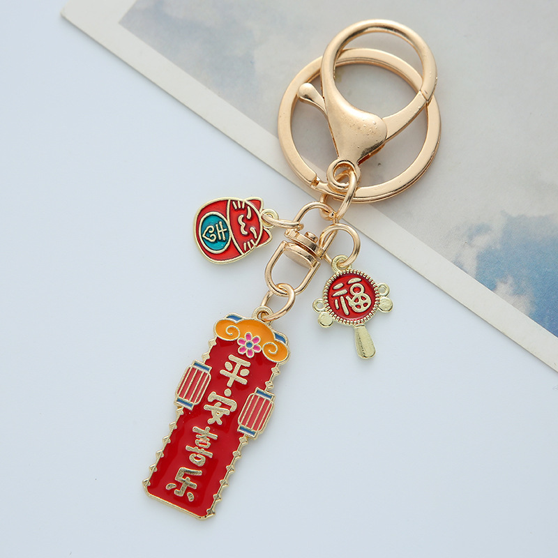 中国风祝福文字语钥匙扣批发平安喜乐挂件汽车钥匙链学生书包挂饰
