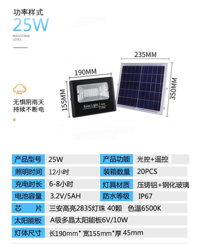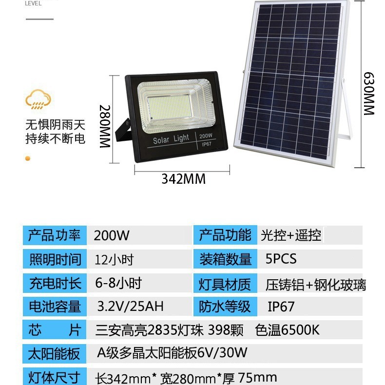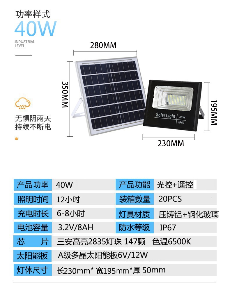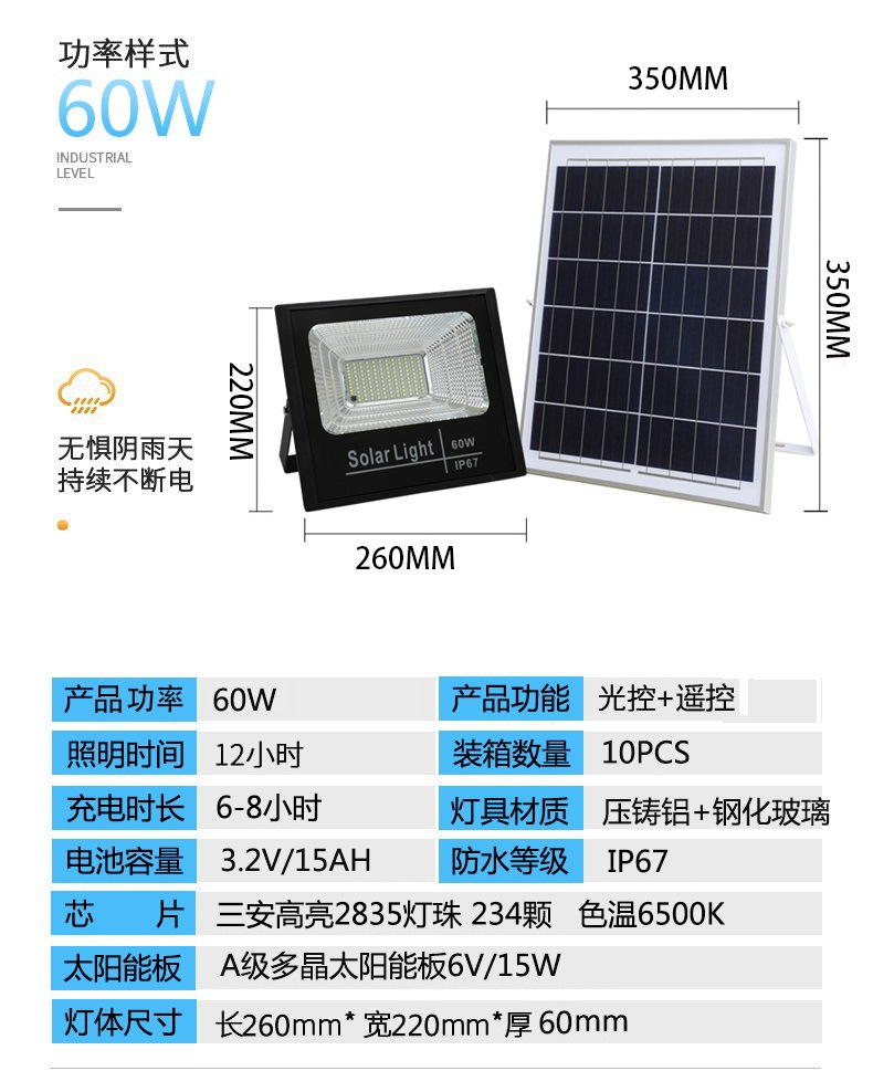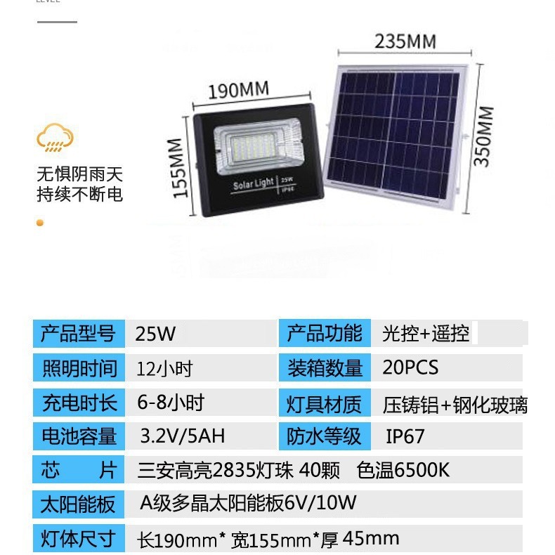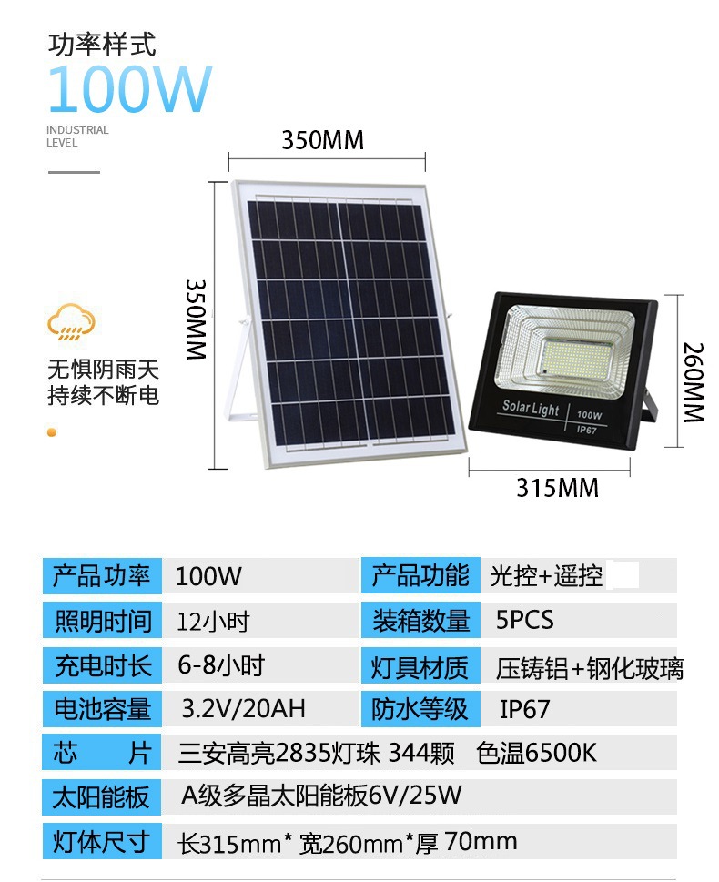 光控太阳能泛光灯led户外防水投光灯铝壳庭院灯农村人体感应路灯