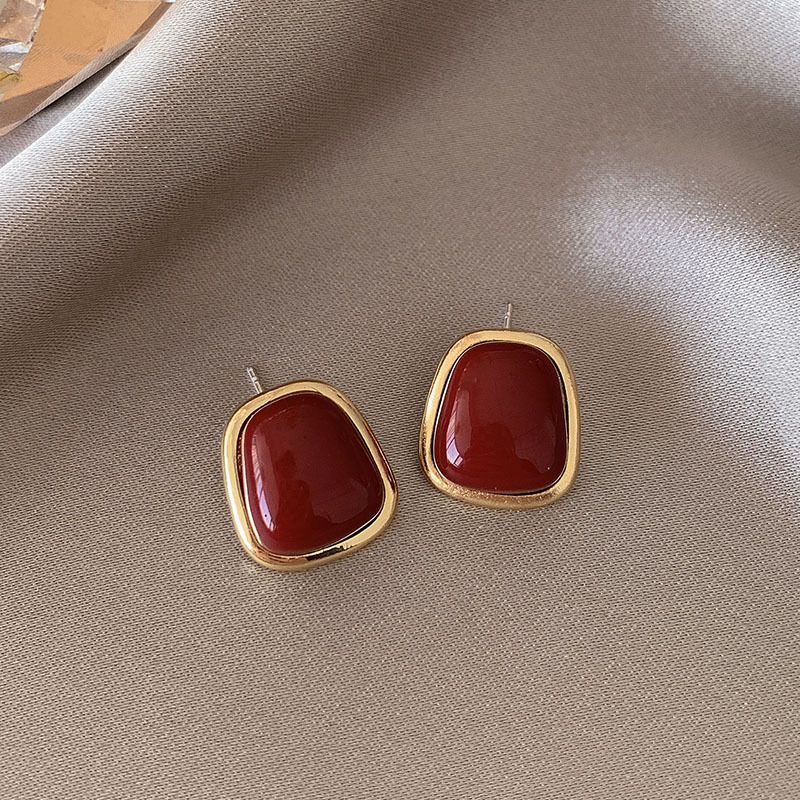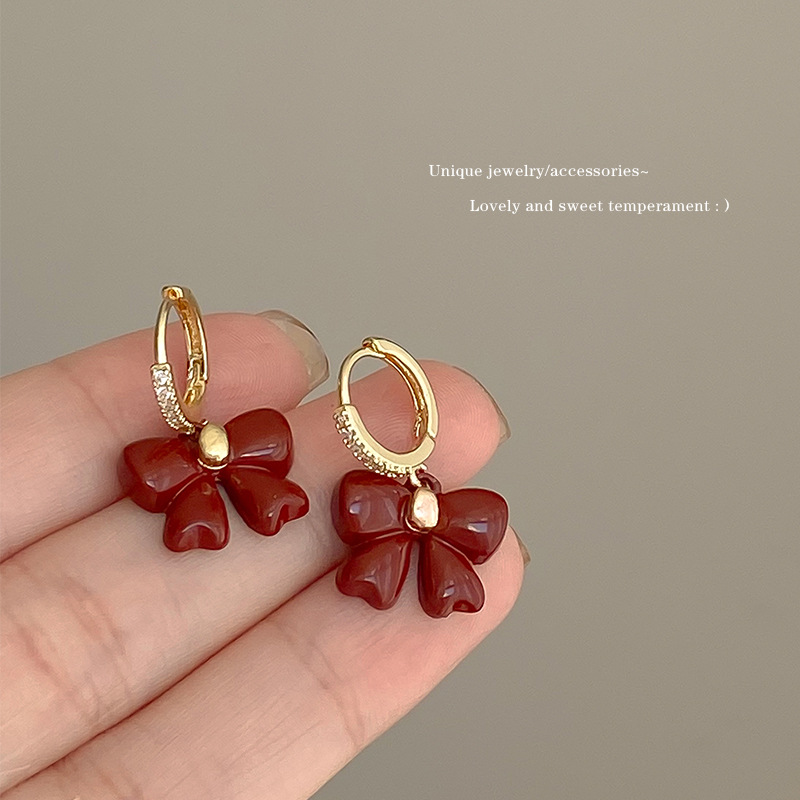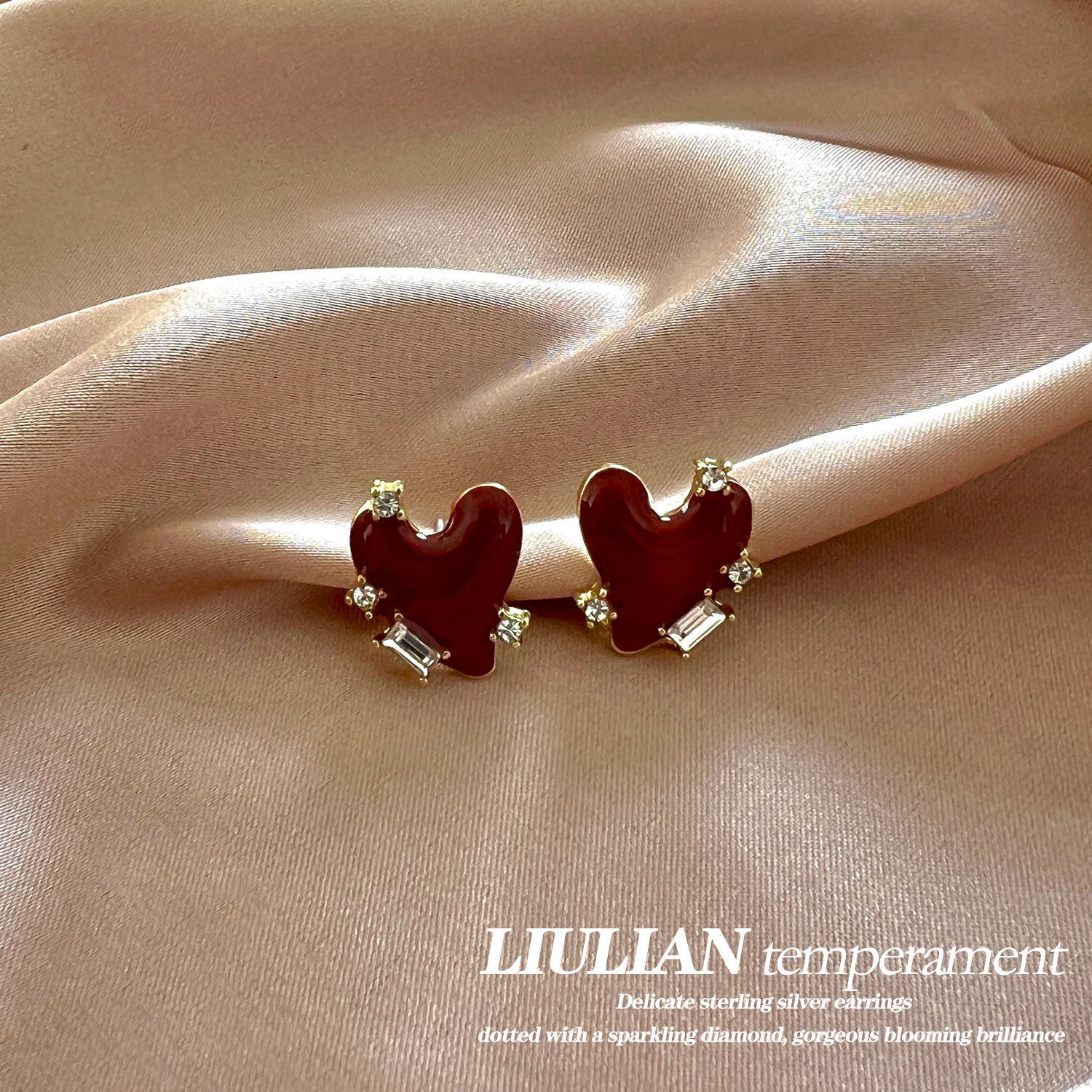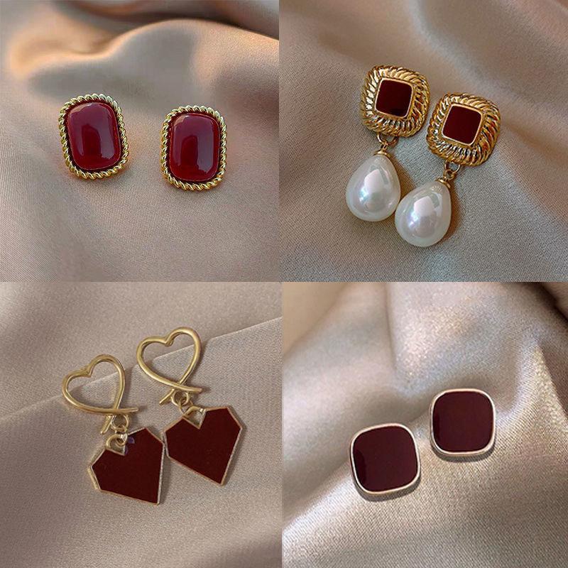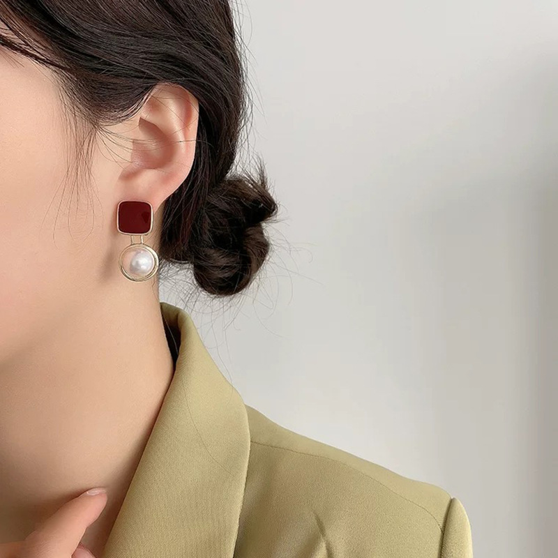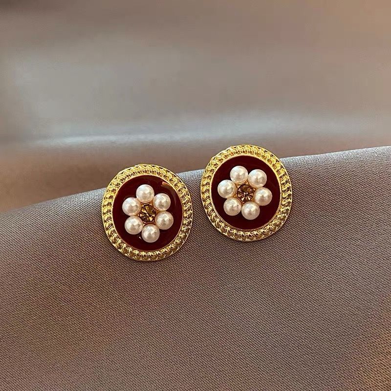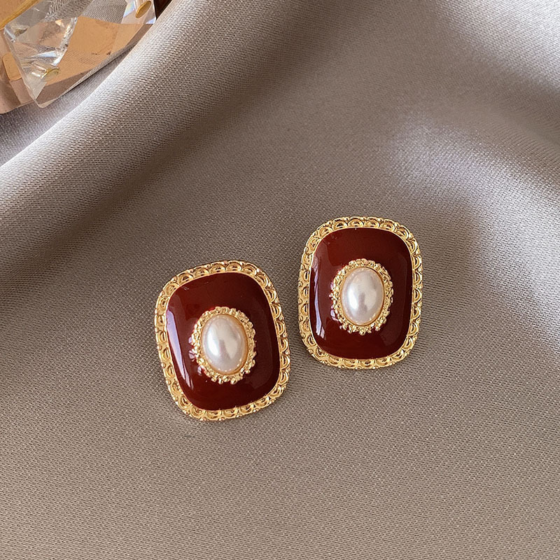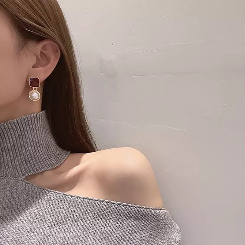 复古酒红色珍珠耳环无耳洞耳夹女港风小众设计高级感耳钉气质耳饰