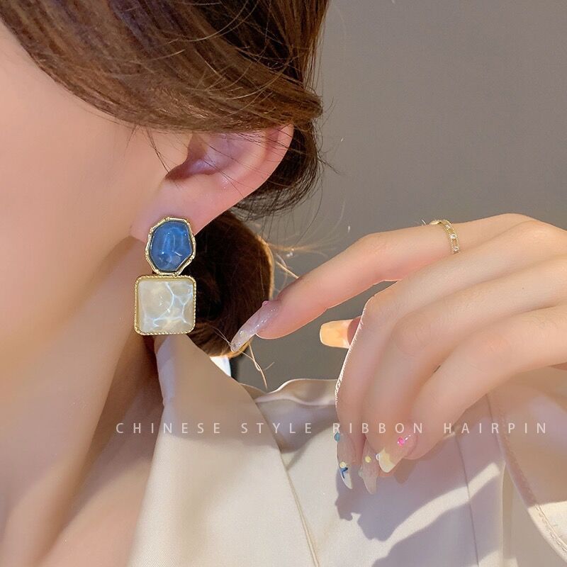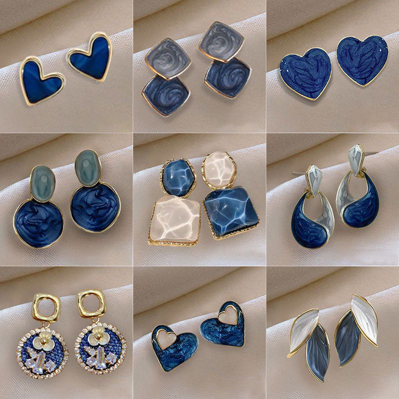 蓝色耳环女2024年新款小众设计感高级耳坠气质显脸小耳钉爆款耳饰