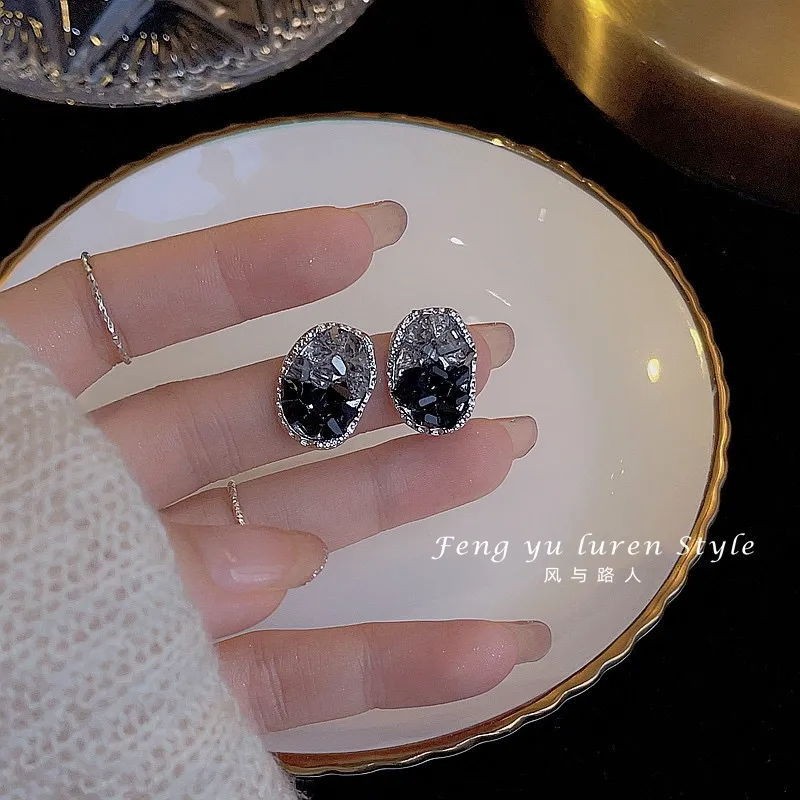 黑色高级感复古耳环女气质新款耳钉小众时尚个性轻奢耳饰网红批发