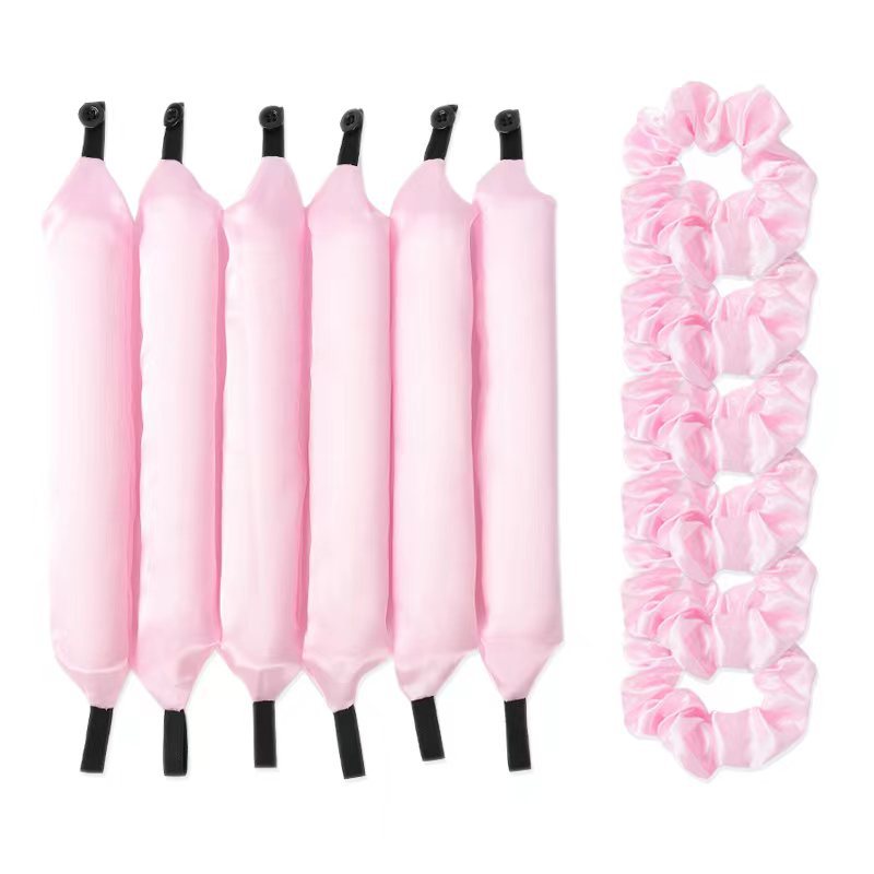 新款跨境6件套懒人卷发棒带纽扣卷发筒大波浪色丁泡沫卷发神器