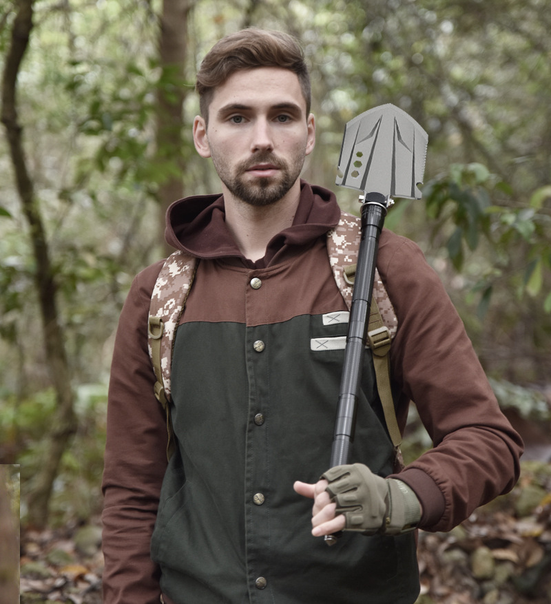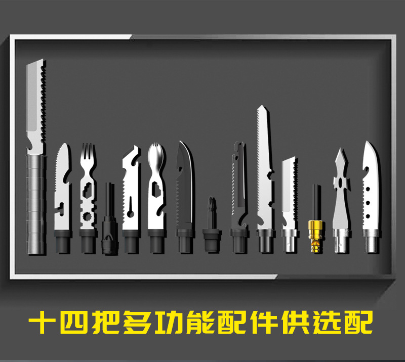 工兵铲子多功能户外用品打火石野营求生装备折叠兵工铲