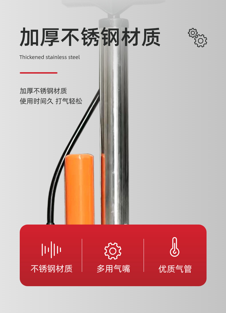 自行车打气筒电动车便携式打气筒高压通用小型家用不锈钢充气筒