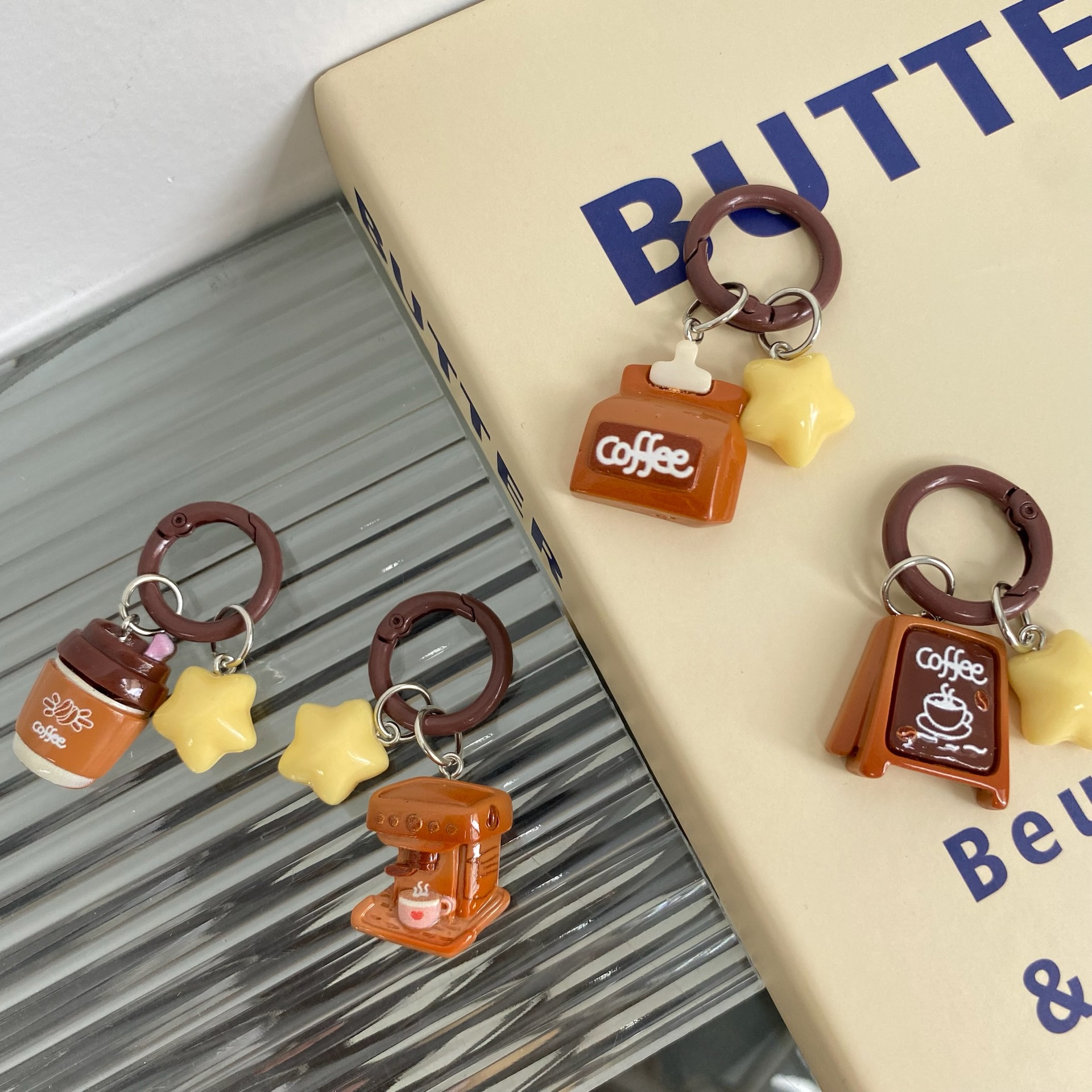 可爱咖啡小店星星钥匙扣甜美少女心挂饰星星卡通包包挂件闺蜜配饰
