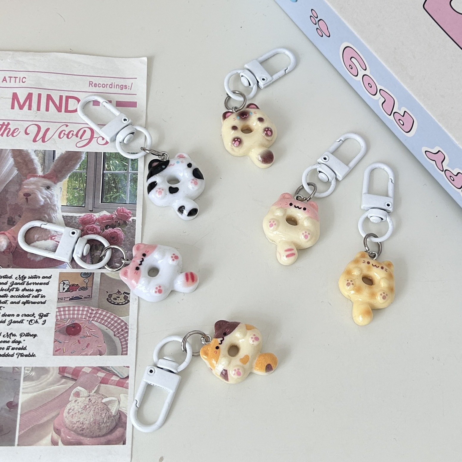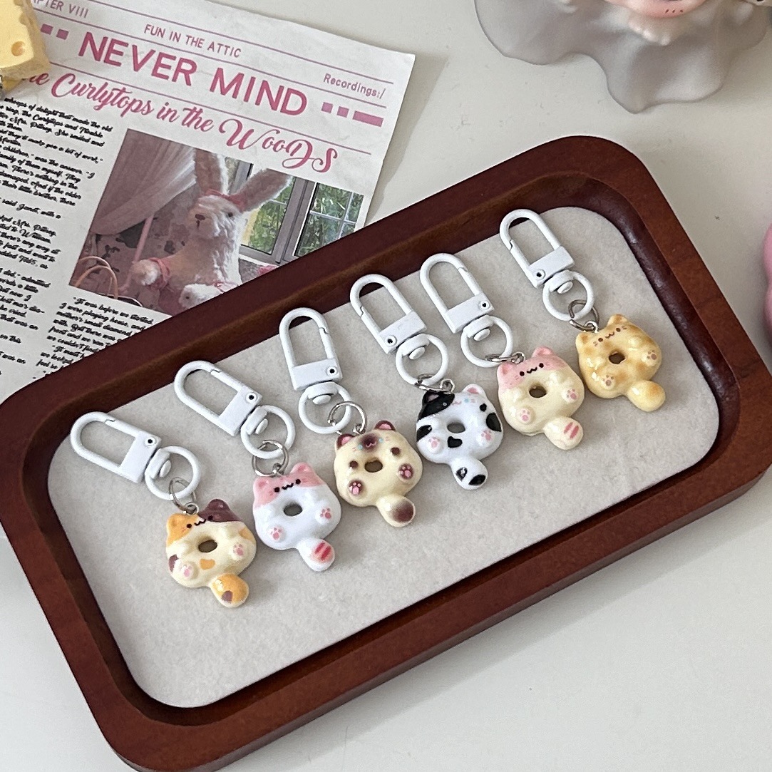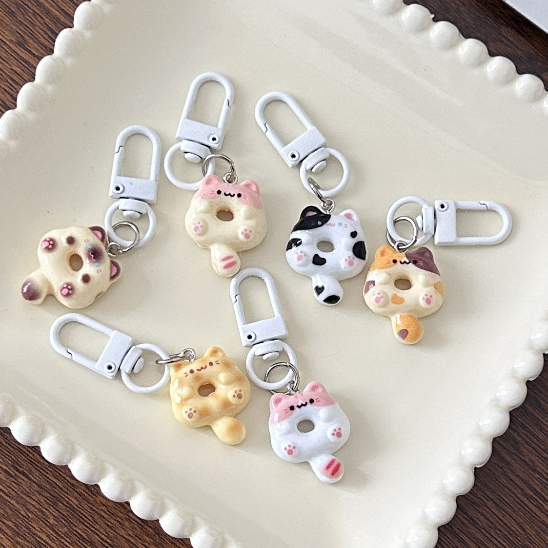 可爱猫咪甜甜圈钥匙扣趣味卡通食玩包包挂件情侣闺蜜礼物配饰饰品