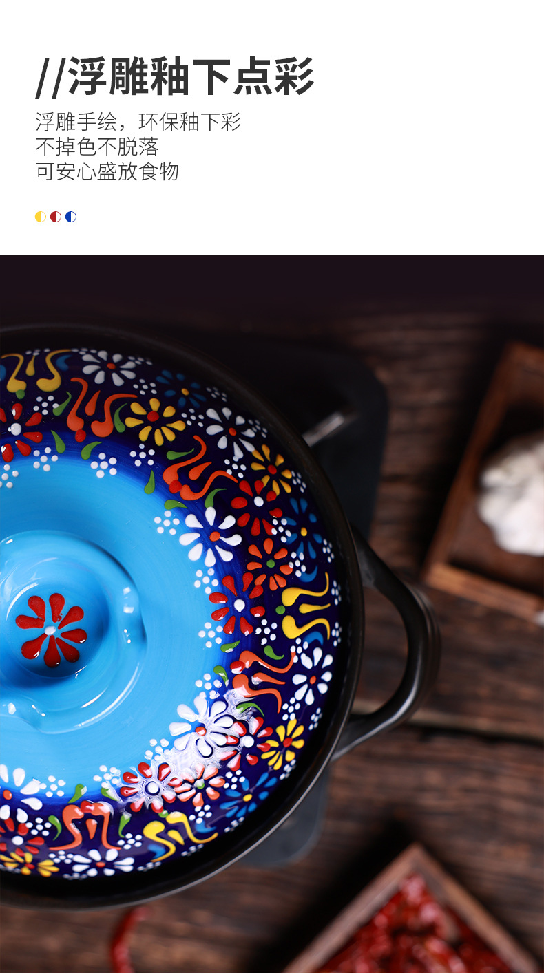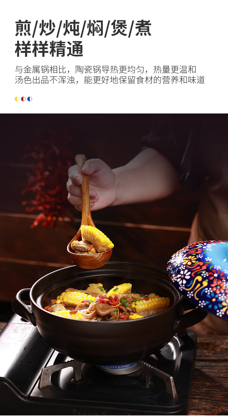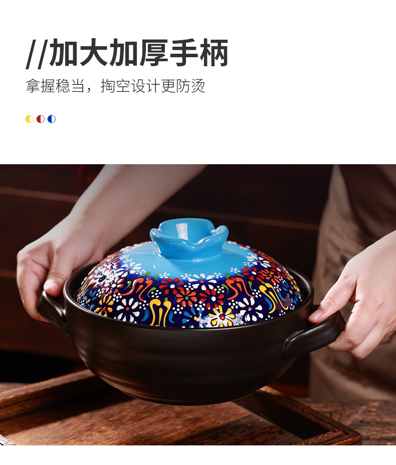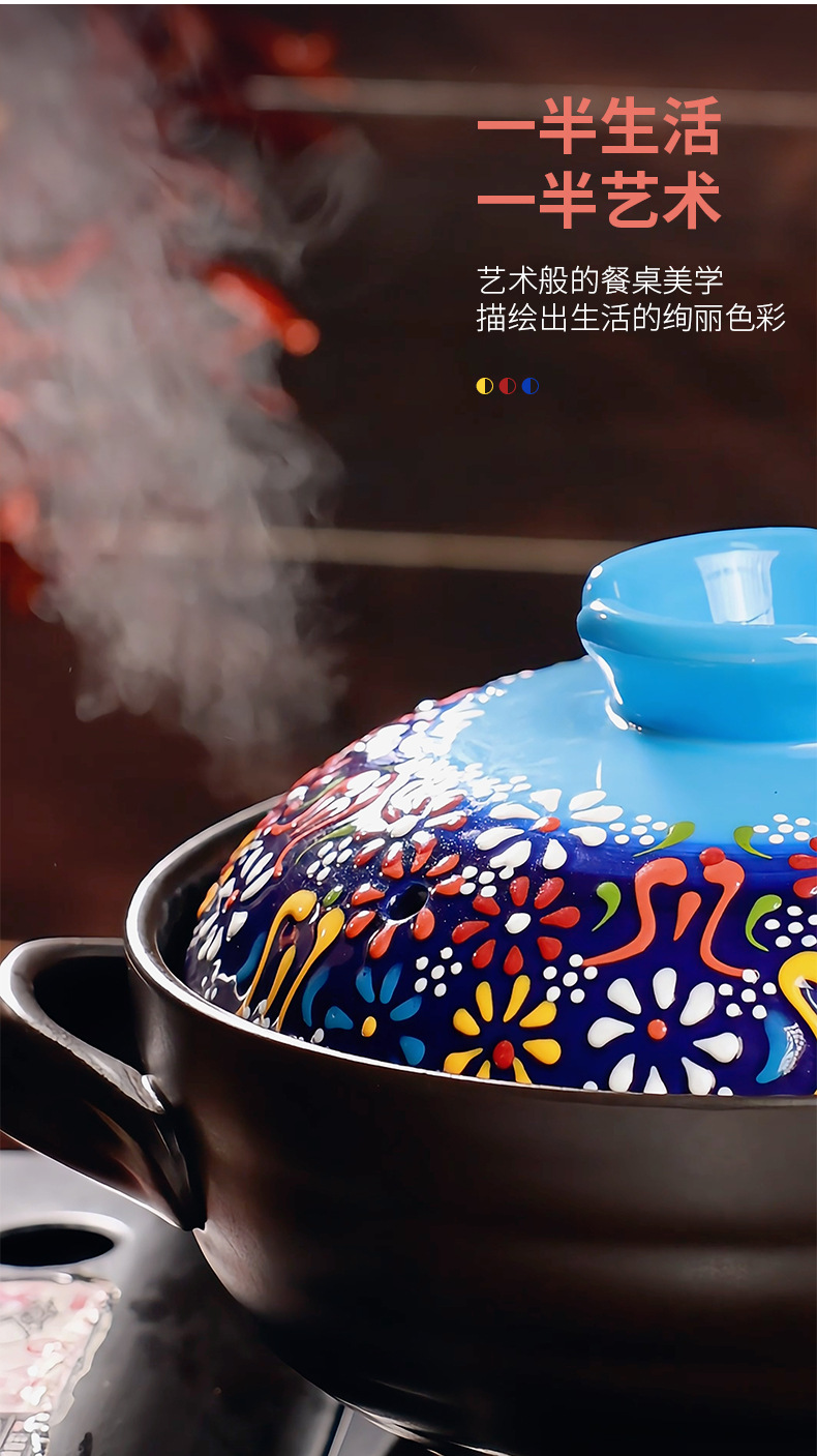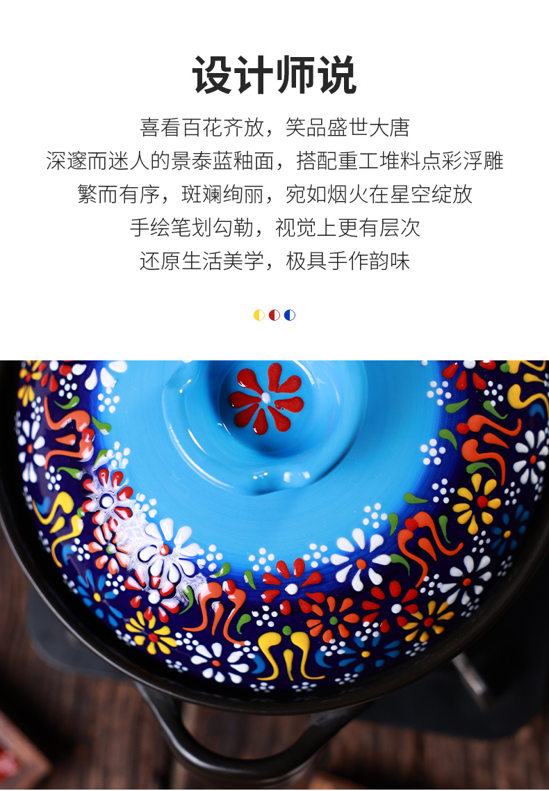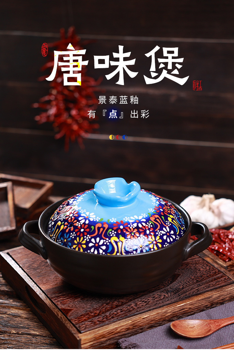 唐味煲中式手绘陶瓷煲砂锅烹饪明火耐高温炖锅沙锅釉下堆彩景泰蓝