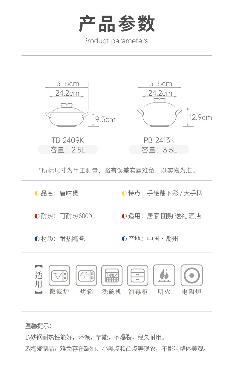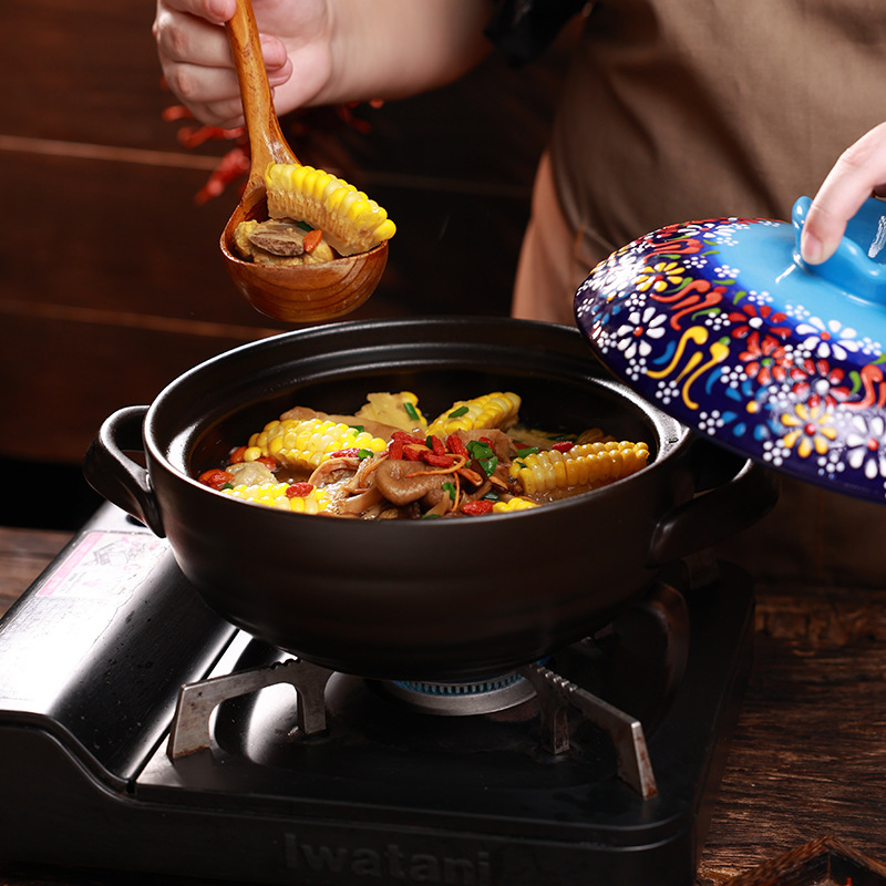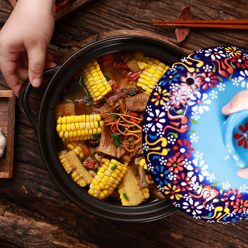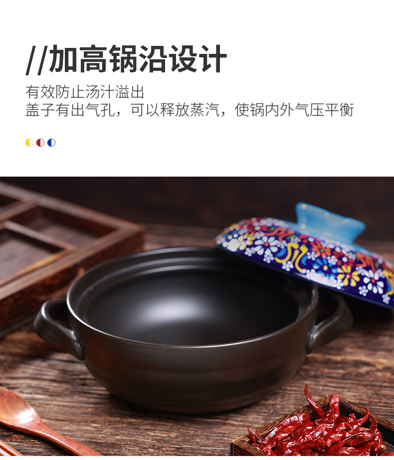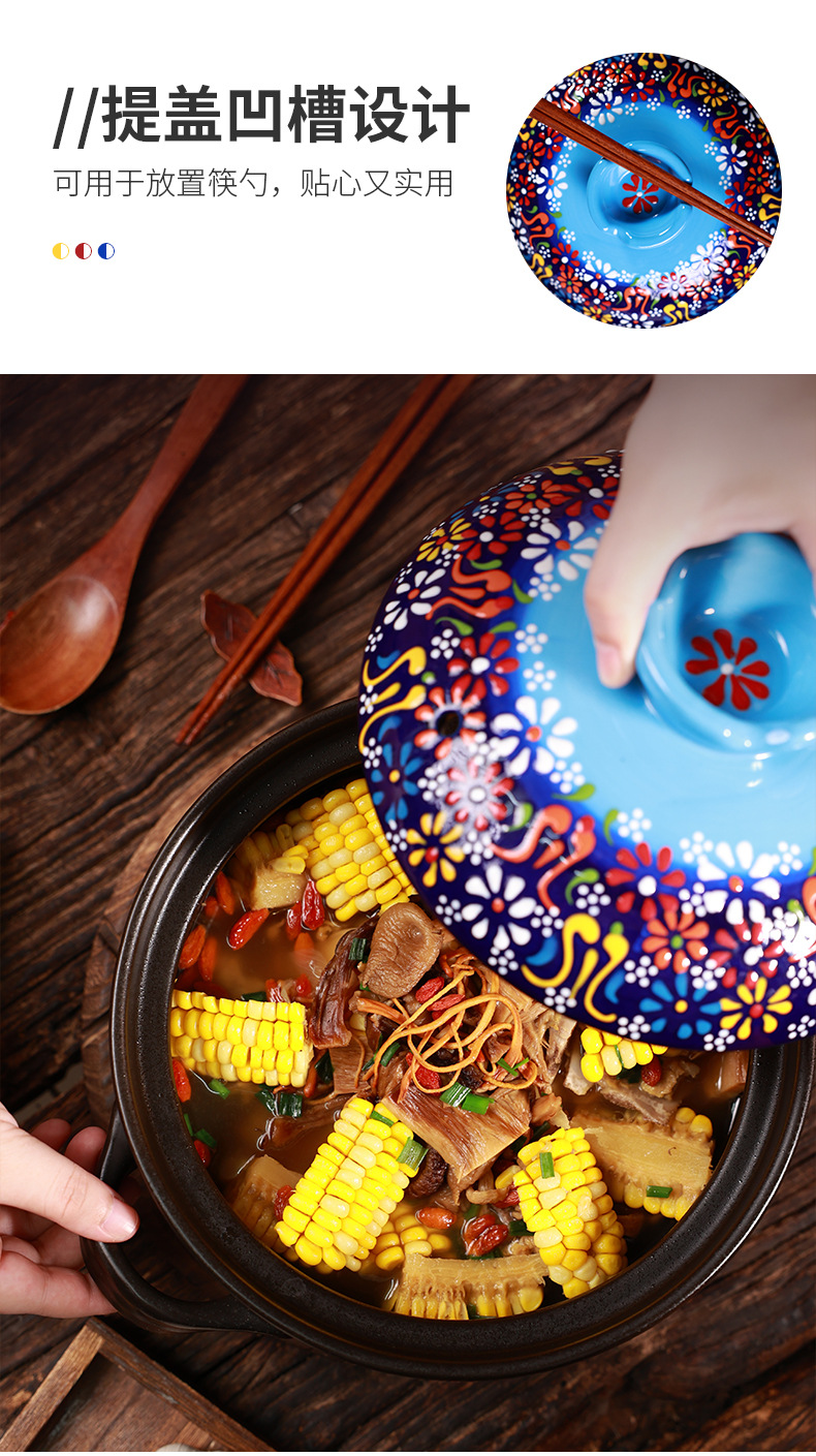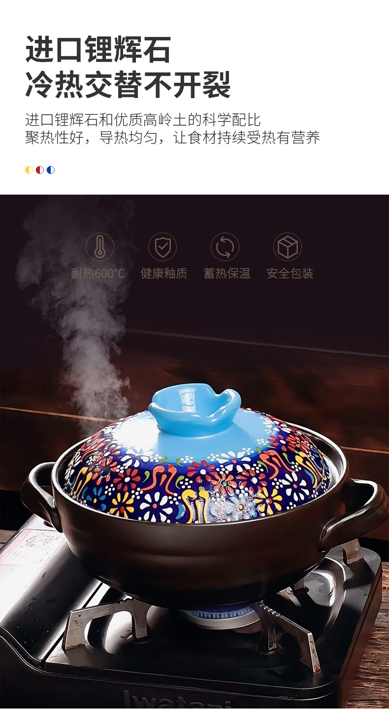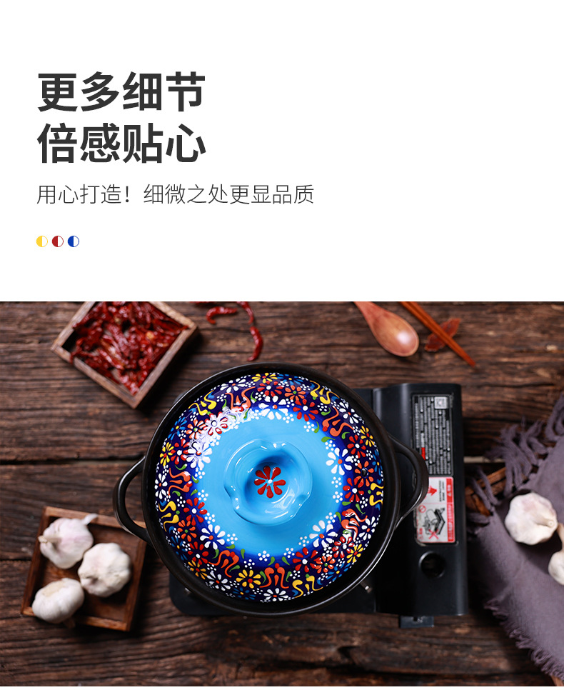 唐味煲中式手绘陶瓷煲砂锅烹饪明火耐高温炖锅沙锅釉下堆彩景泰蓝