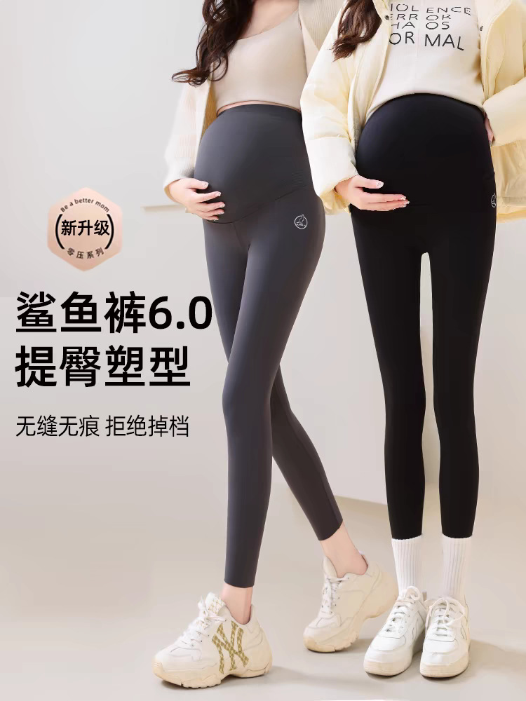 2024新款外穿孕妇打底裤子秋冬季瑜伽托腹孕期鲨鱼裤加绒加厚大码
