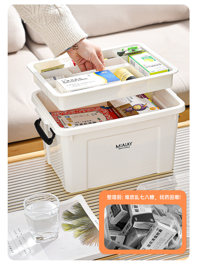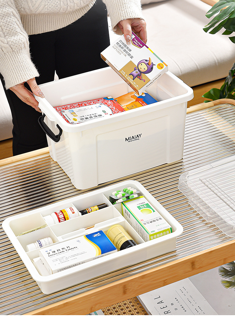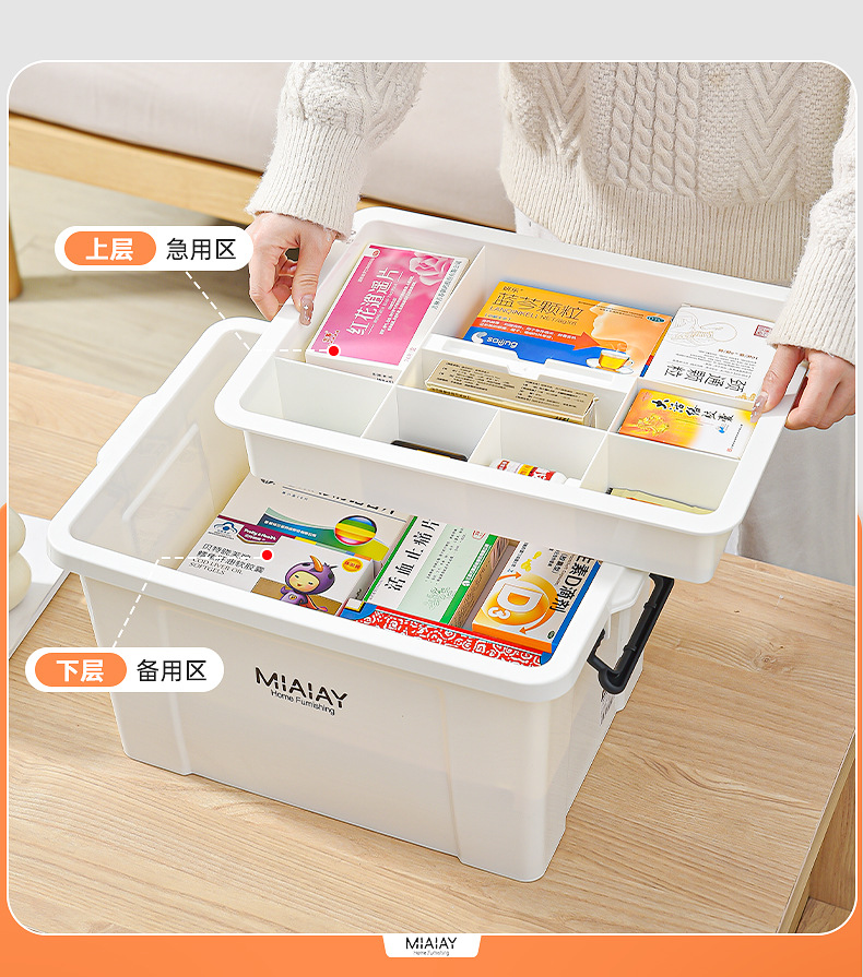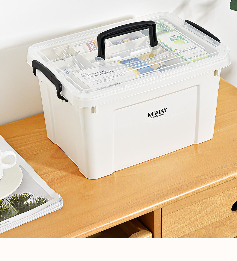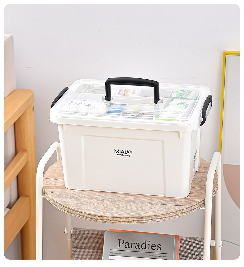 家庭装药箱 便携手提家用塑料防疫药品收纳盒双层透明加盖收纳储