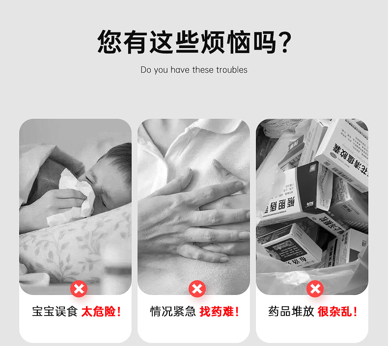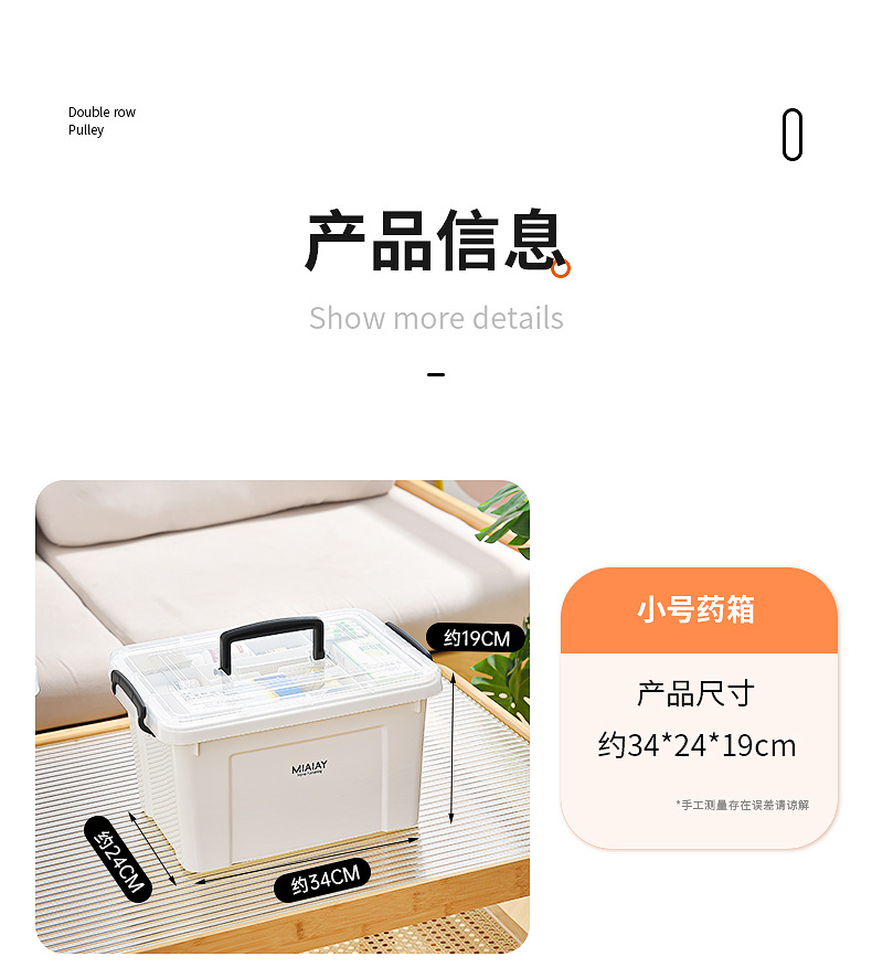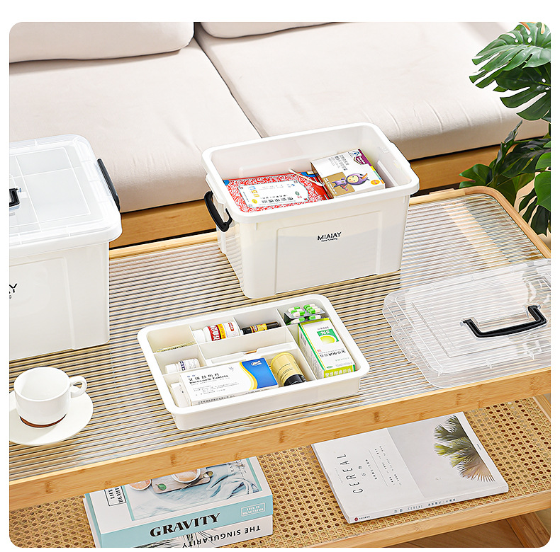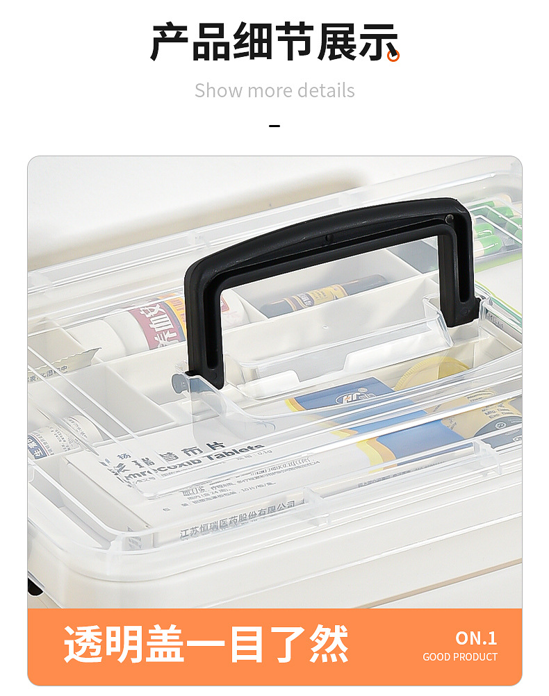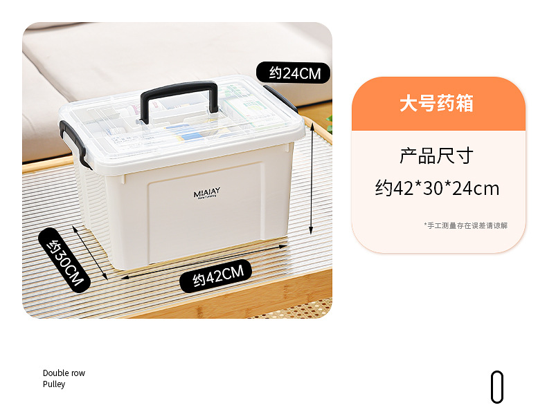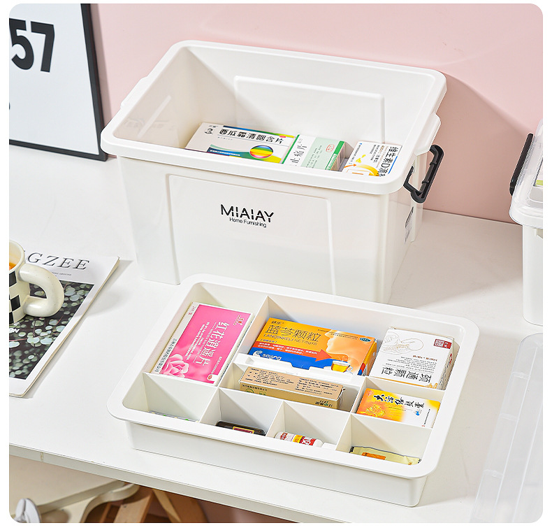 家庭装药箱 便携手提家用塑料防疫药品收纳盒双层透明加盖收纳储