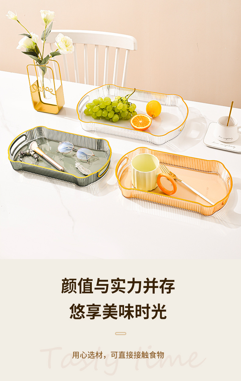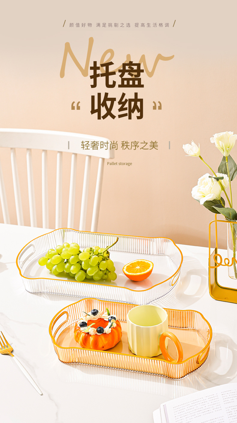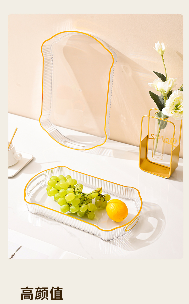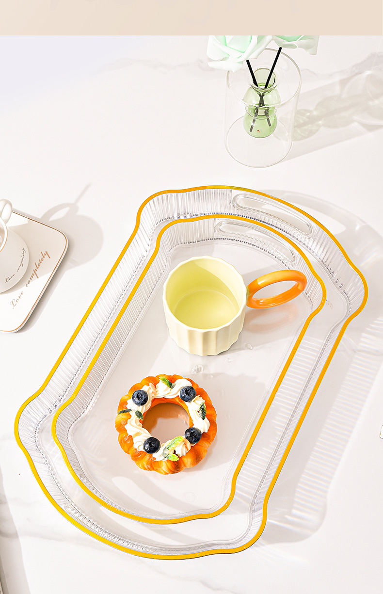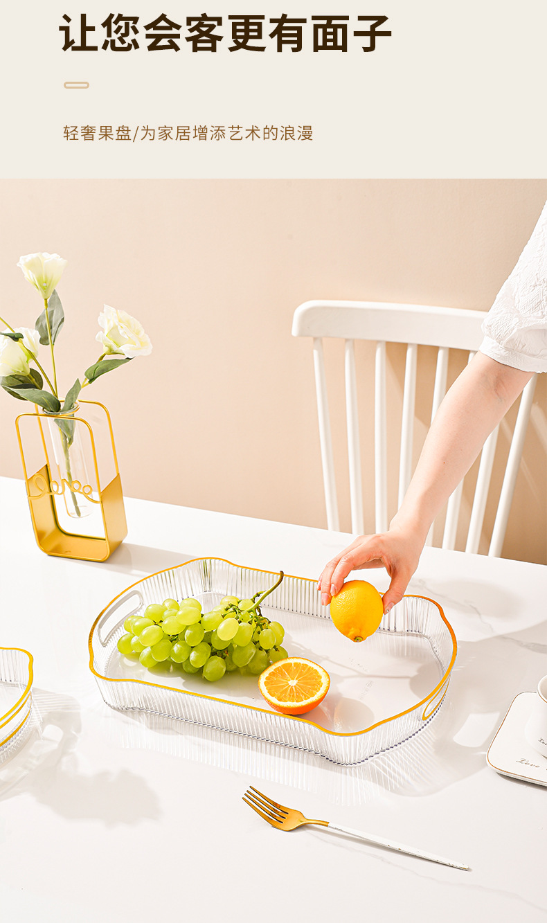 婚庆婚宴会零食盘水果收纳盘轻奢果盘长方托盘家用放茶杯水杯茶盘