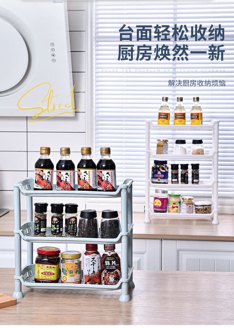 落地式置物架宿舍杂物整理架厨房置物架三层调料瓶台面收纳架浴室