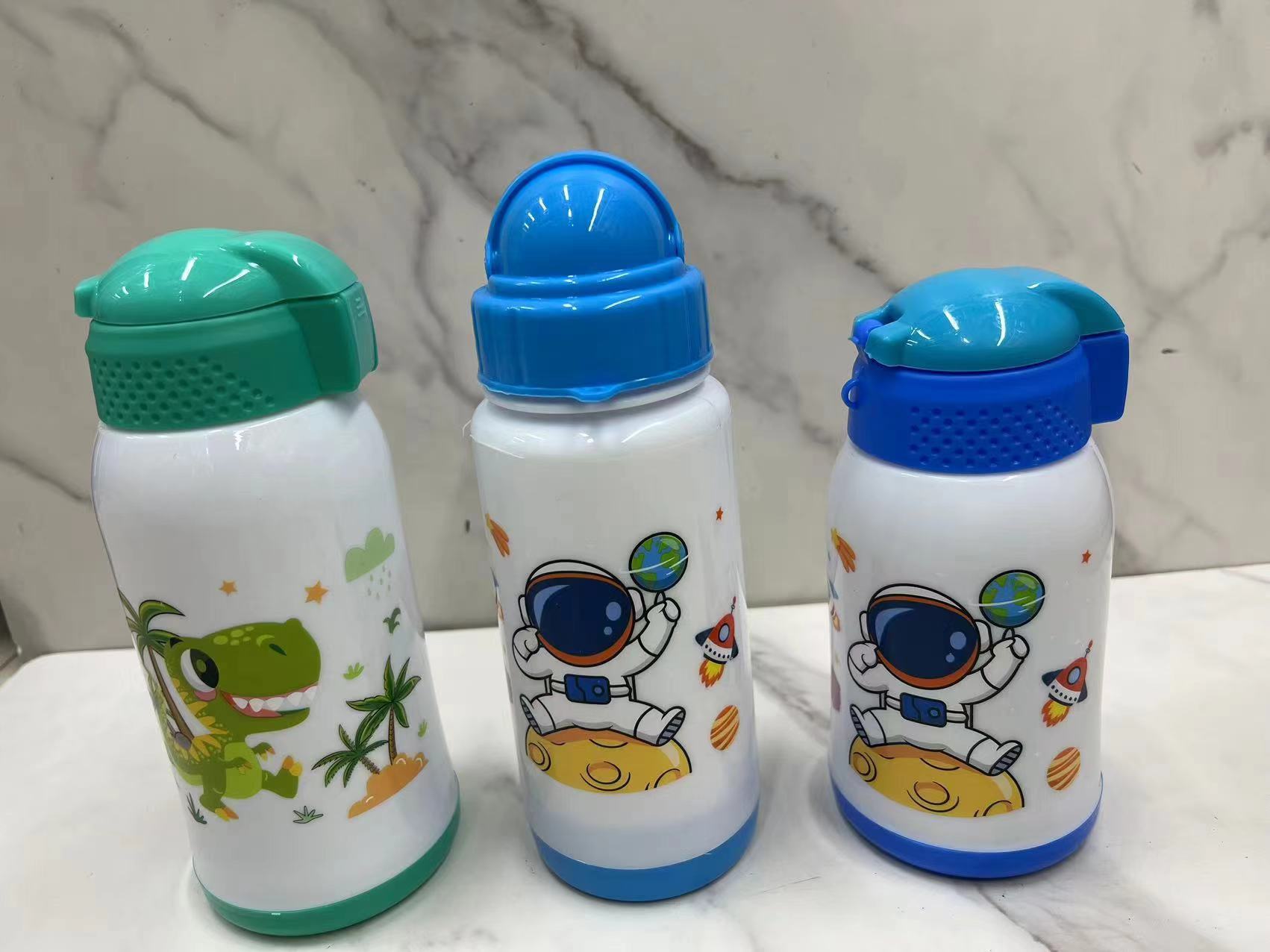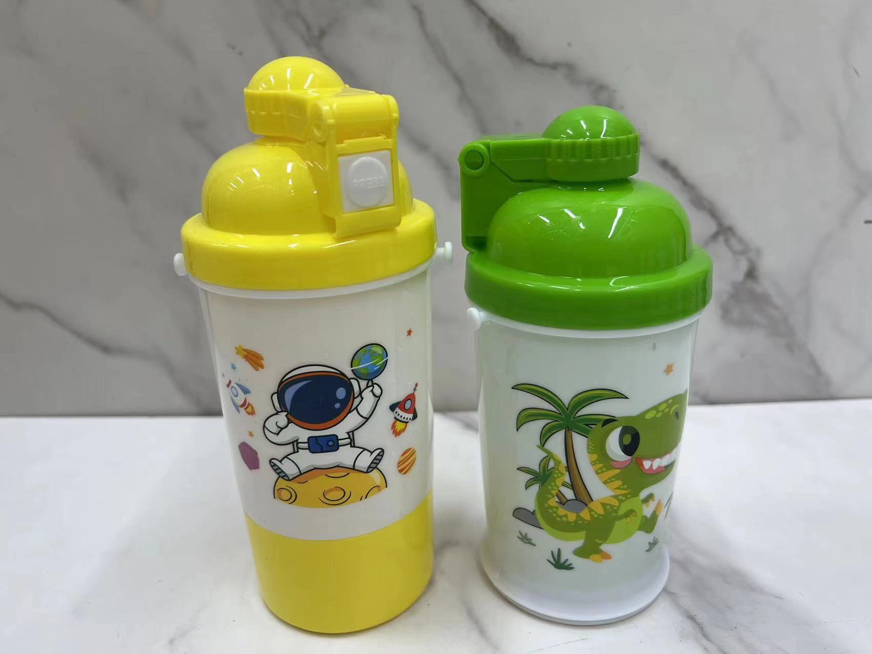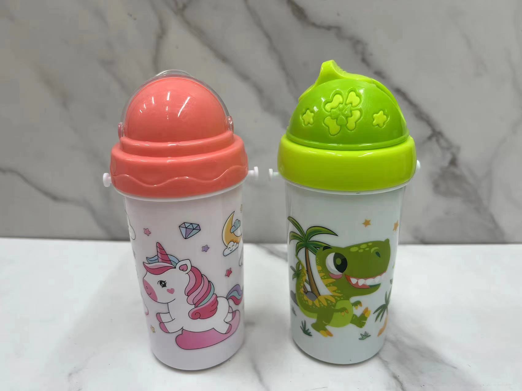 新款创意儿童水杯 卡通的便携吸管壶 PP防摔防漏背带水壶