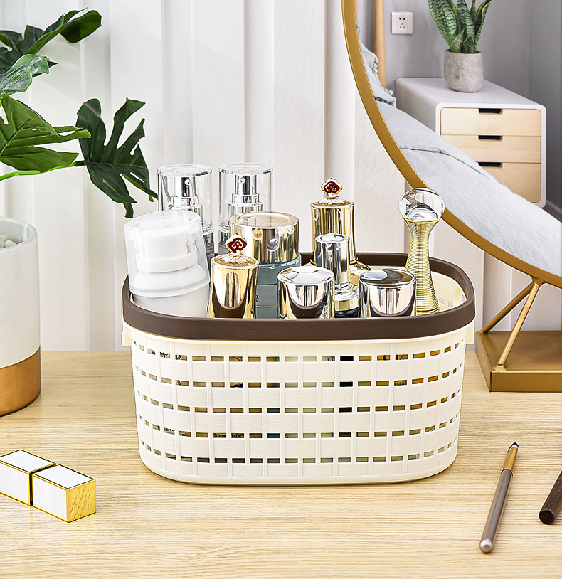 收纳筐桌面款大容量收纳篮加厚耐用PP塑料镂空多功能化妆用品置物