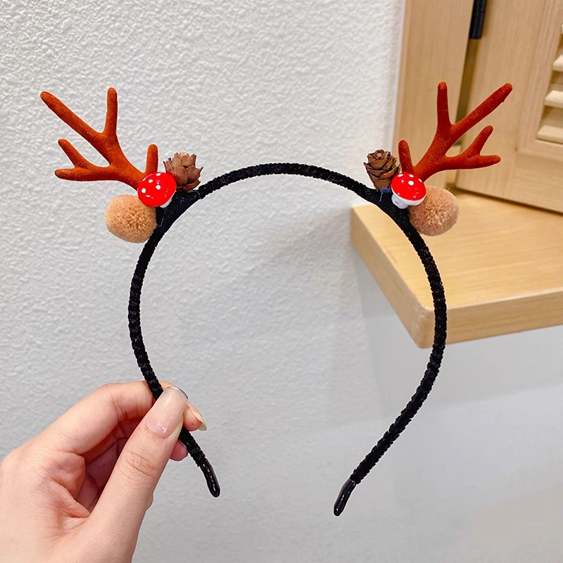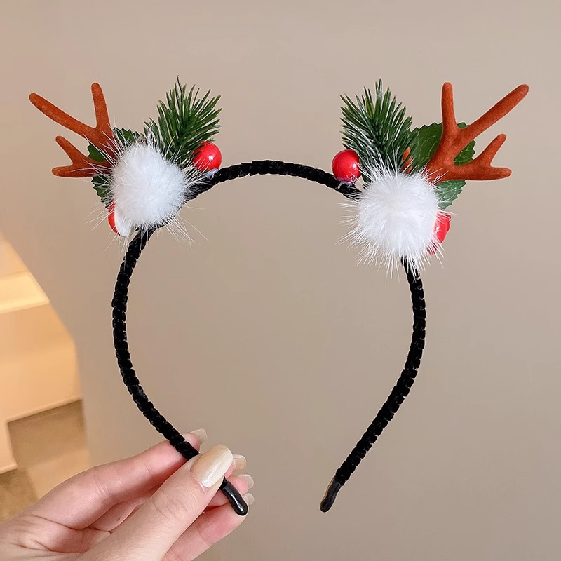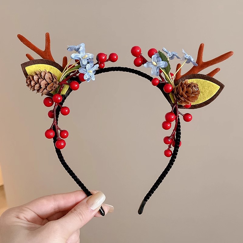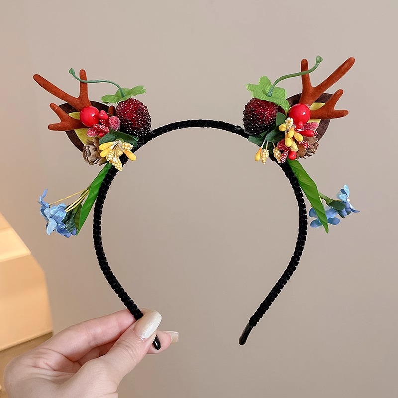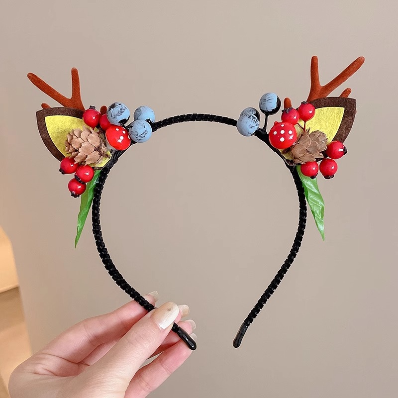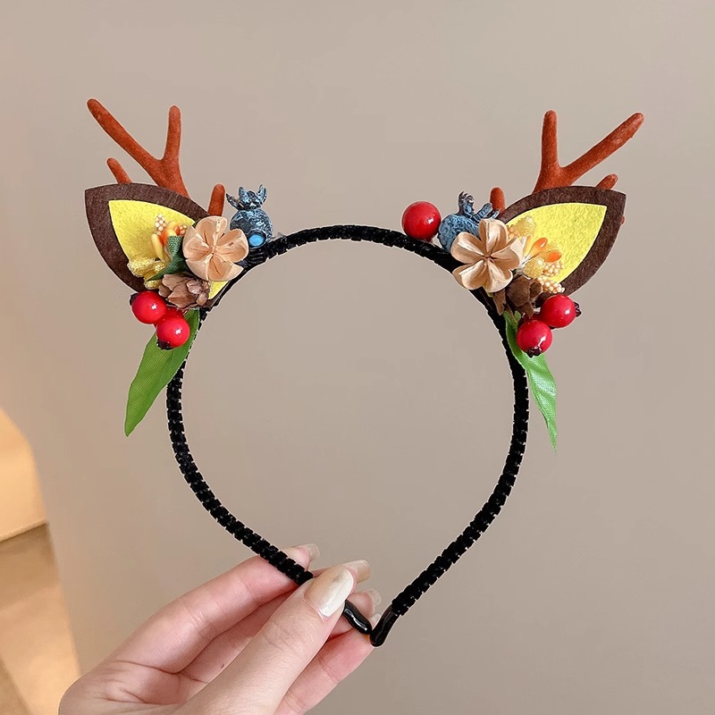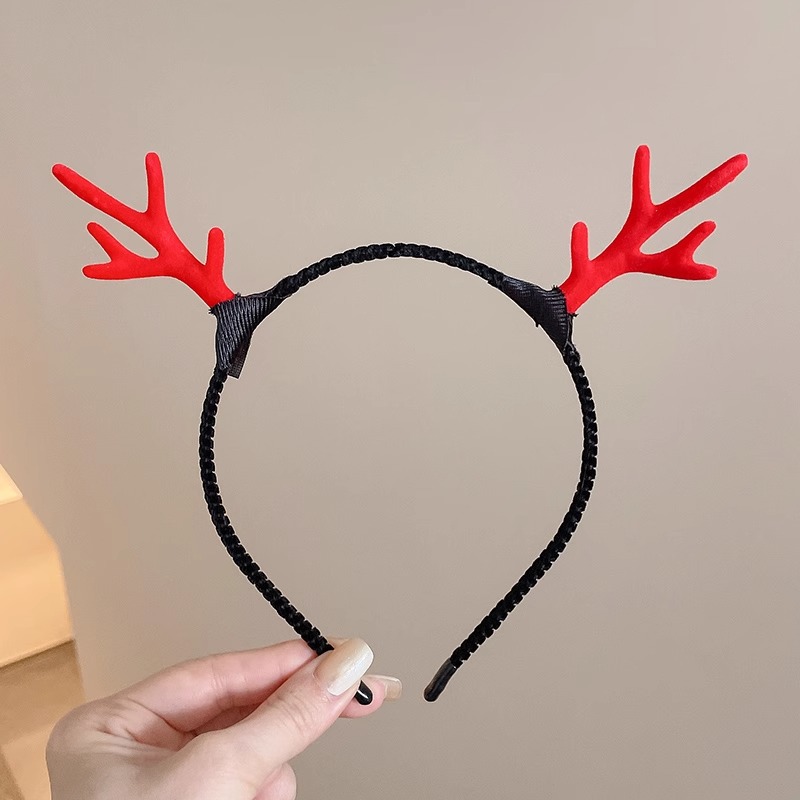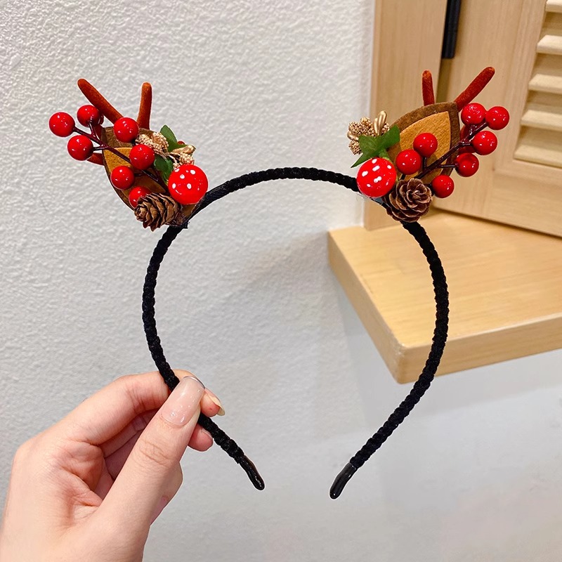 圣诞节儿童装扮发箍发饰可爱红色鹿角头箍2024新款森系麋鹿发卡子