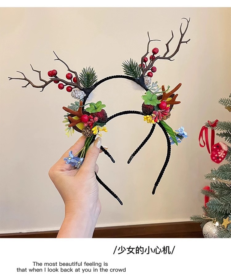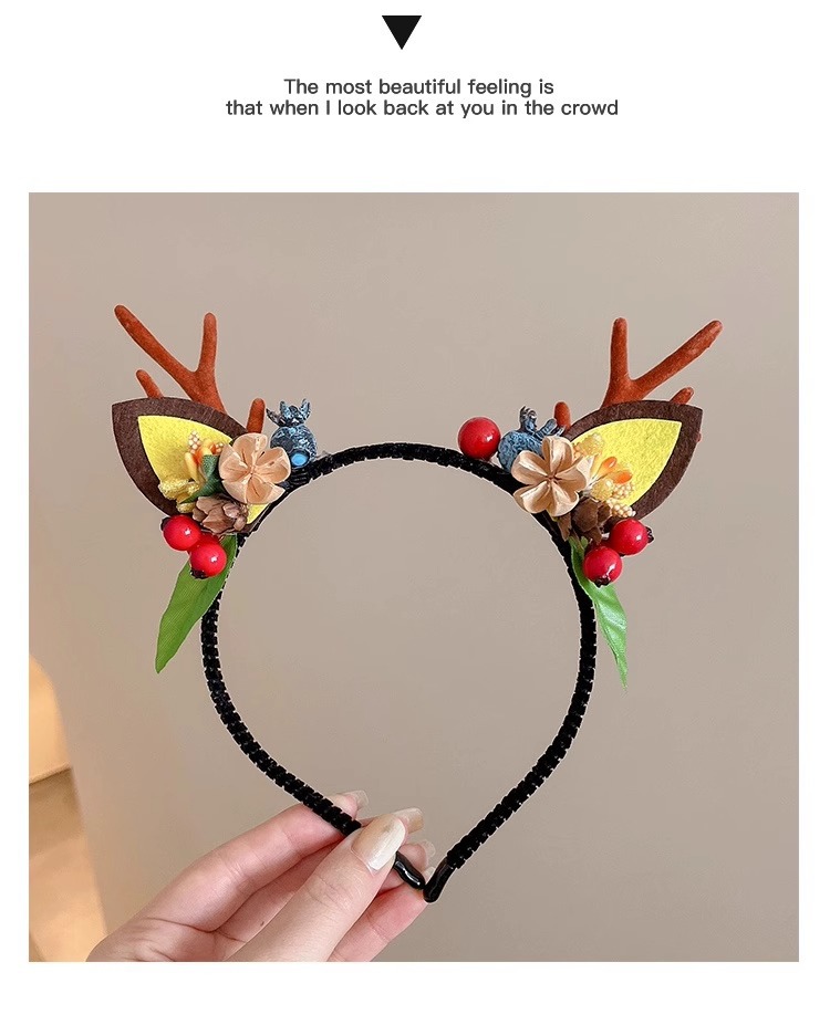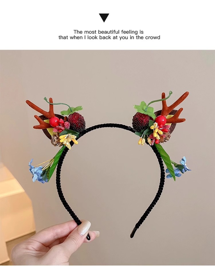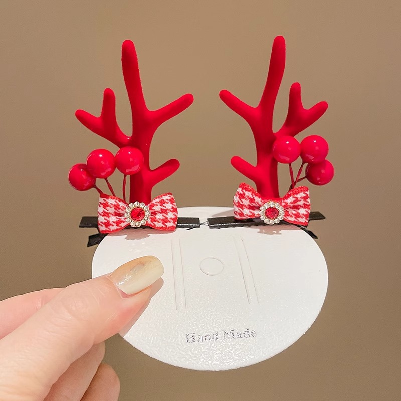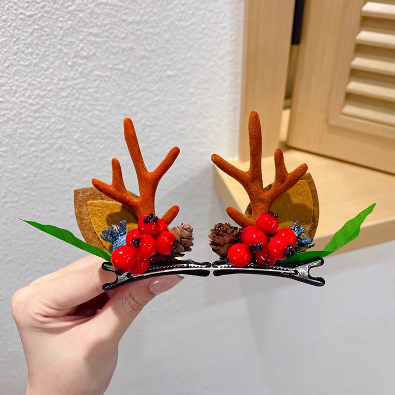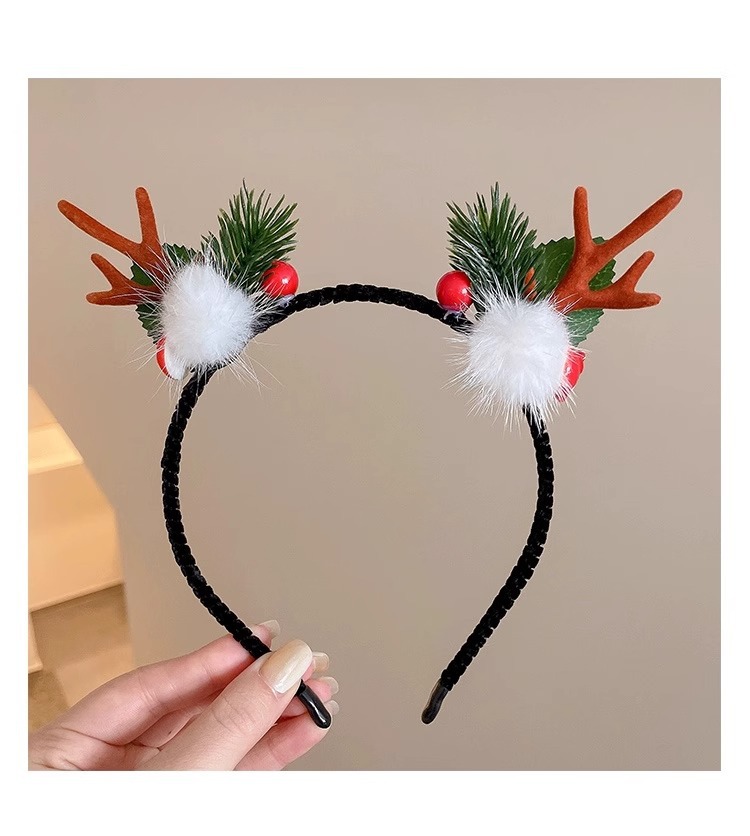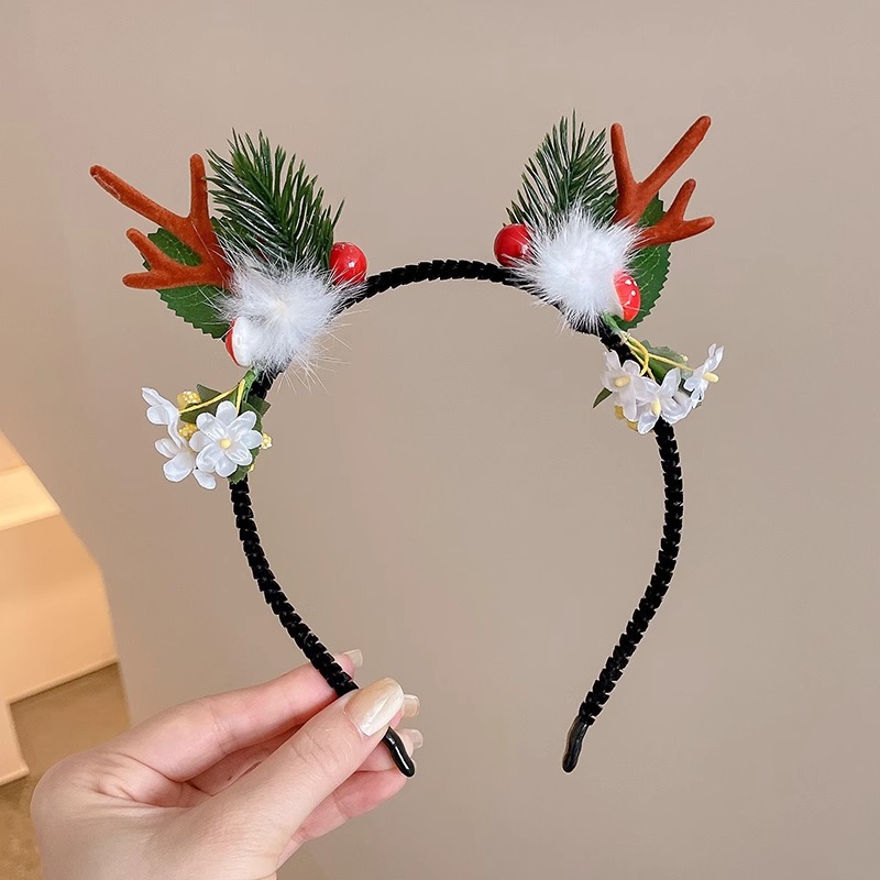 圣诞节儿童装扮发箍发饰可爱红色鹿角头箍2024新款森系麋鹿发卡子