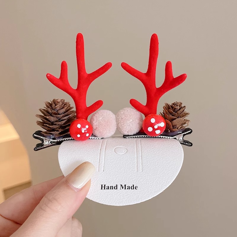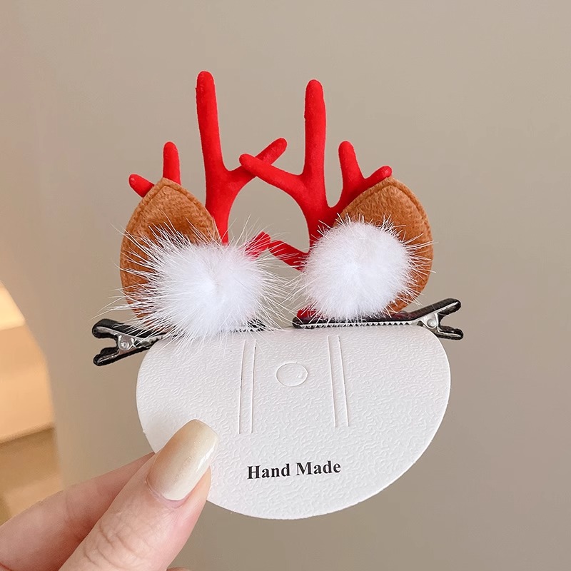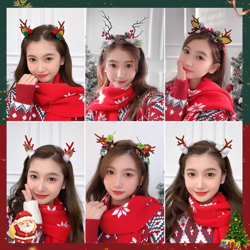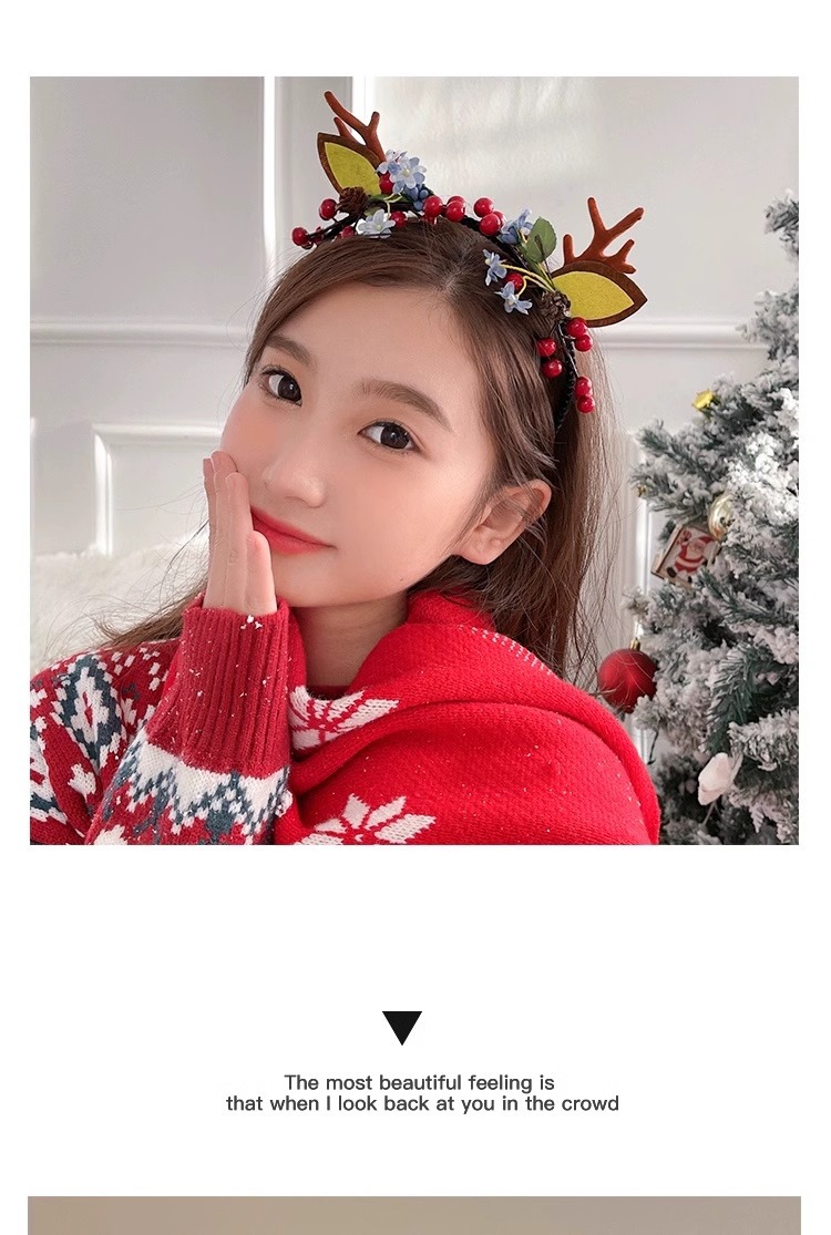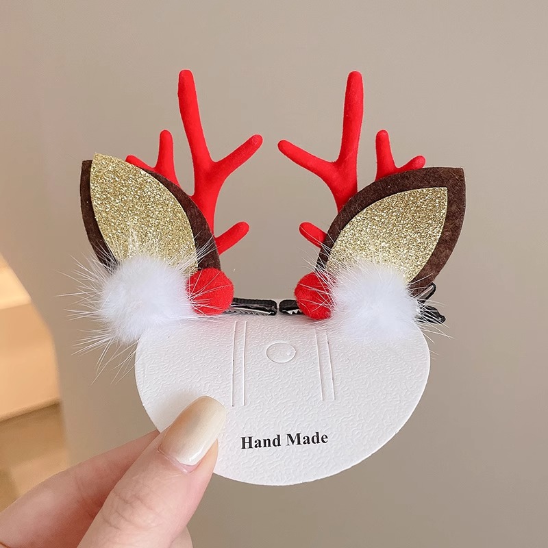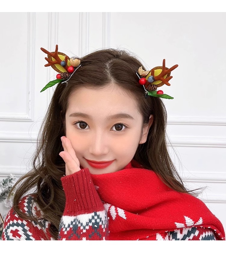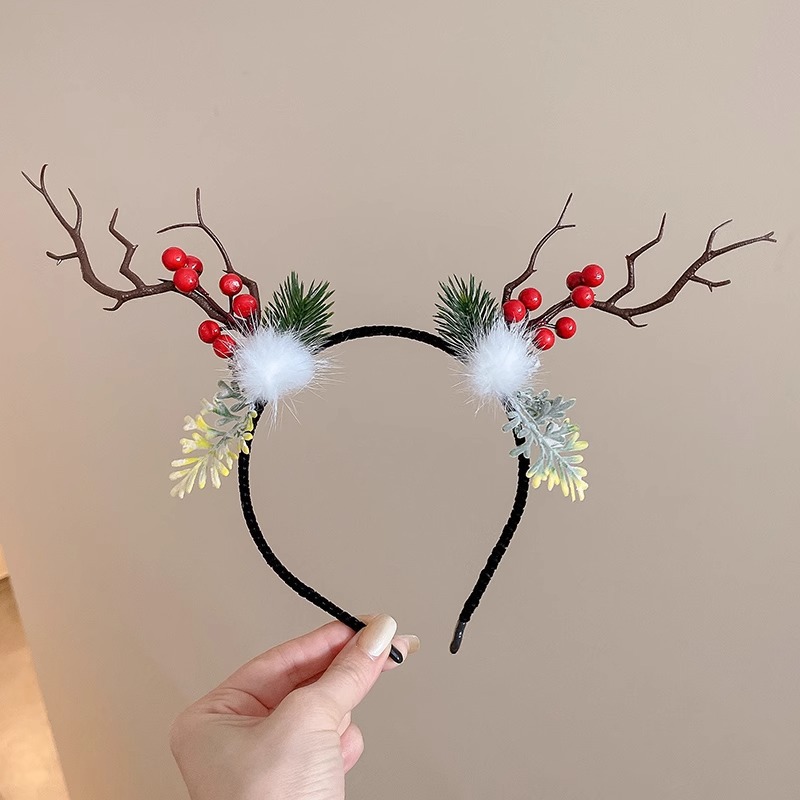 圣诞节儿童装扮发箍发饰可爱红色鹿角头箍2024新款森系麋鹿发卡子