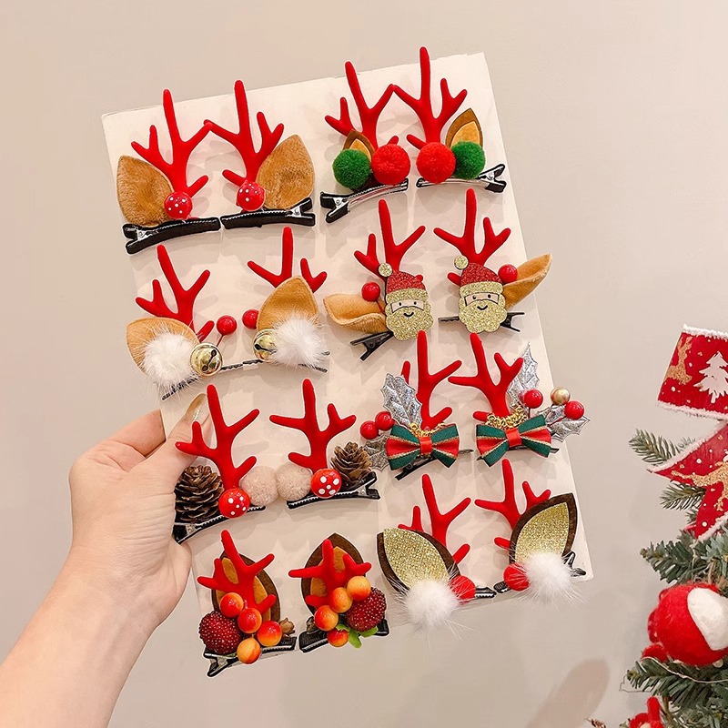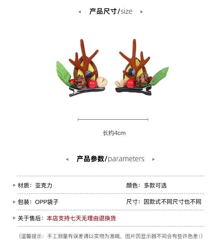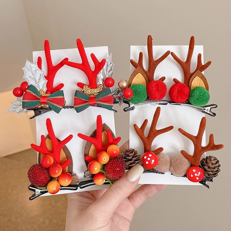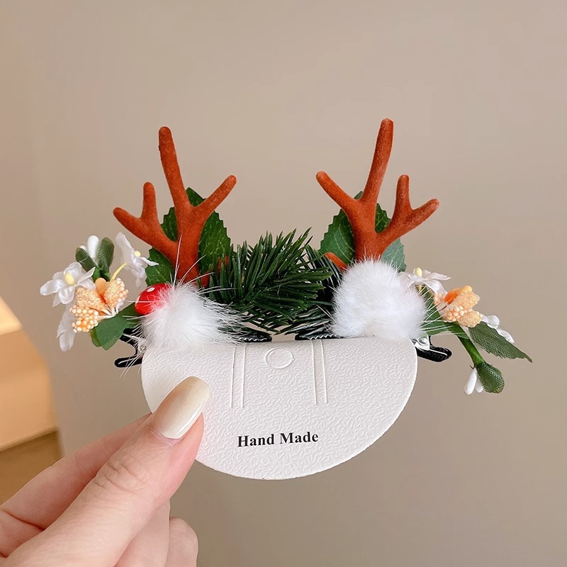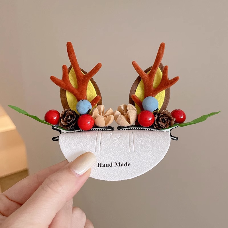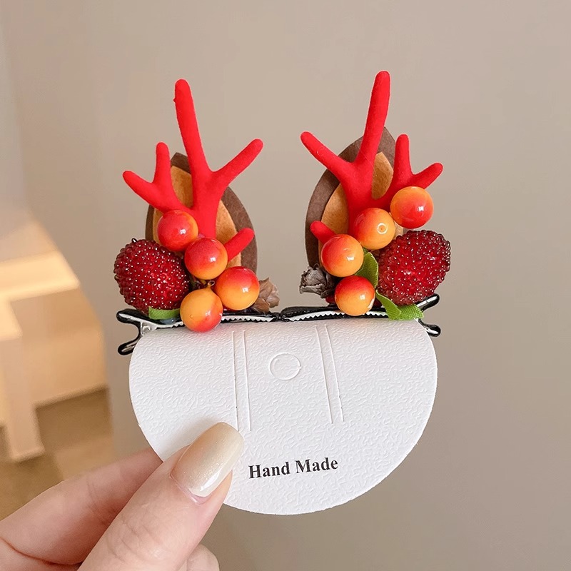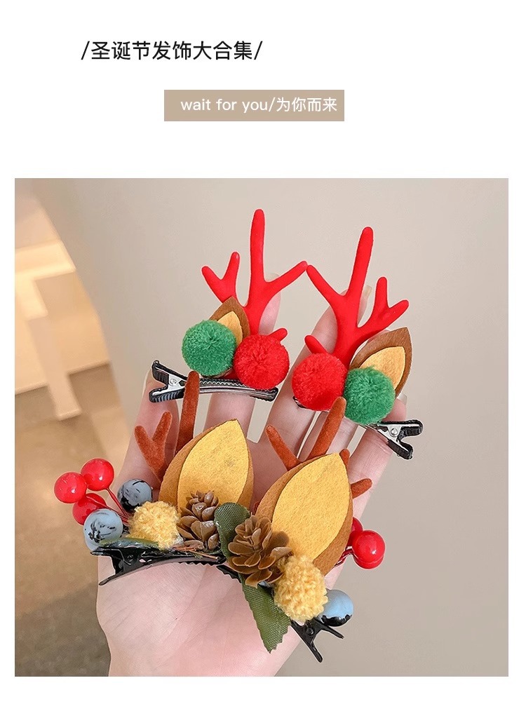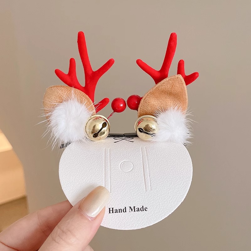 圣诞节儿童装扮发箍发饰可爱红色鹿角头箍2024新款森系麋鹿发卡子