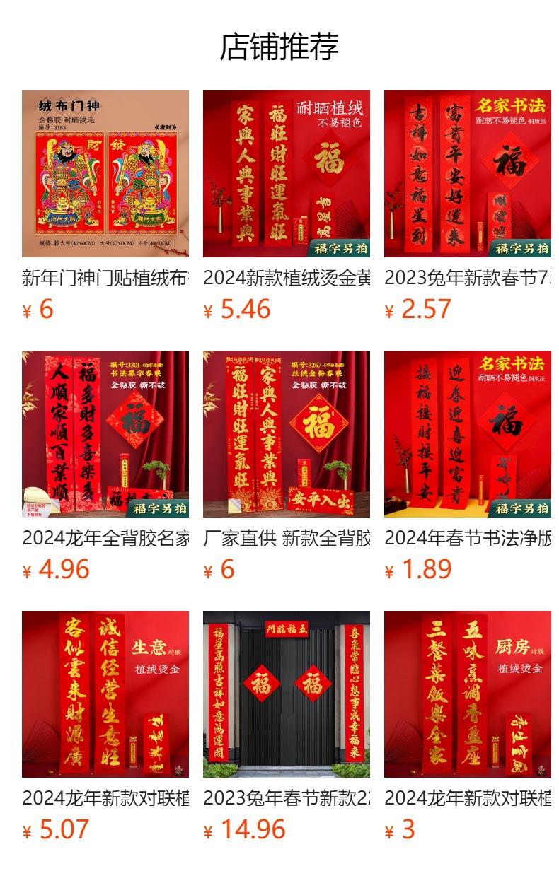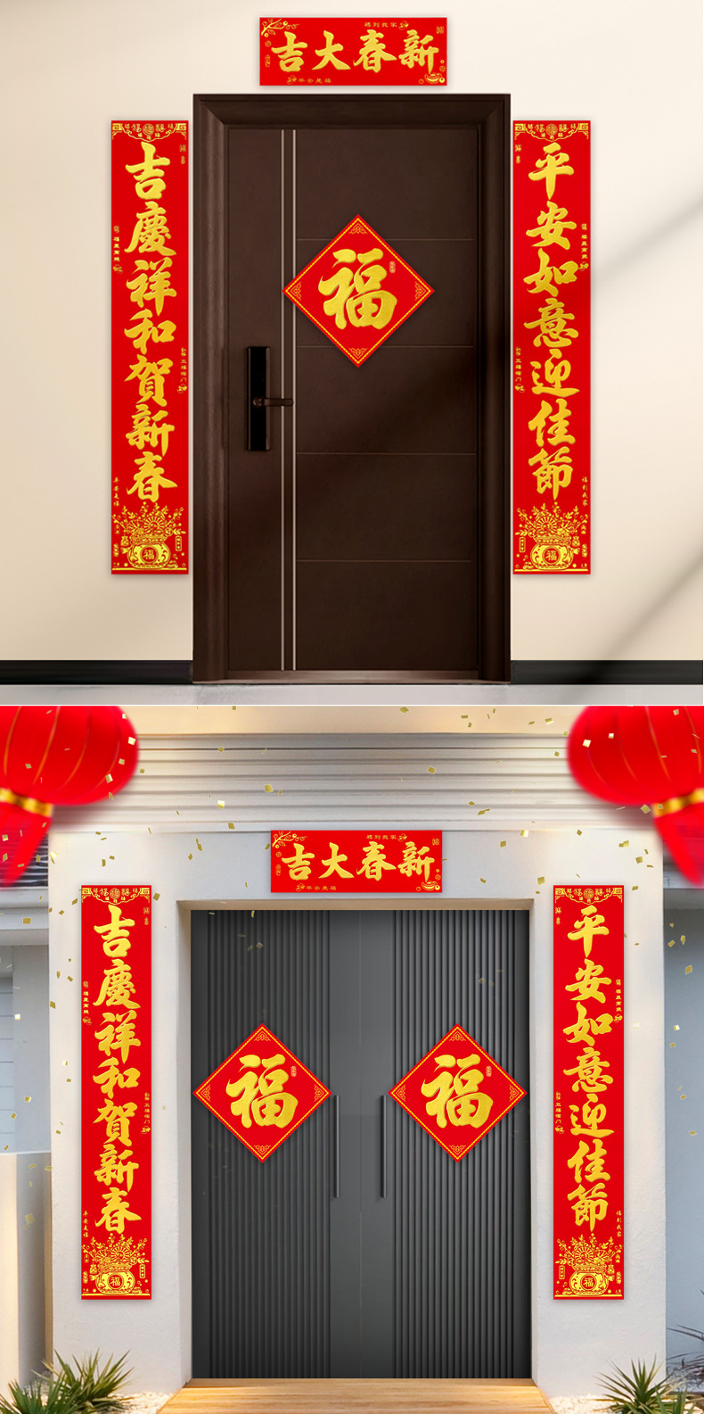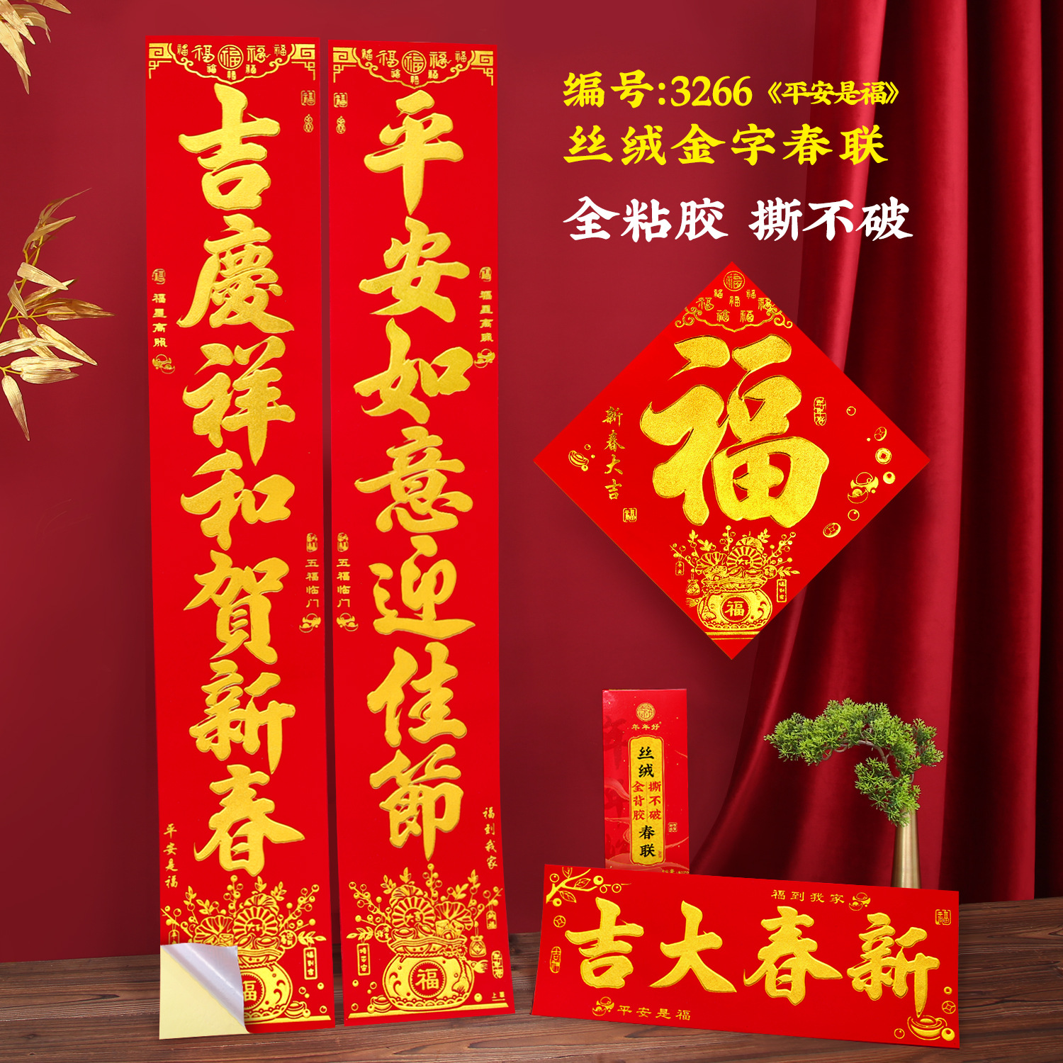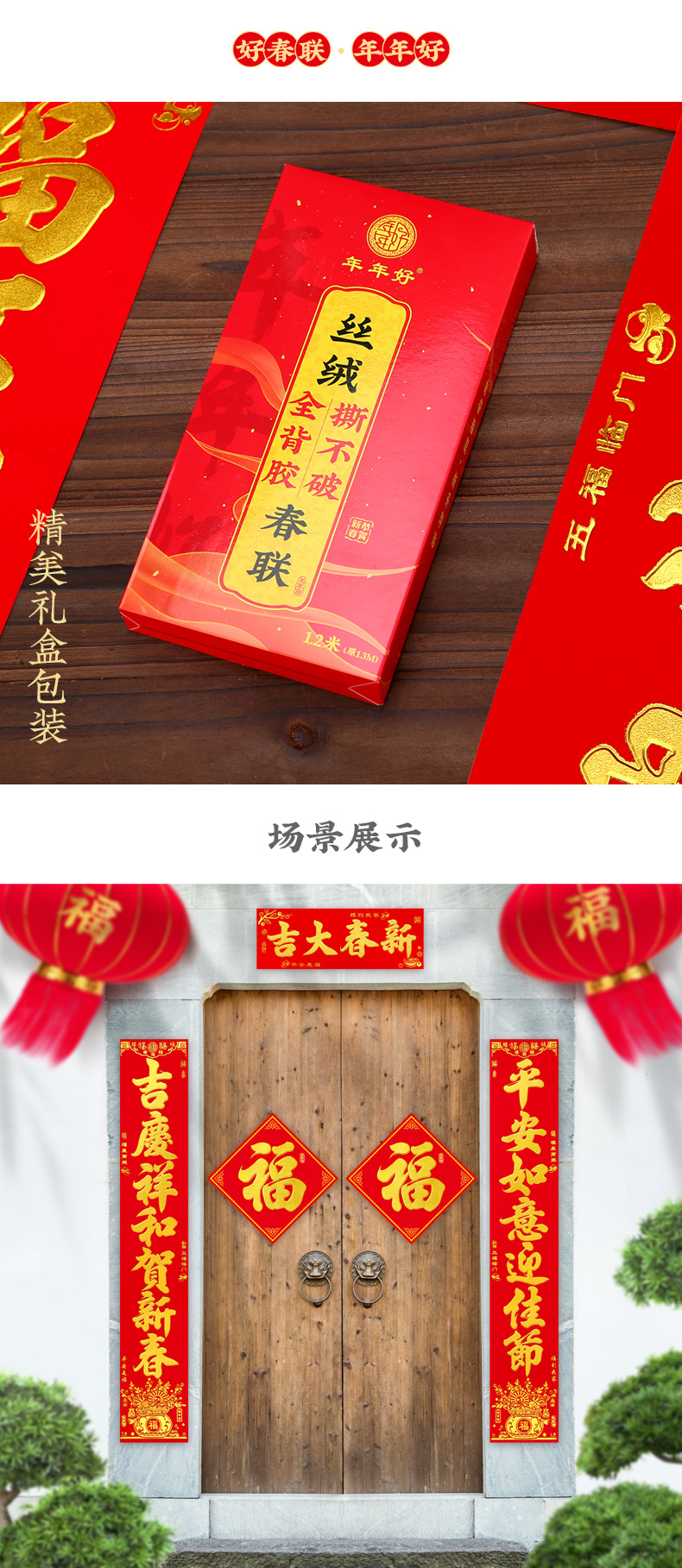 2024厂家直供 新款丝绒烫金全背胶春联 过年对联大门福贴春节门联