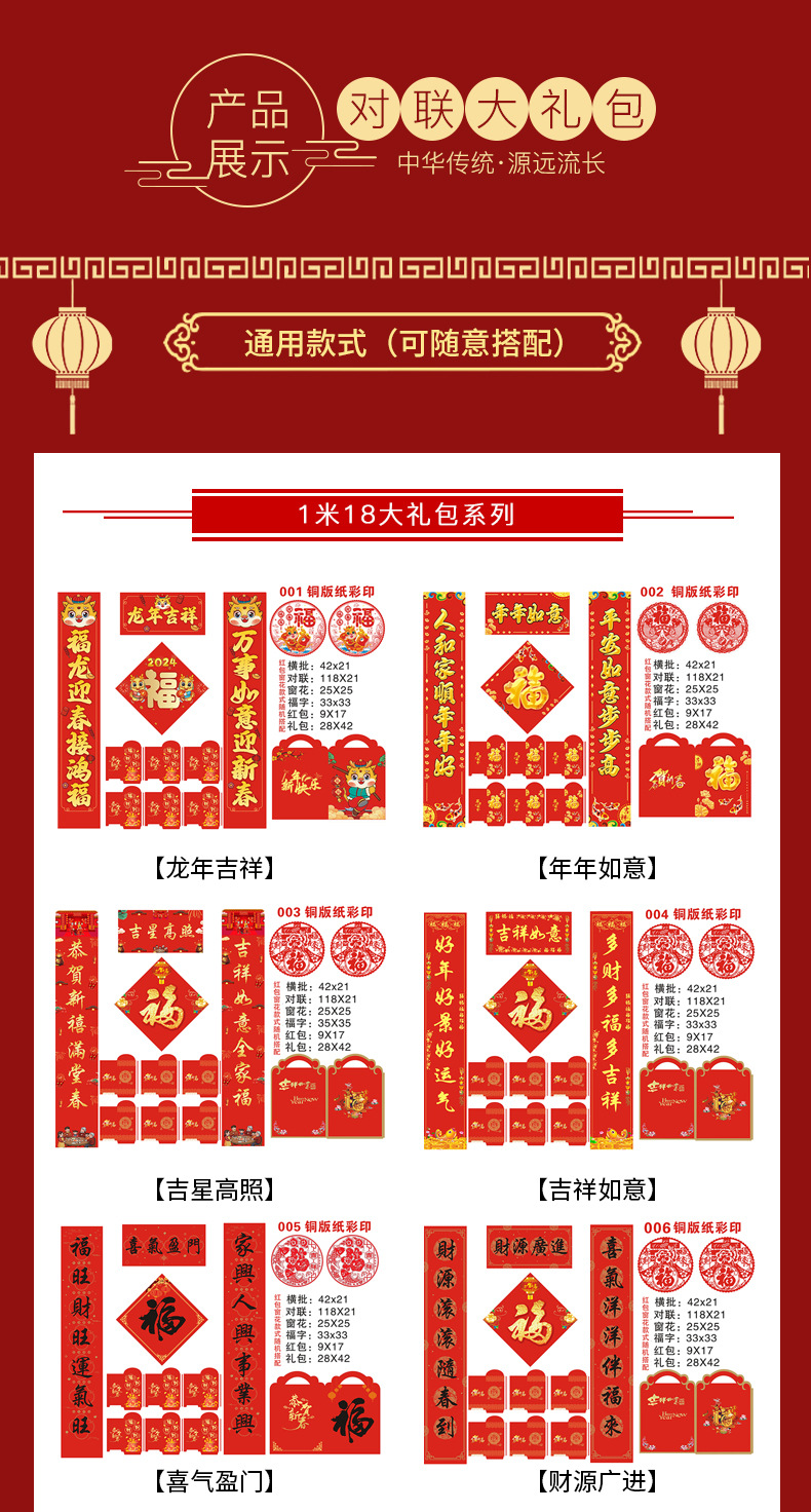 蛇年春节对联订制现货广告对联印刷LOGO新年春联大礼包量大价优