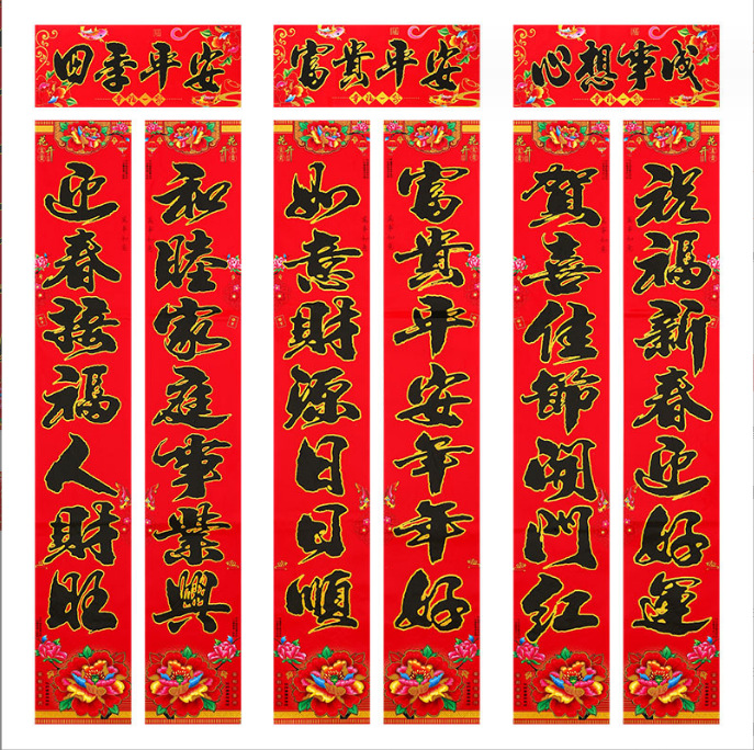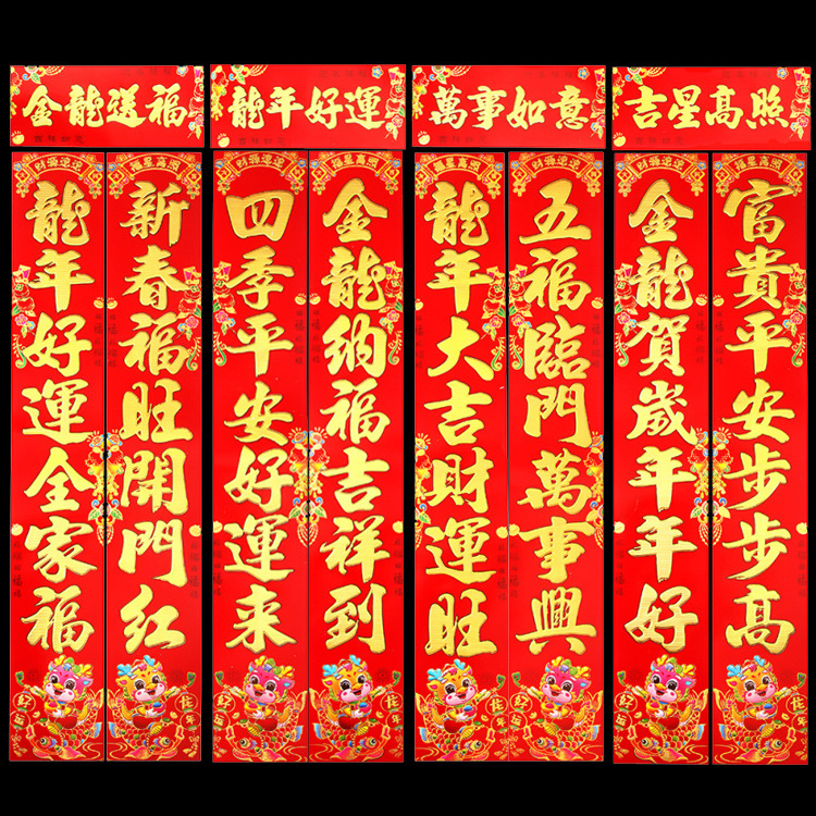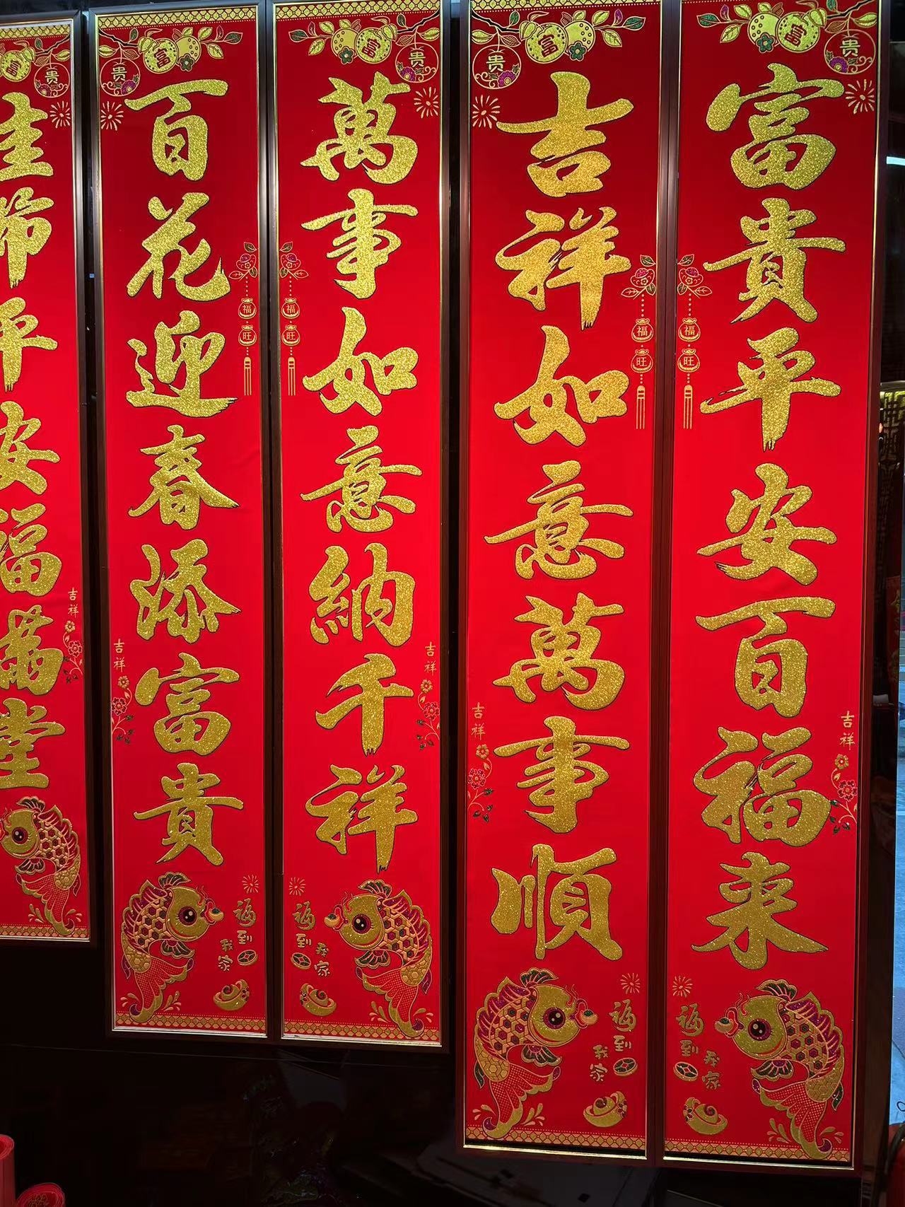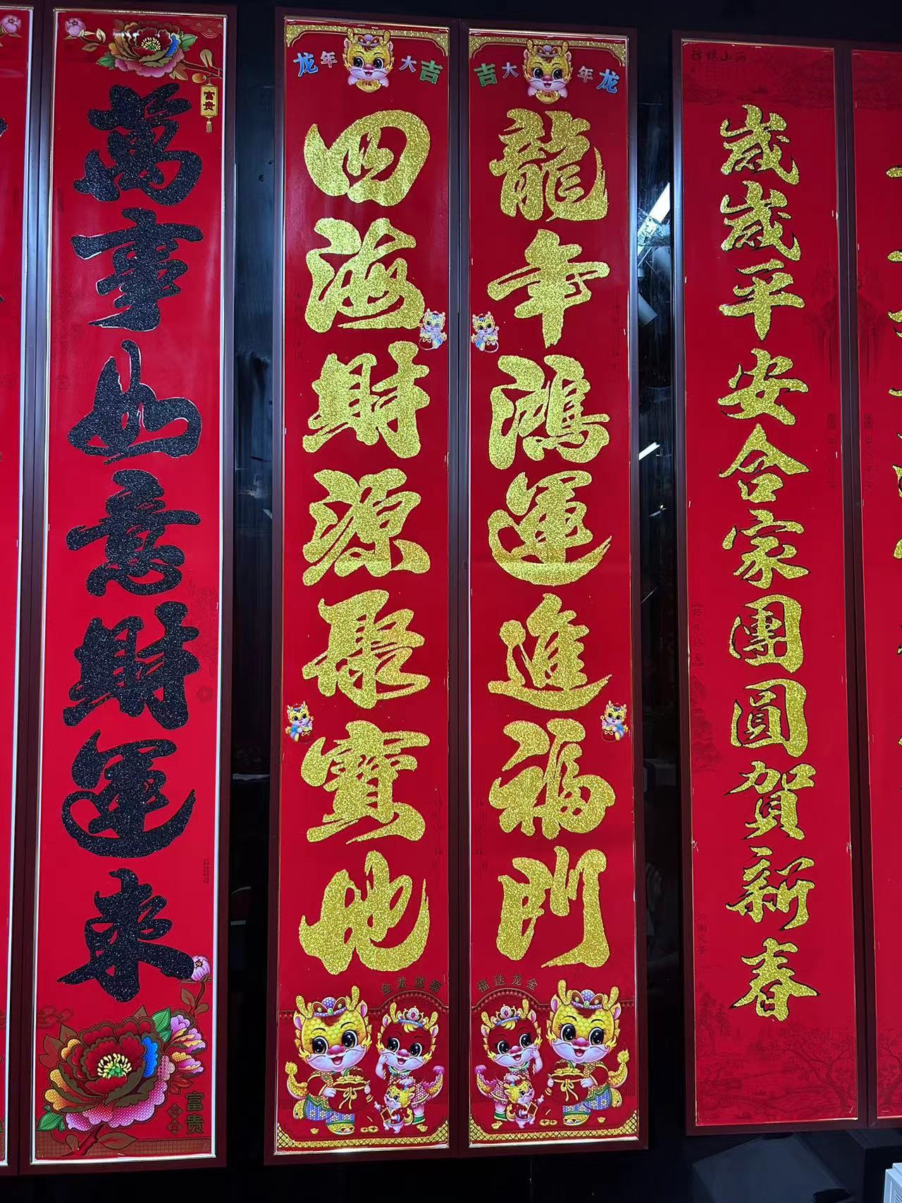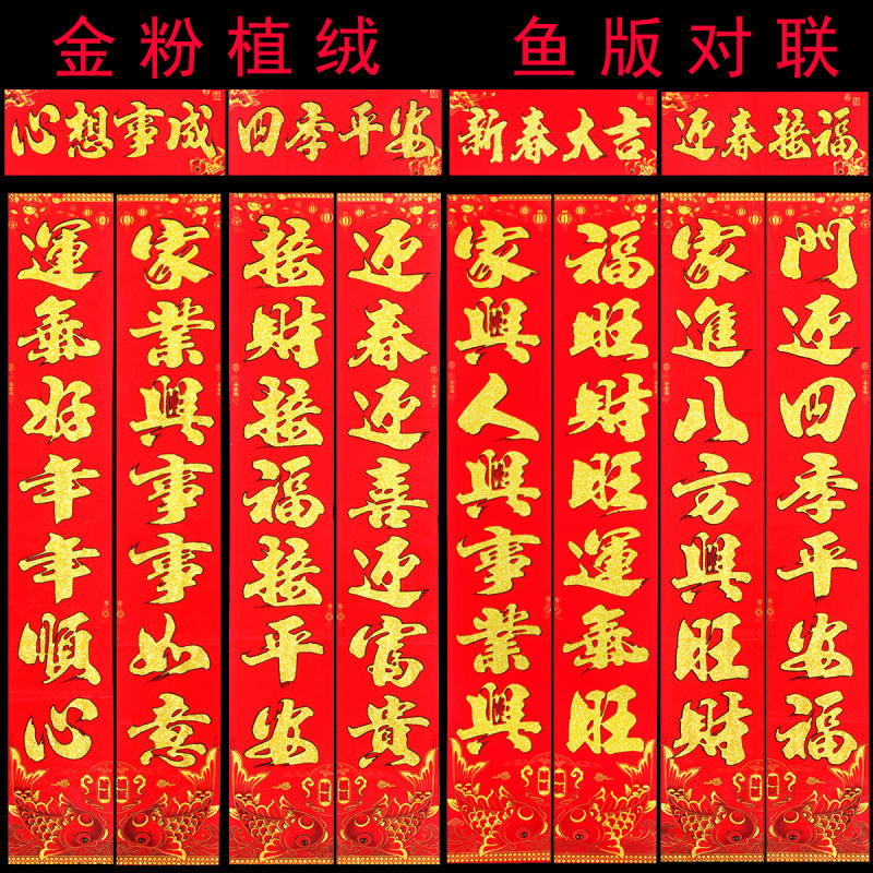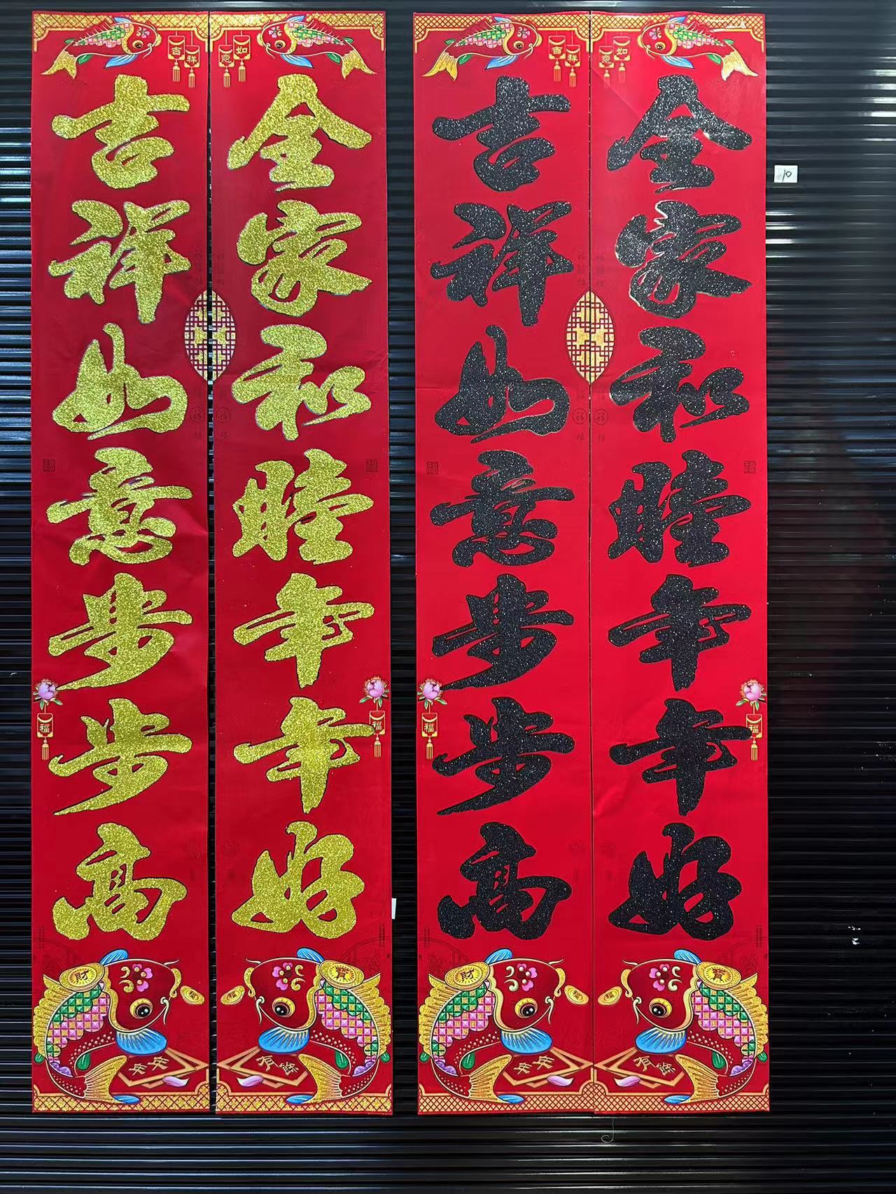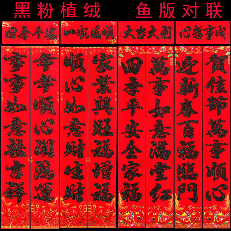 2025蛇年春节对联新款高档植绒撒金粉对联黑字对联春联厂家批发