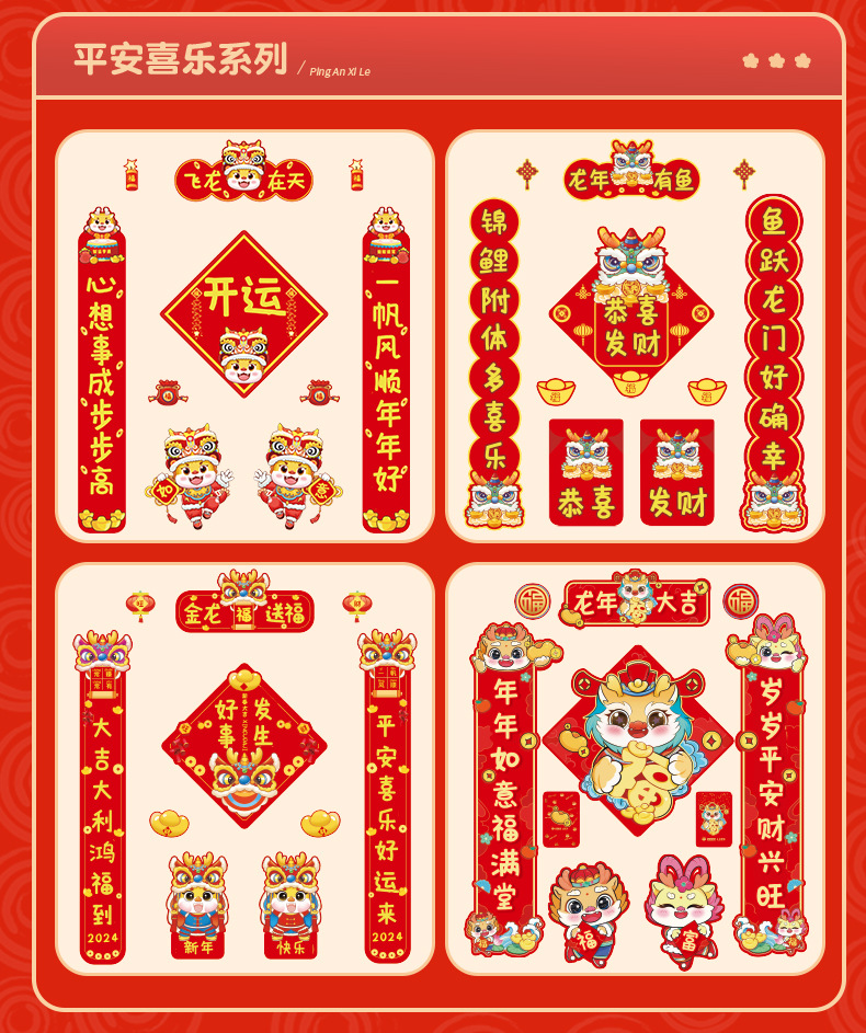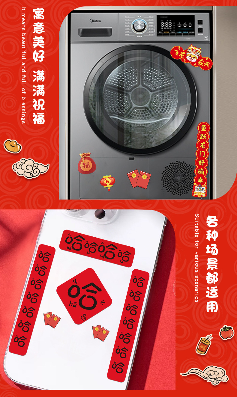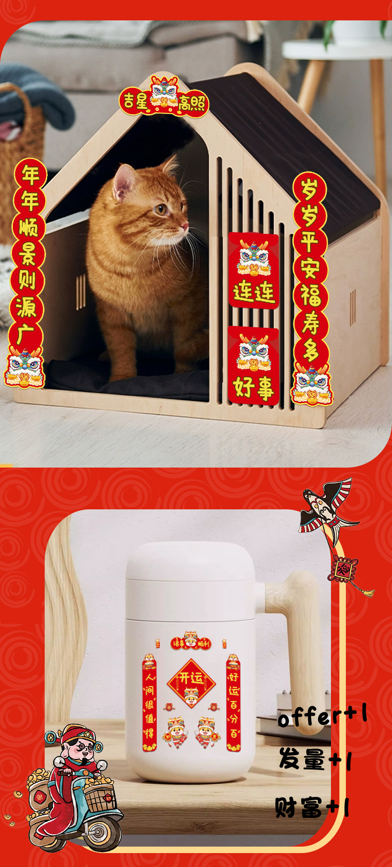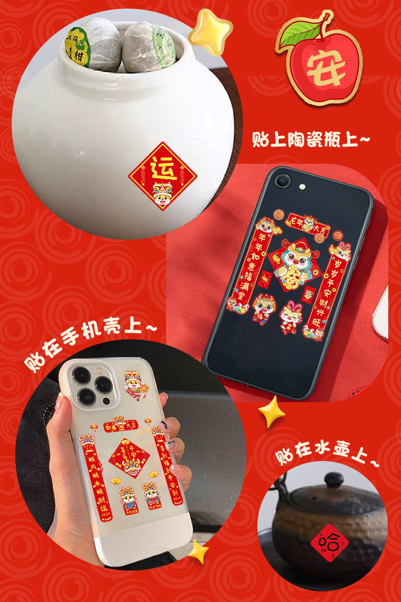 2024龙年春节装饰对联趣味迷你小对联手机贴纸可爱装饰贴纸平板贴