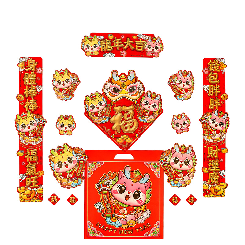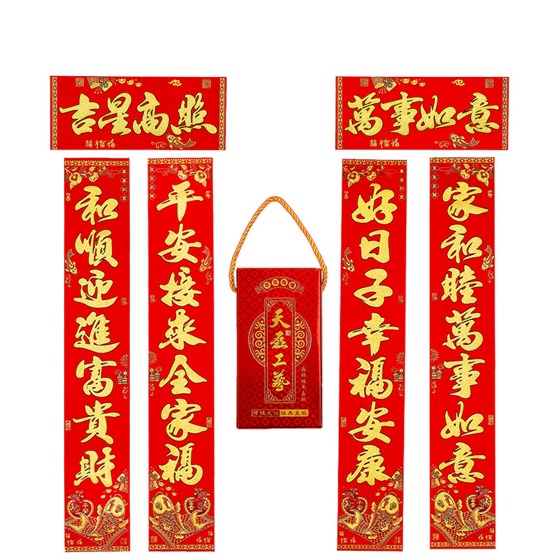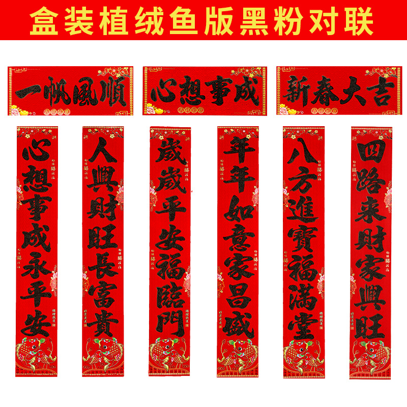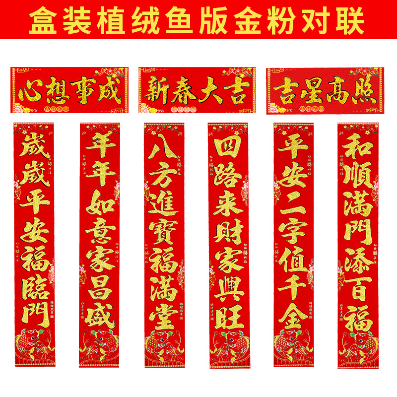 2025蛇年新款铜版纸烫金对联 植绒金粉盒装对联 春联年货厂家批发