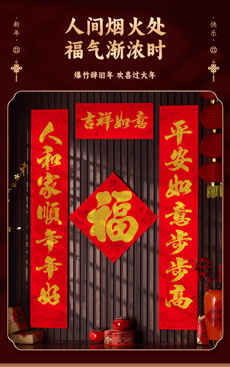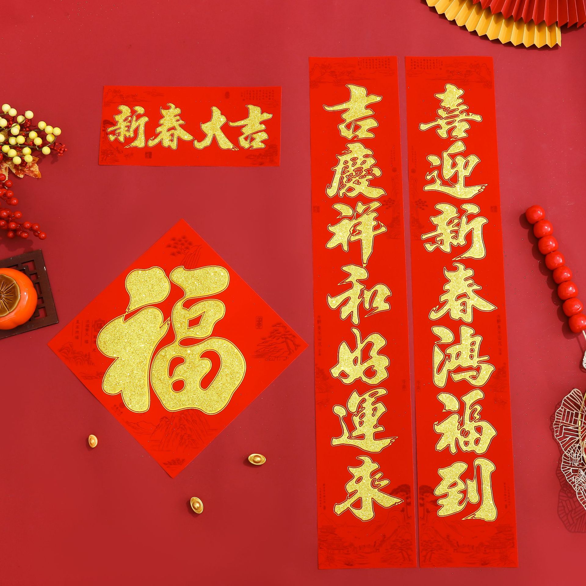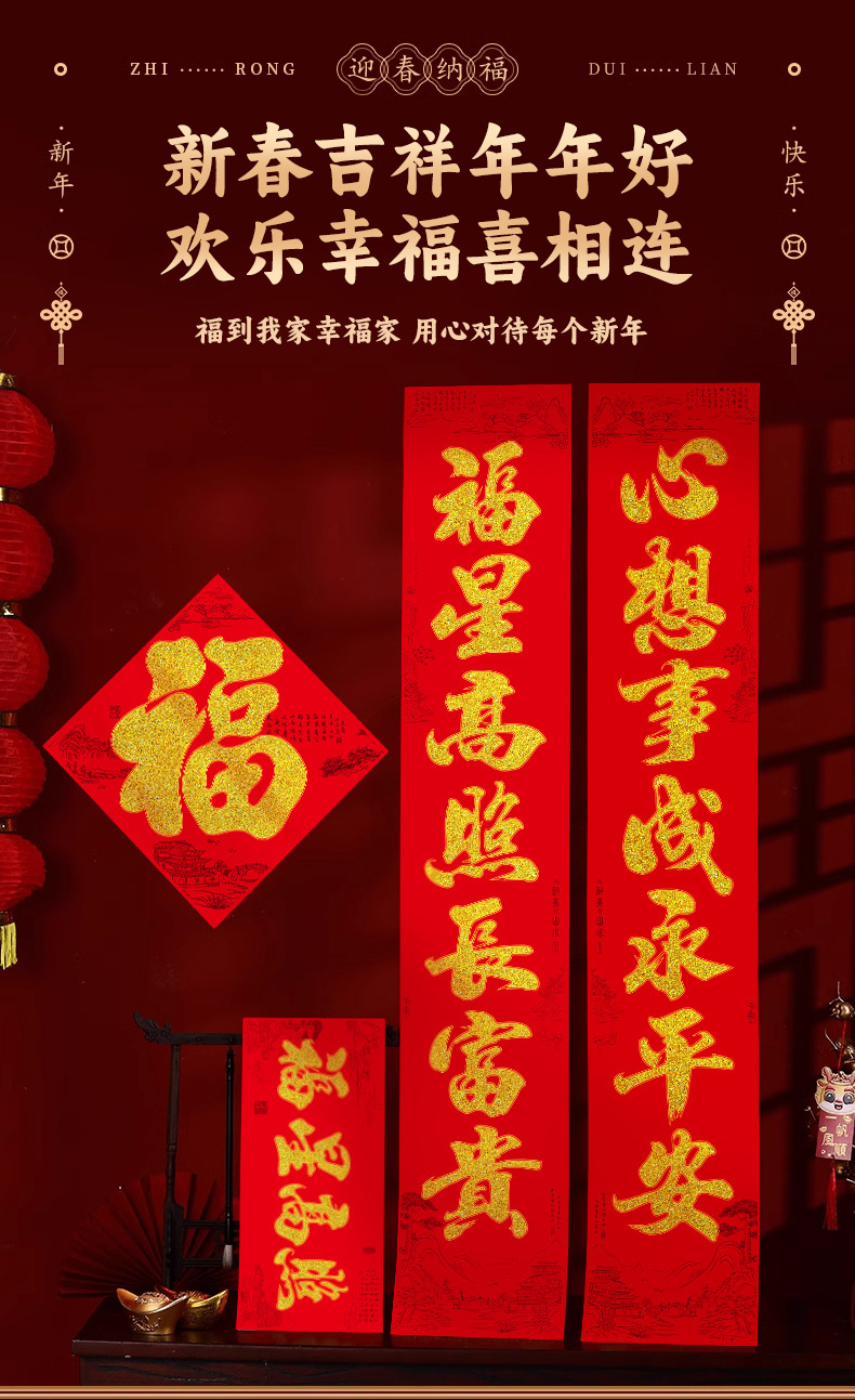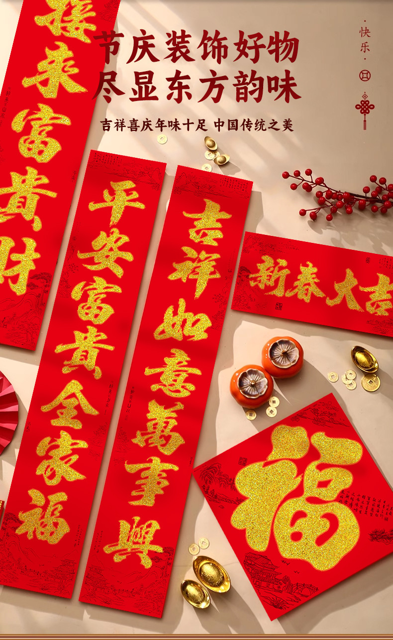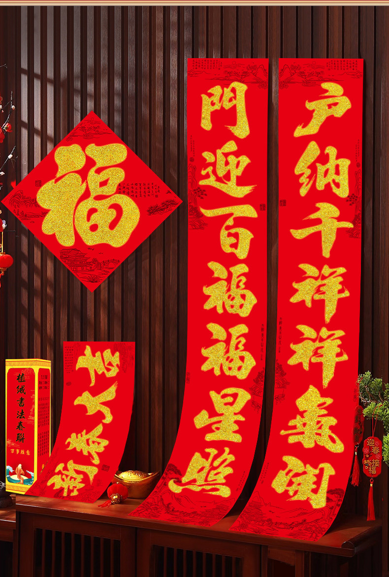 对联批发2025植绒金粉对联新年春节装饰春联门贴年画文化用品批发