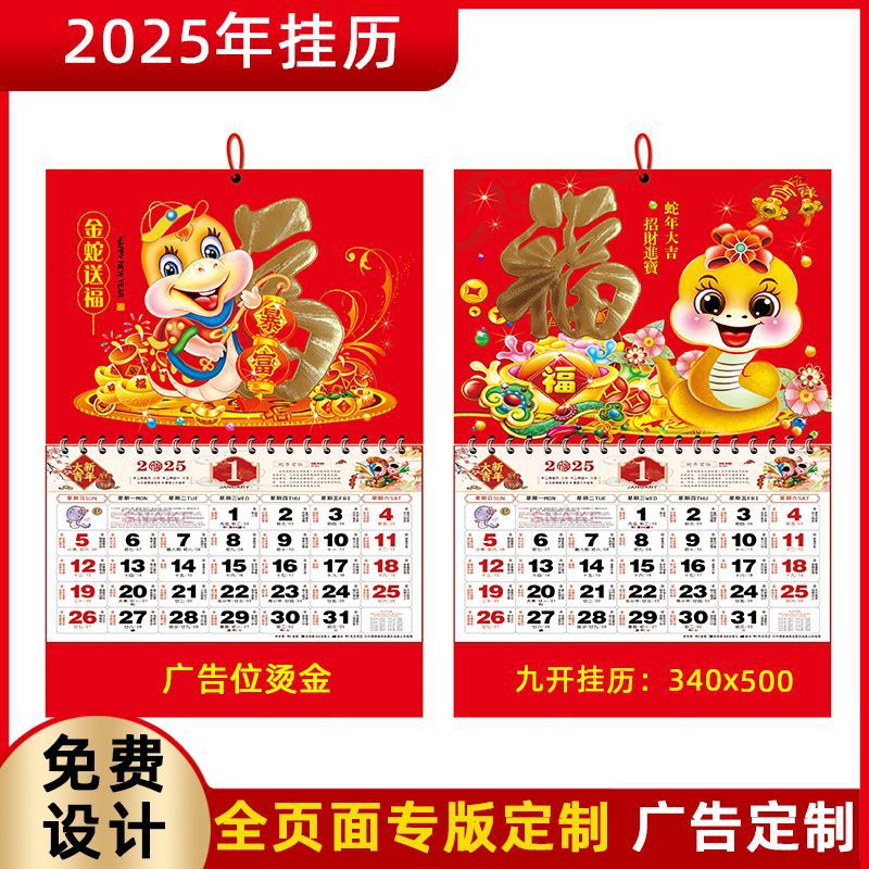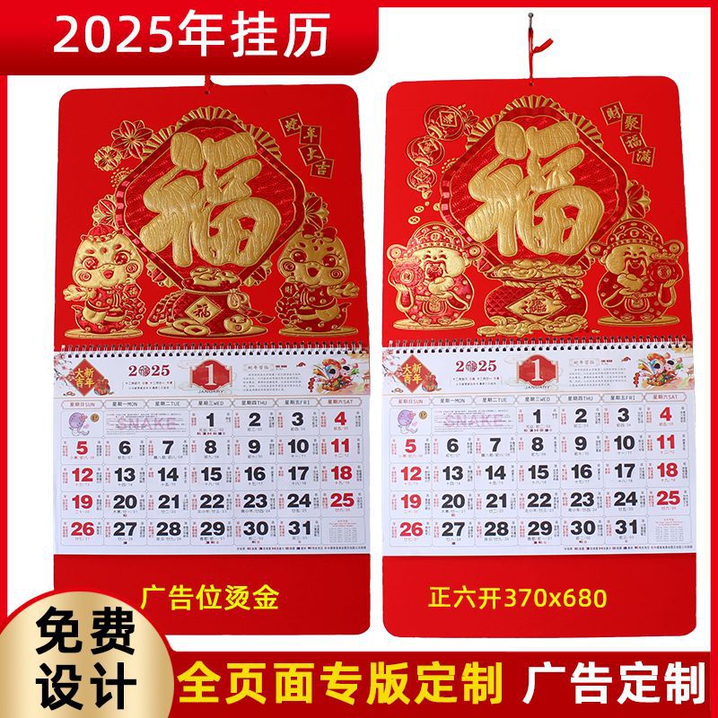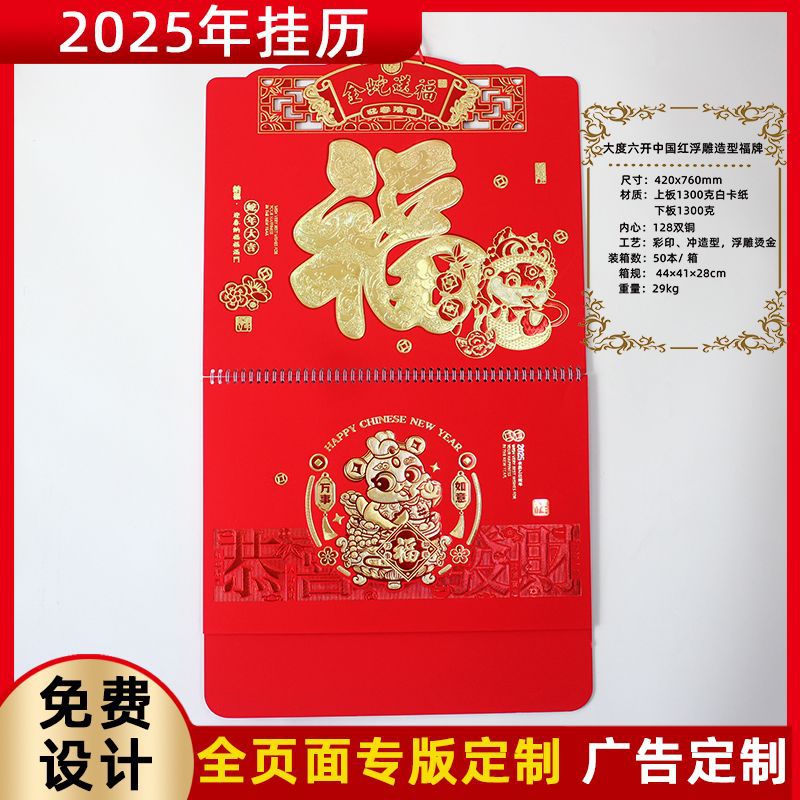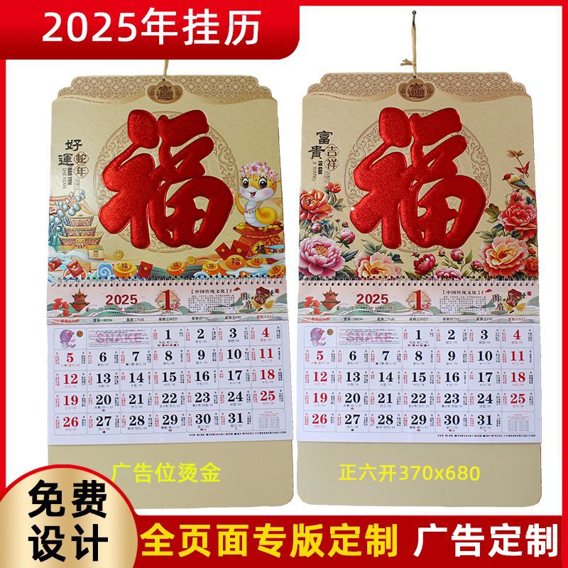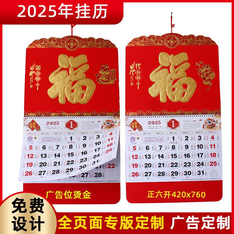 挂历厂家制定2025蛇年福字吊牌挂历烫金制作广告撕历印刷外贸日历