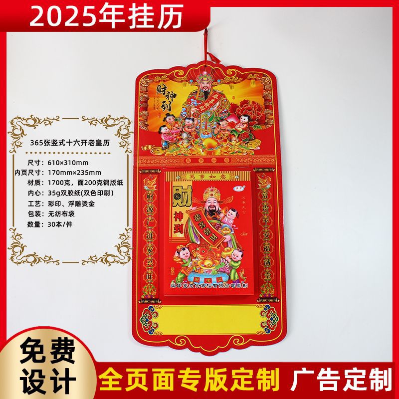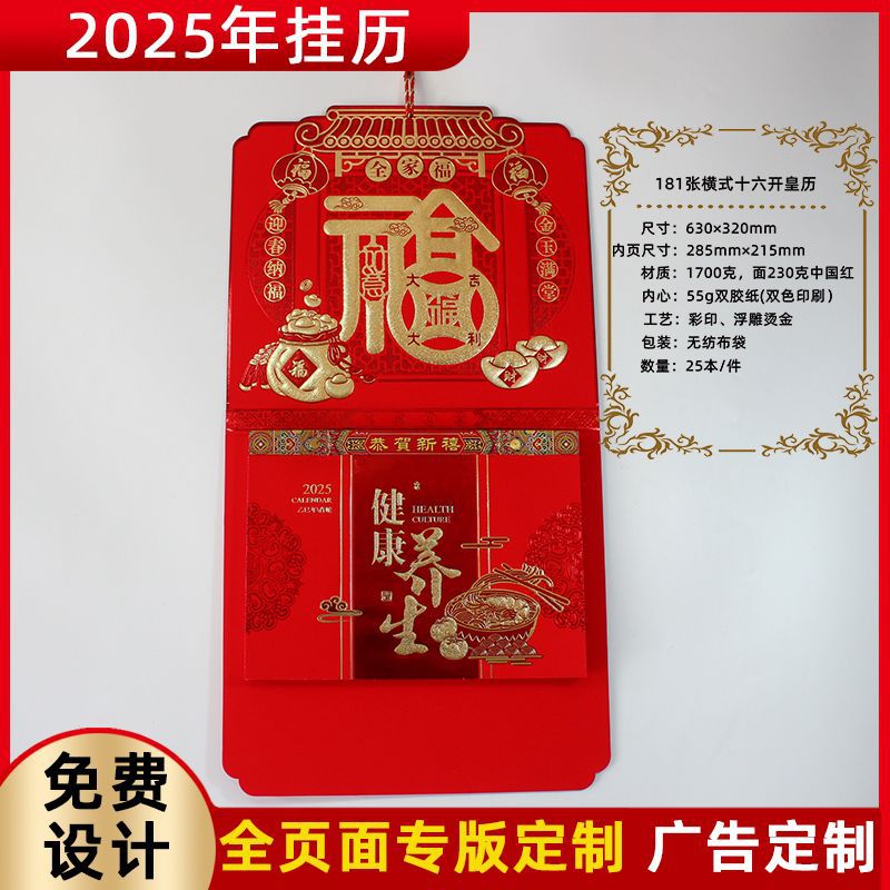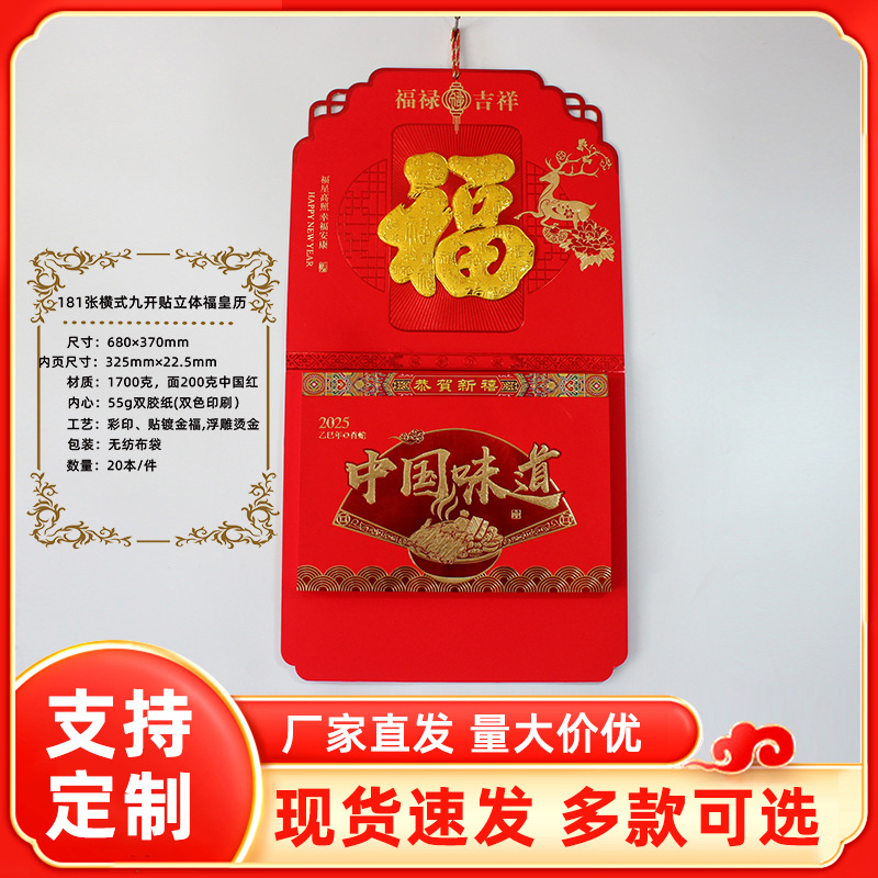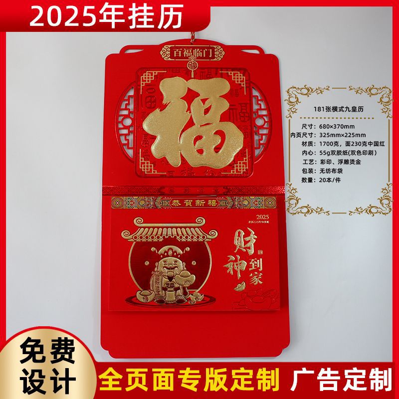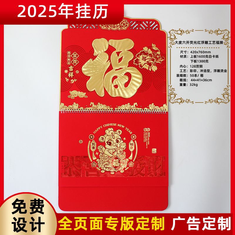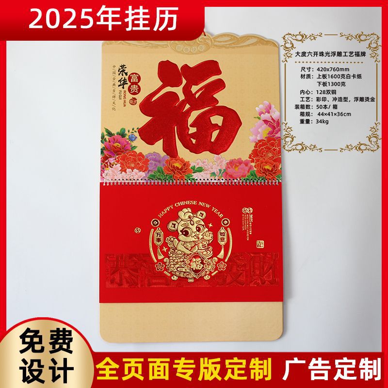 挂历厂家制定2025蛇年福字吊牌挂历烫金制作广告撕历印刷外贸日历