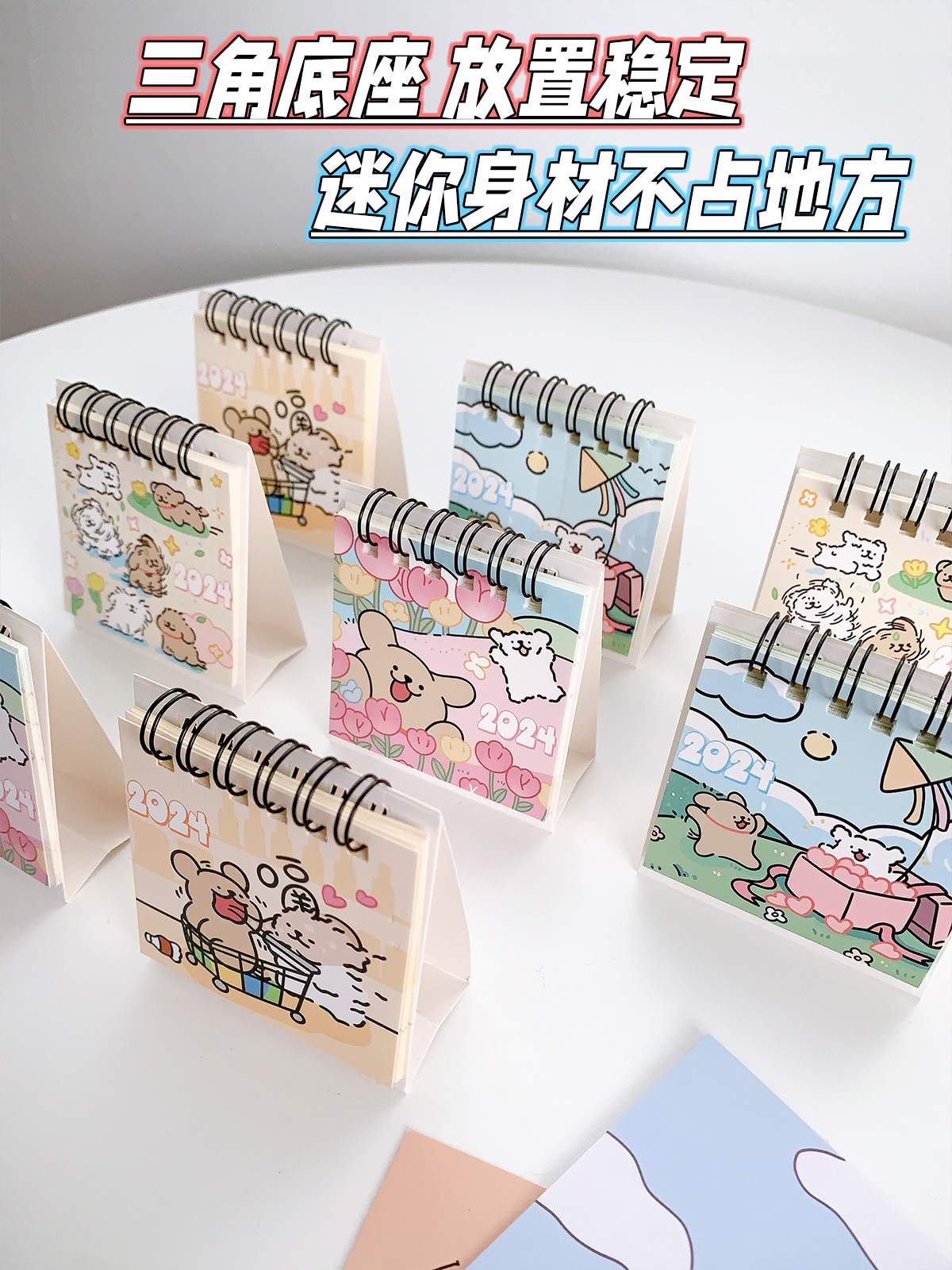 2024龙25蛇年台历简约可爱日历卡通迷你学生摆件线圈小台历LOGO