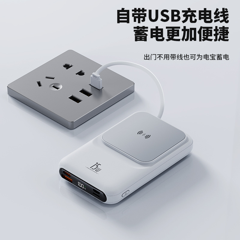 跨境新款磁吸充电宝自带线超级快充10000毫安迷你移动电源礼品