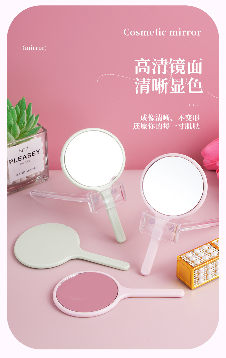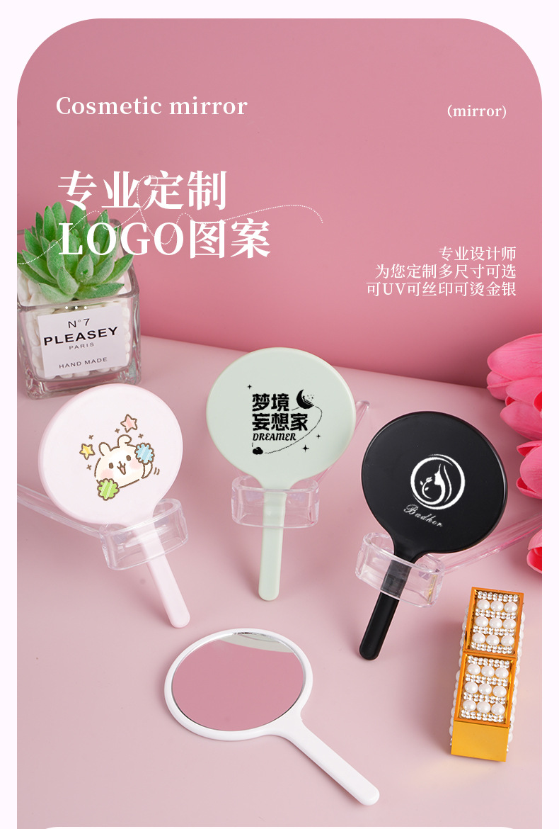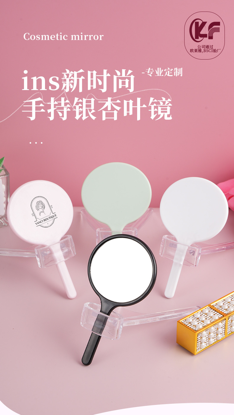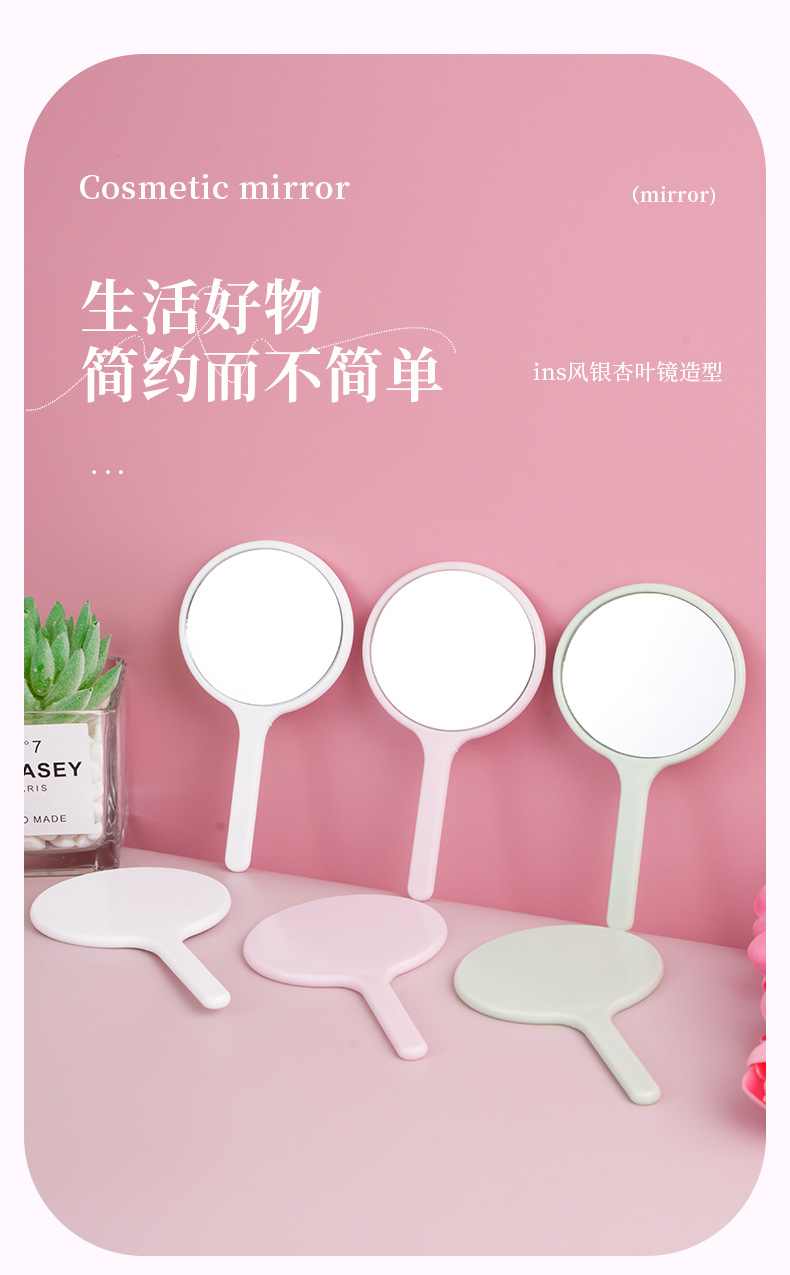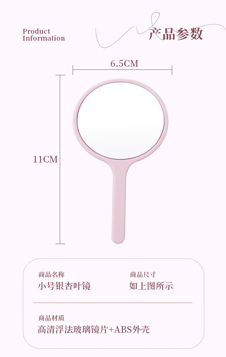 新款迷你银杏叶手持镜圆形手柄镜高清化妆镜塑料小镜子女生随身镜