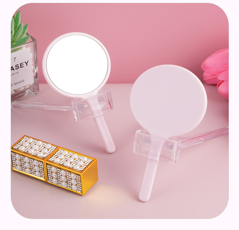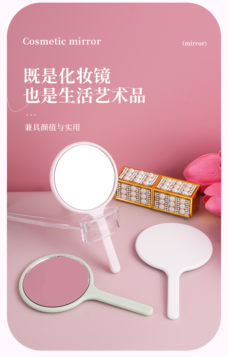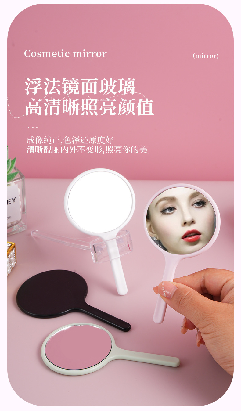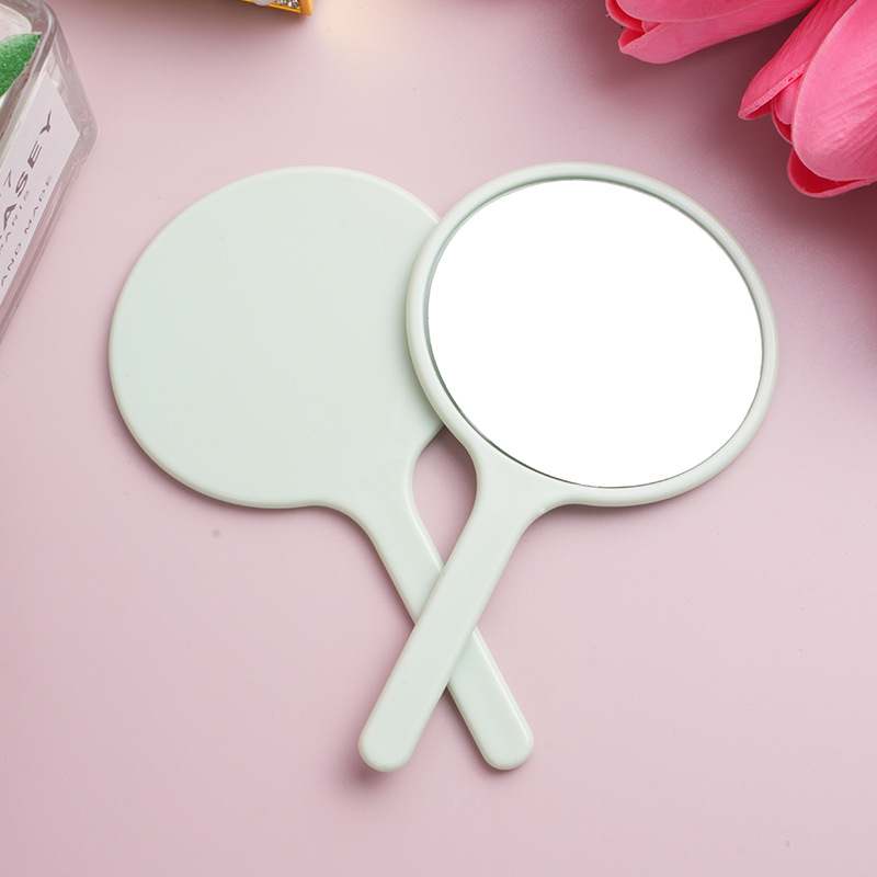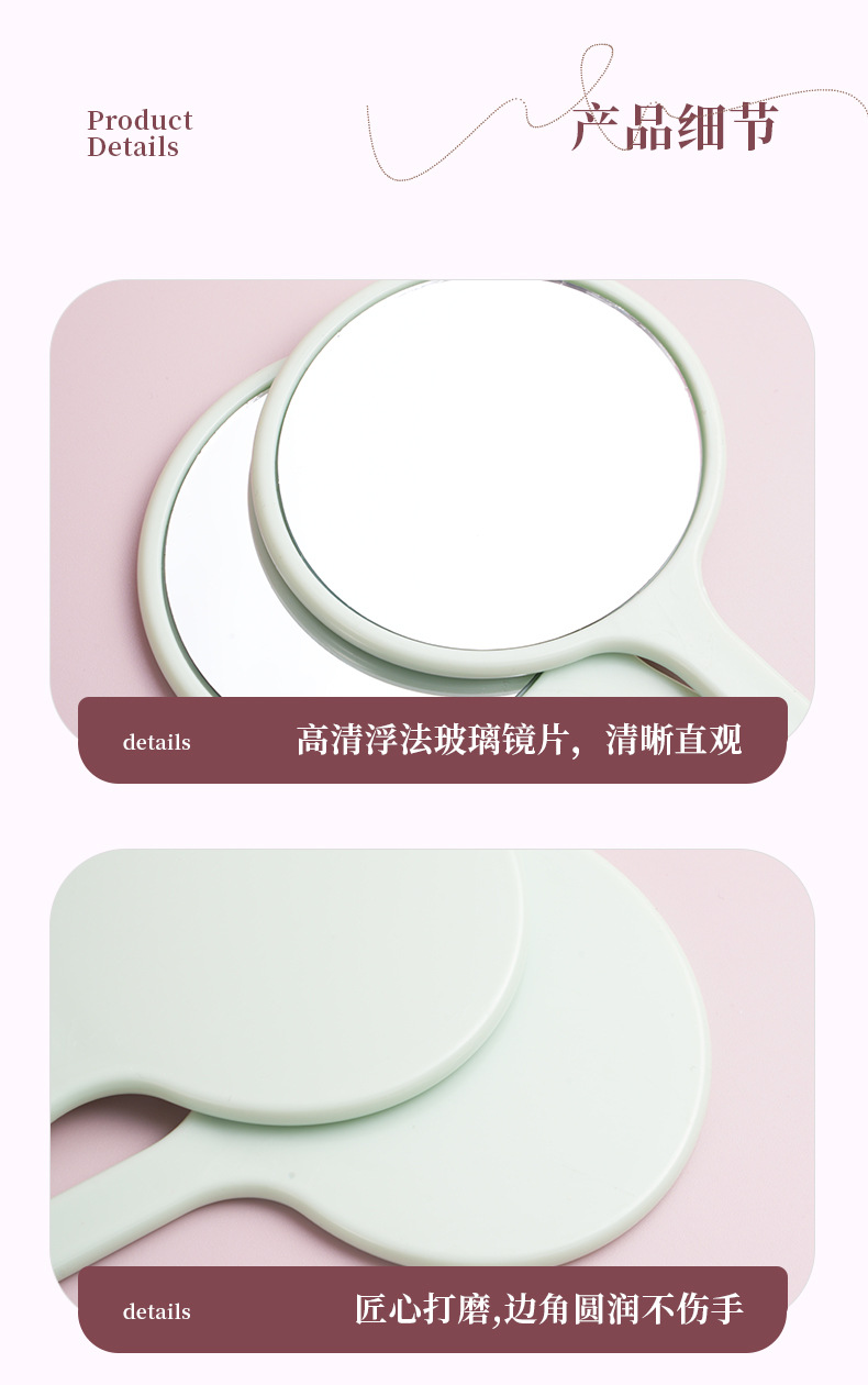 新款迷你银杏叶手持镜圆形手柄镜高清化妆镜塑料小镜子女生随身镜