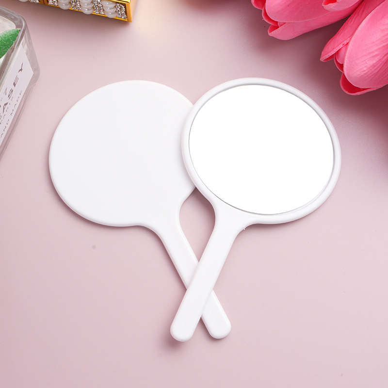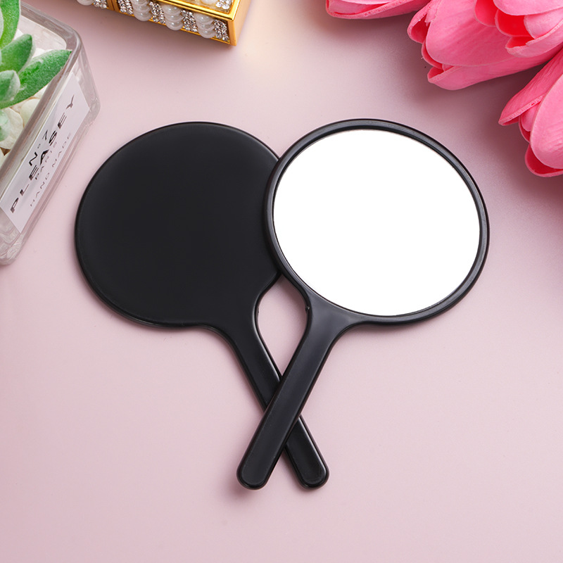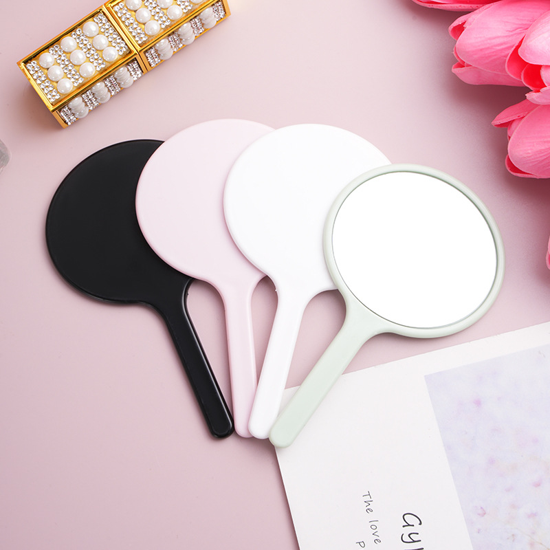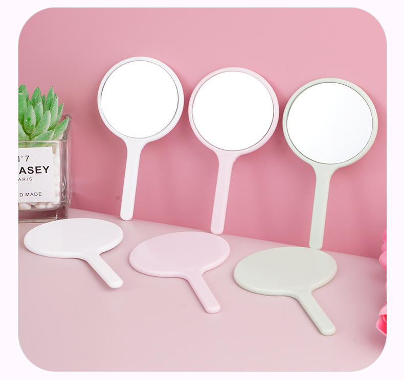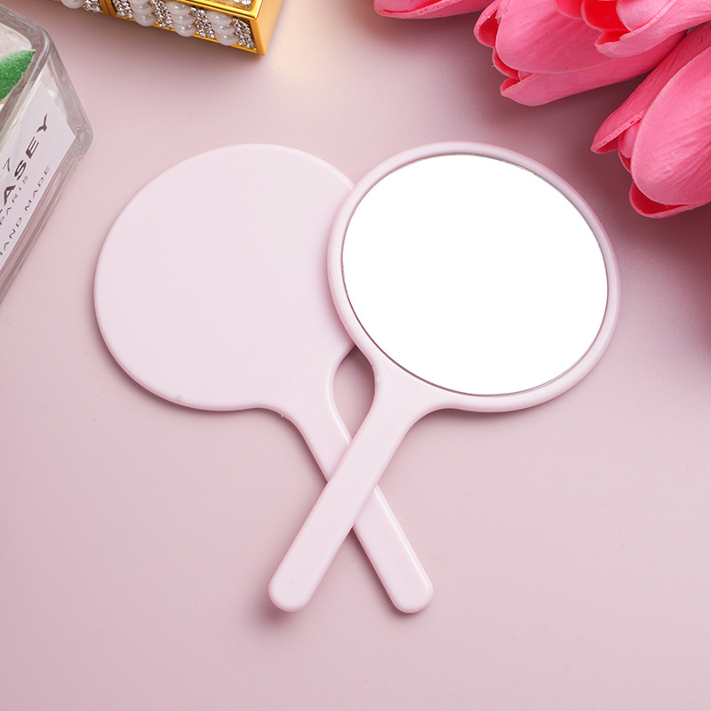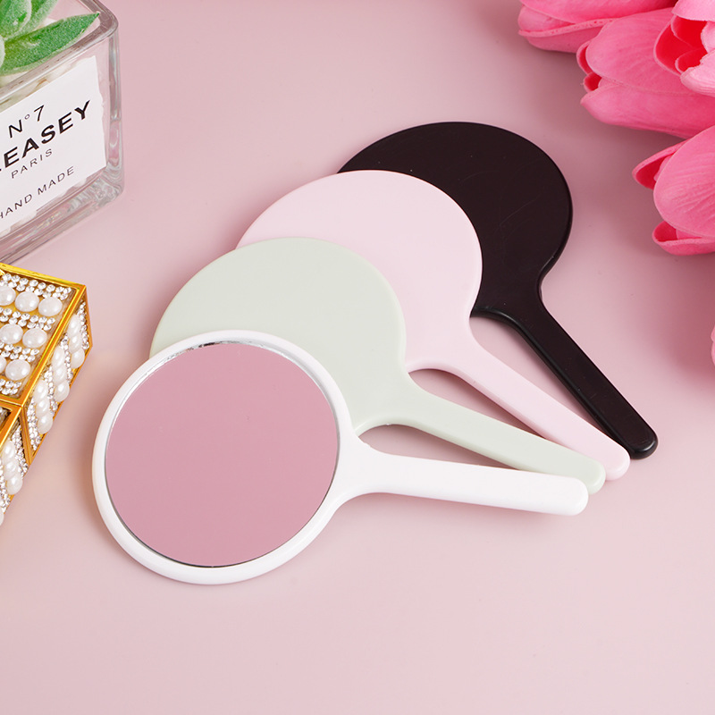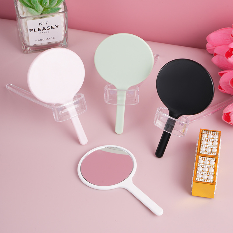 新款迷你银杏叶手持镜圆形手柄镜高清化妆镜塑料小镜子女生随身镜