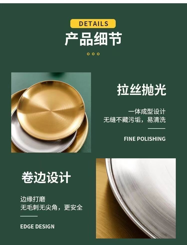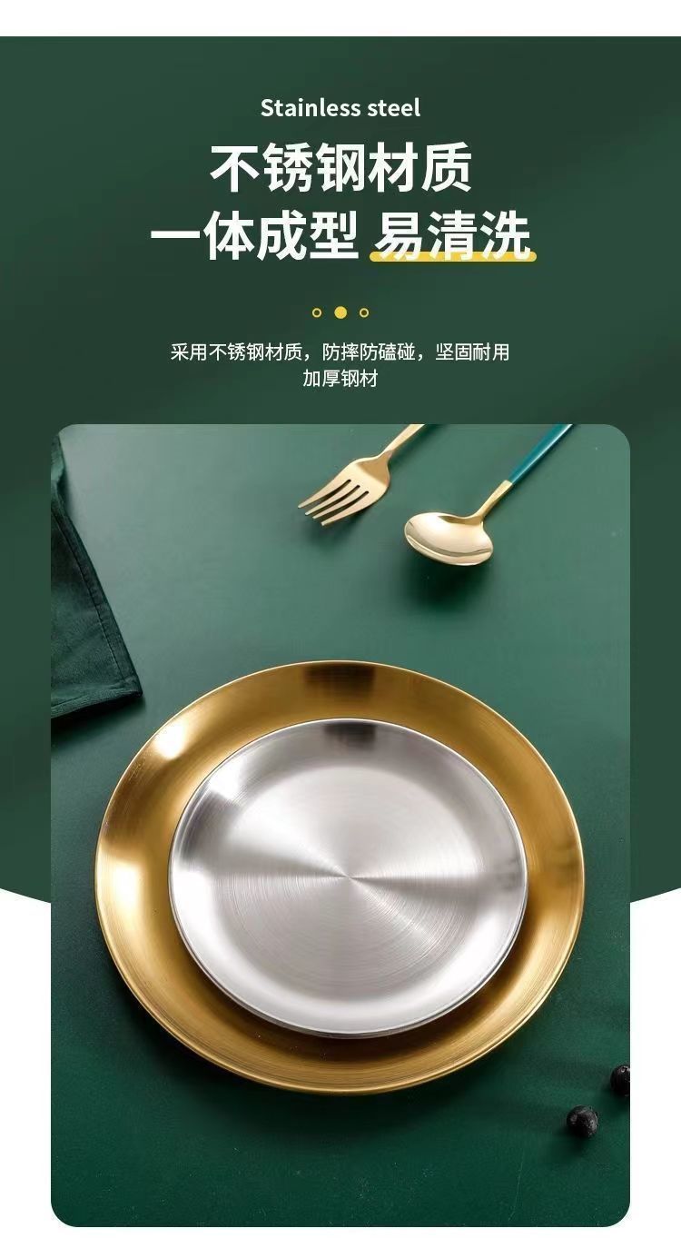跨境不锈钢304骨碟 西餐水果牛排烤肉盘托盘韩式不锈钢餐盘子
