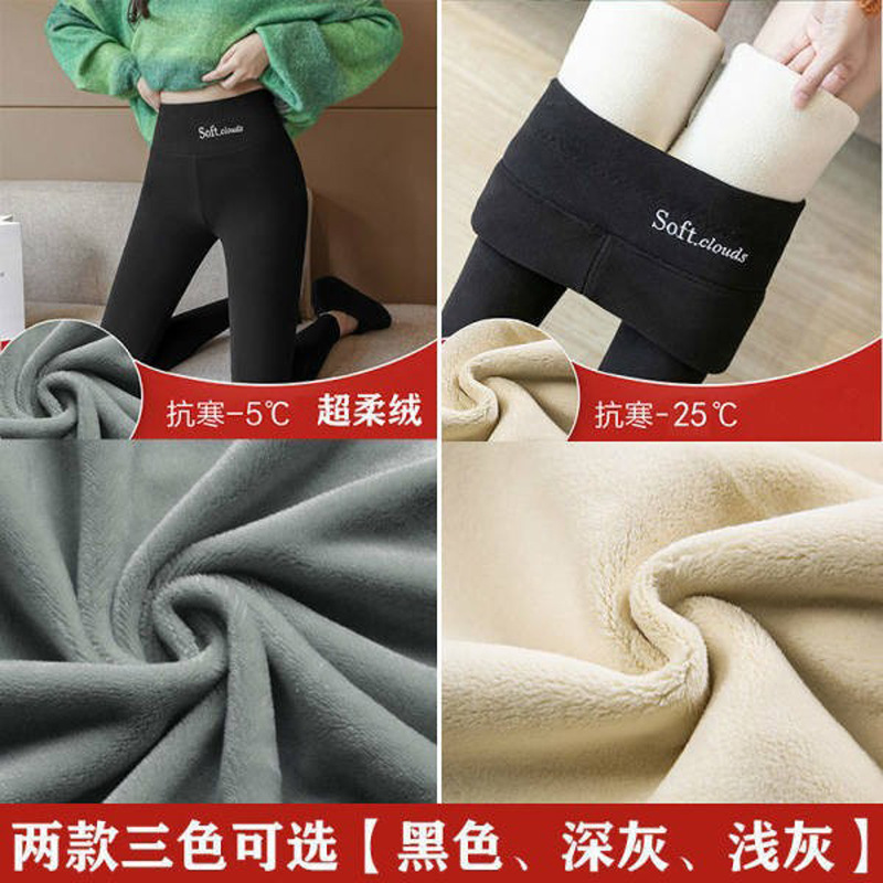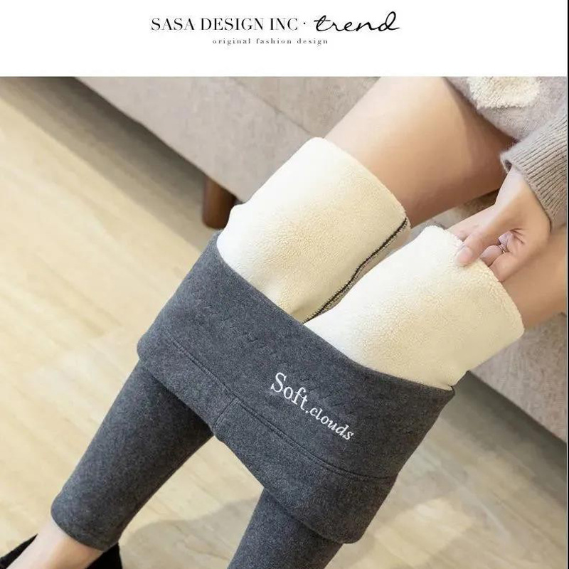 大码羊羔绒打底裤女秋冬不掉档加绒加厚外穿高腰小脚裤保暖棉裤子