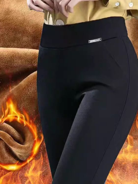 休闲裤女秋冬高腰弹力小脚裤中年妈妈裤子加绒加厚打底裤女外穿潮